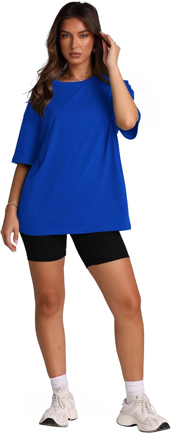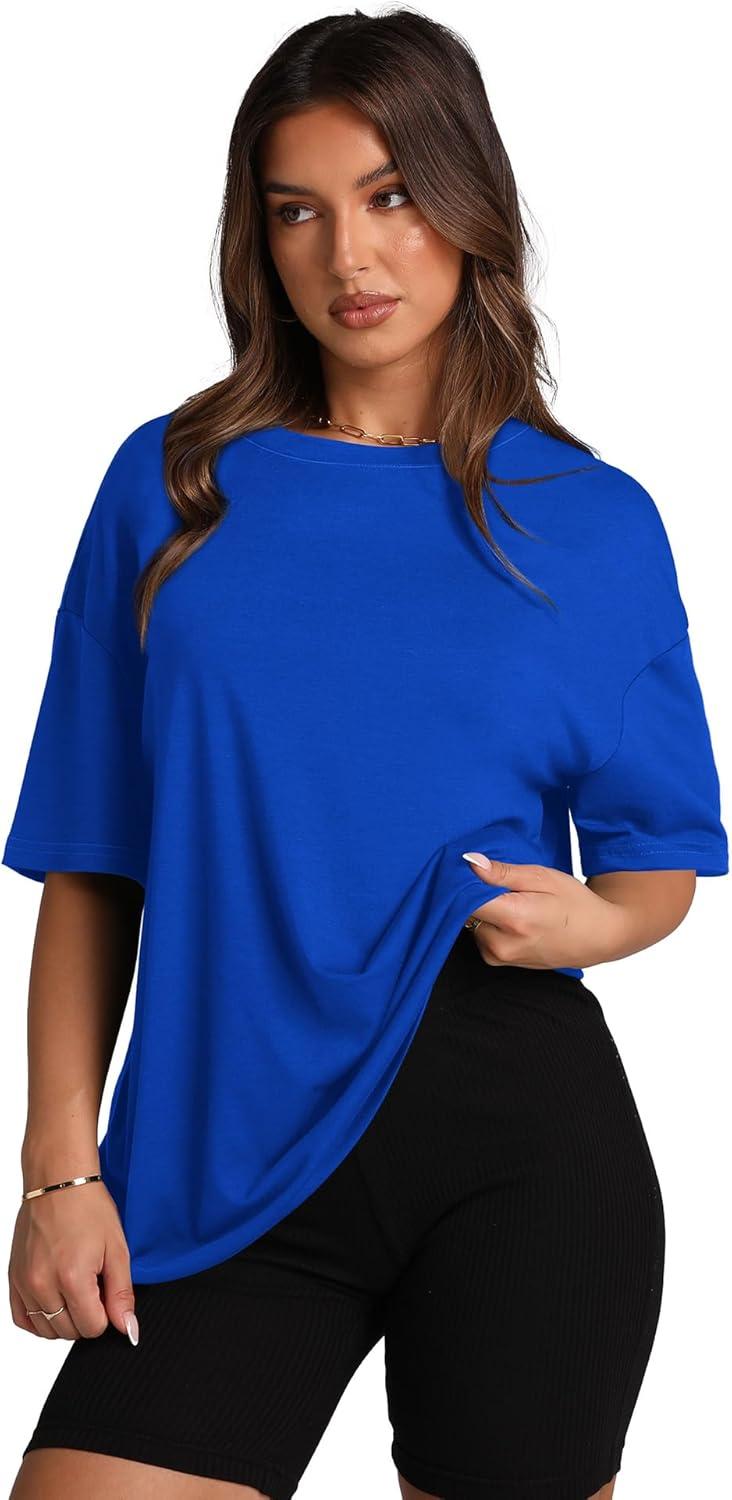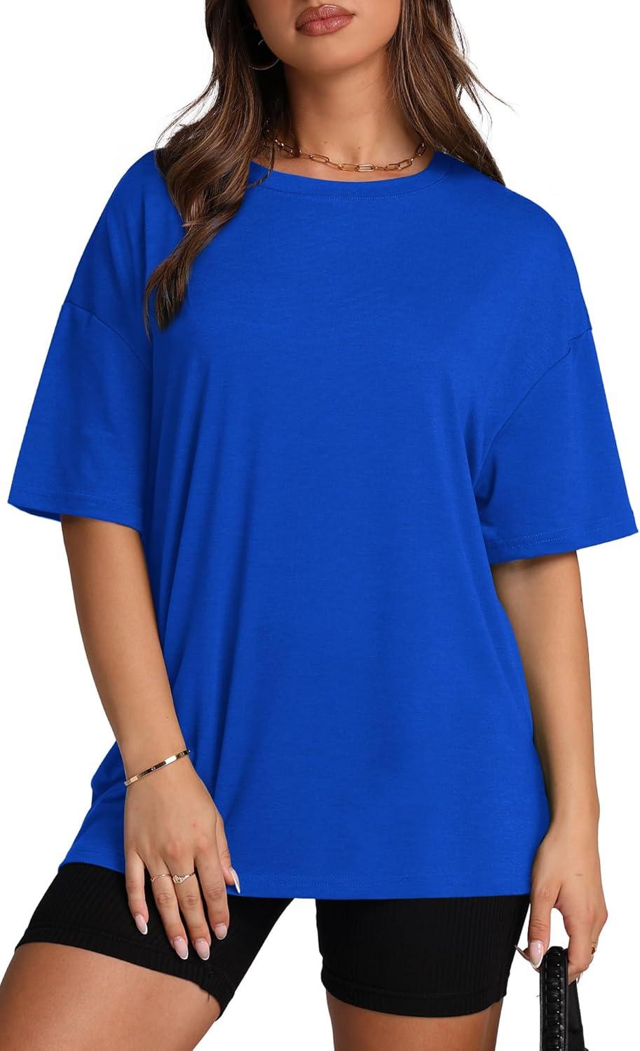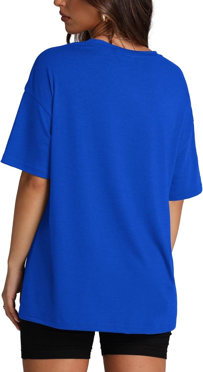 Oversized T Shirts for Women Summer Crewneck Short Sleeve Basic Tops Loose Fit(I-blue)
