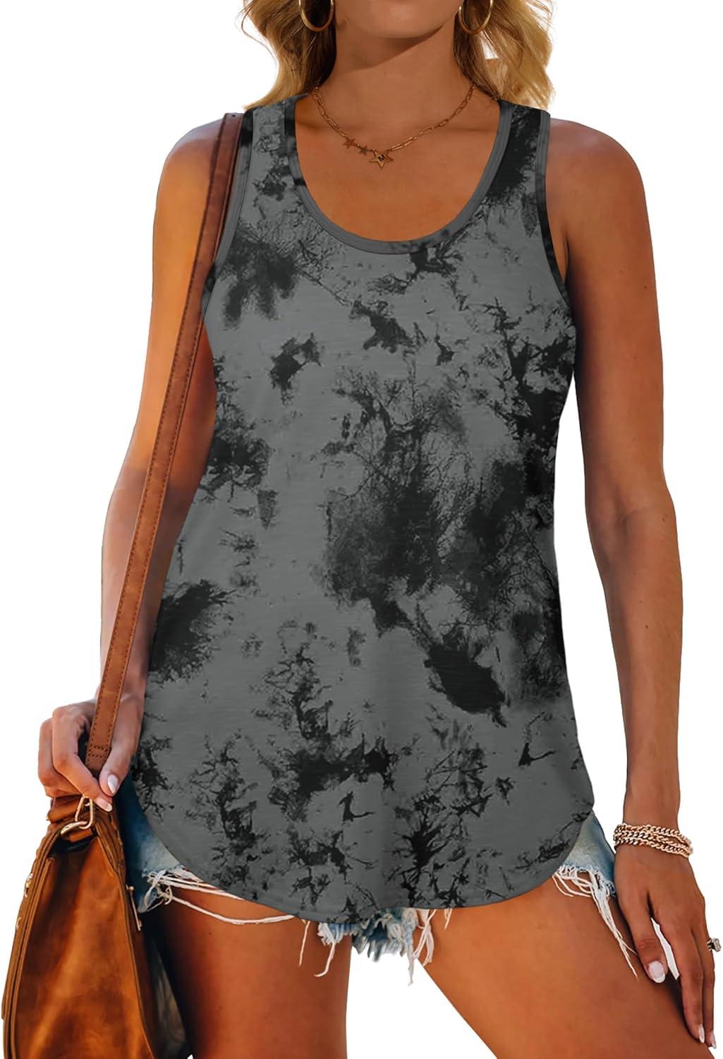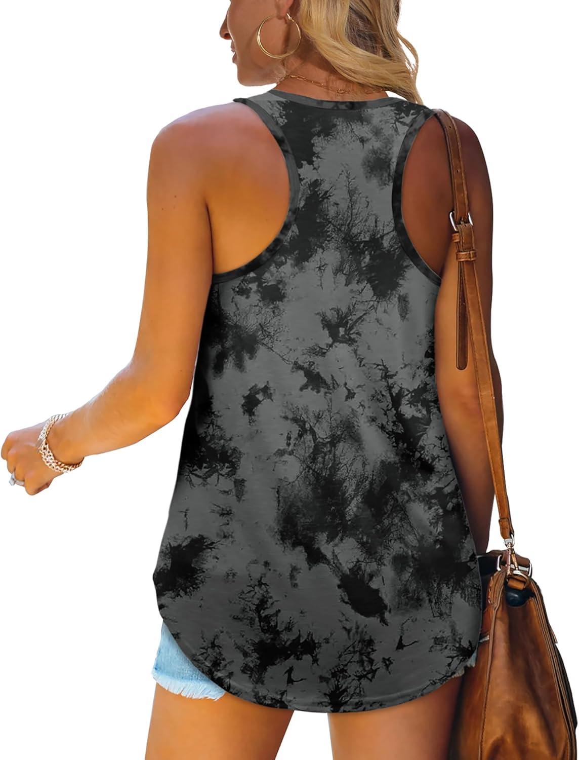 Womens Tank Tops Racerback Loose Shirts for Women Summer(50-black Tiedye)