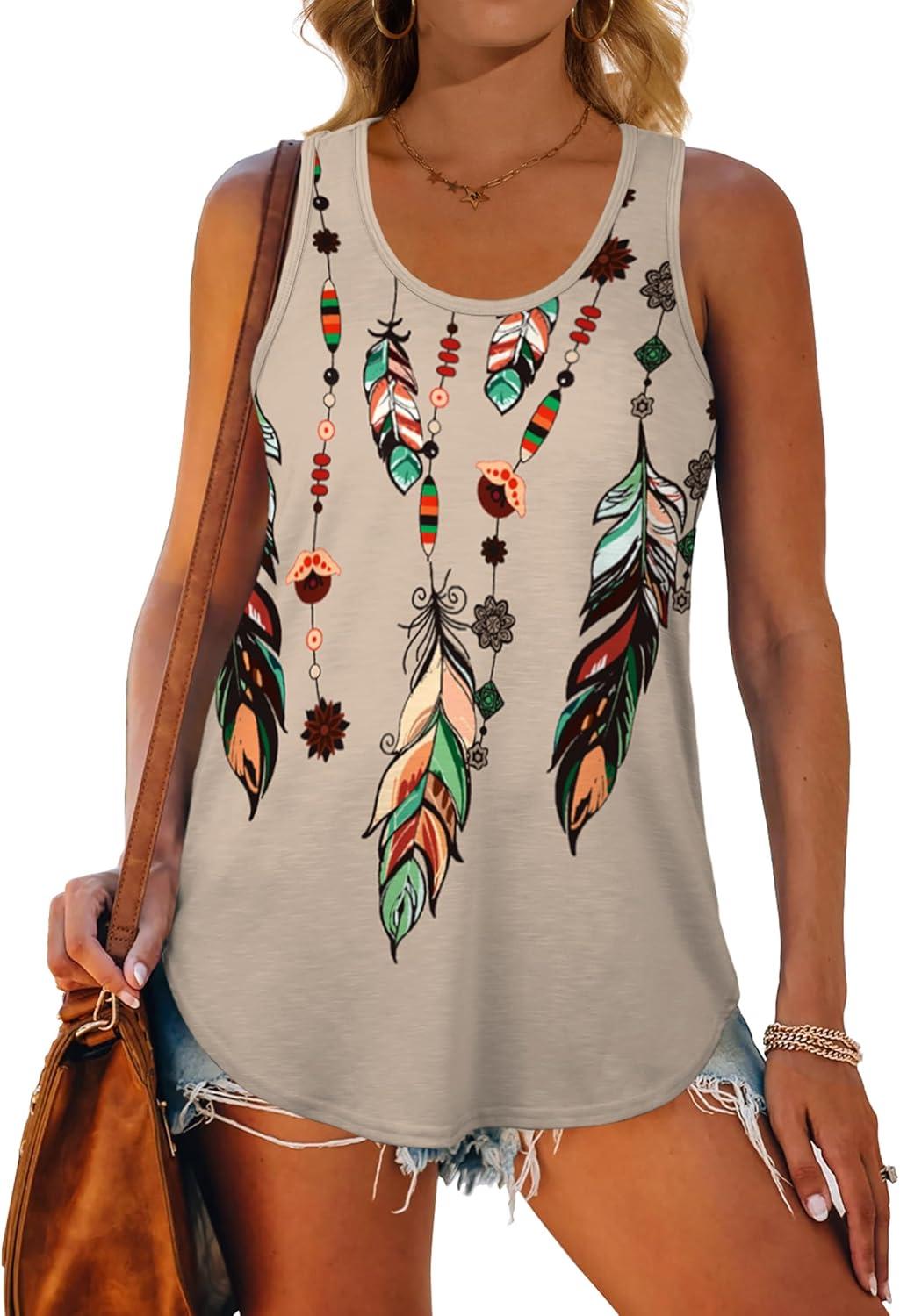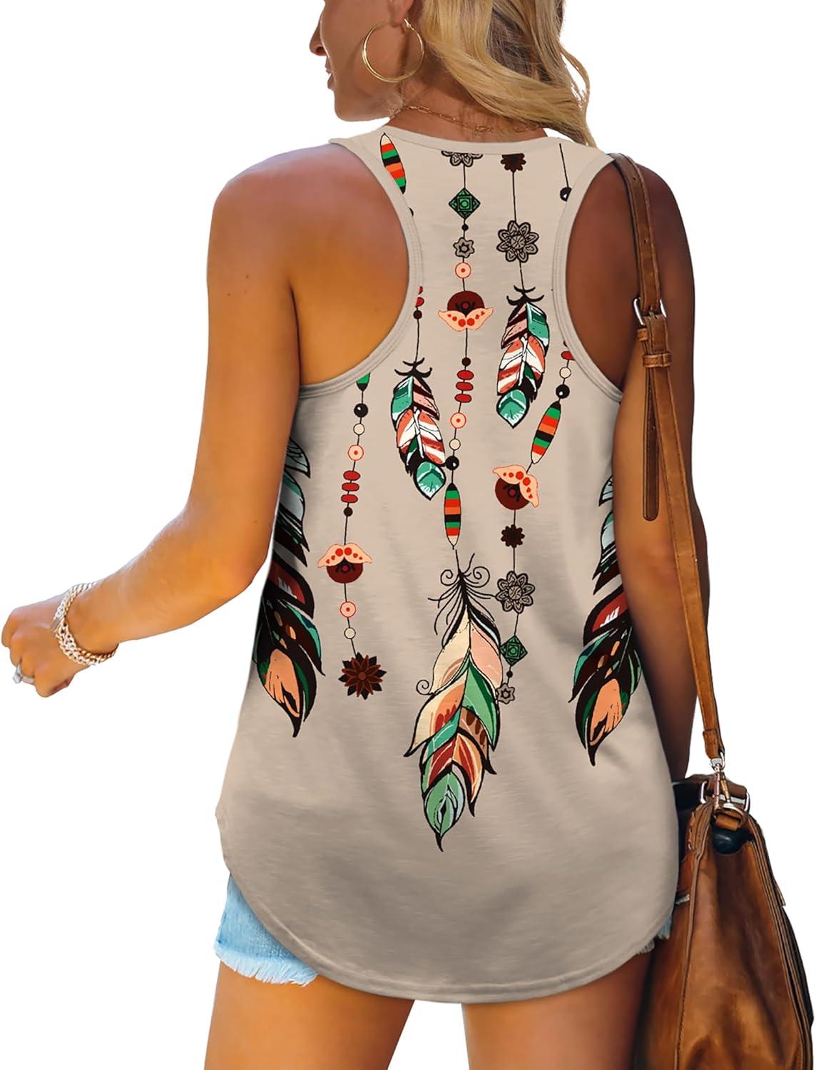 Womens Tank Tops Racerback Loose Shirts for Women Summer(50-feather Necklace)