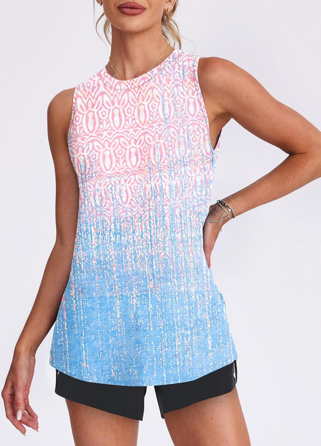 Womens Workout Tank Tops Lightweight Sleeveless Shirts for Women Loose Fit Tops for Athletic Running Tennis Yoga(Pink Blue)