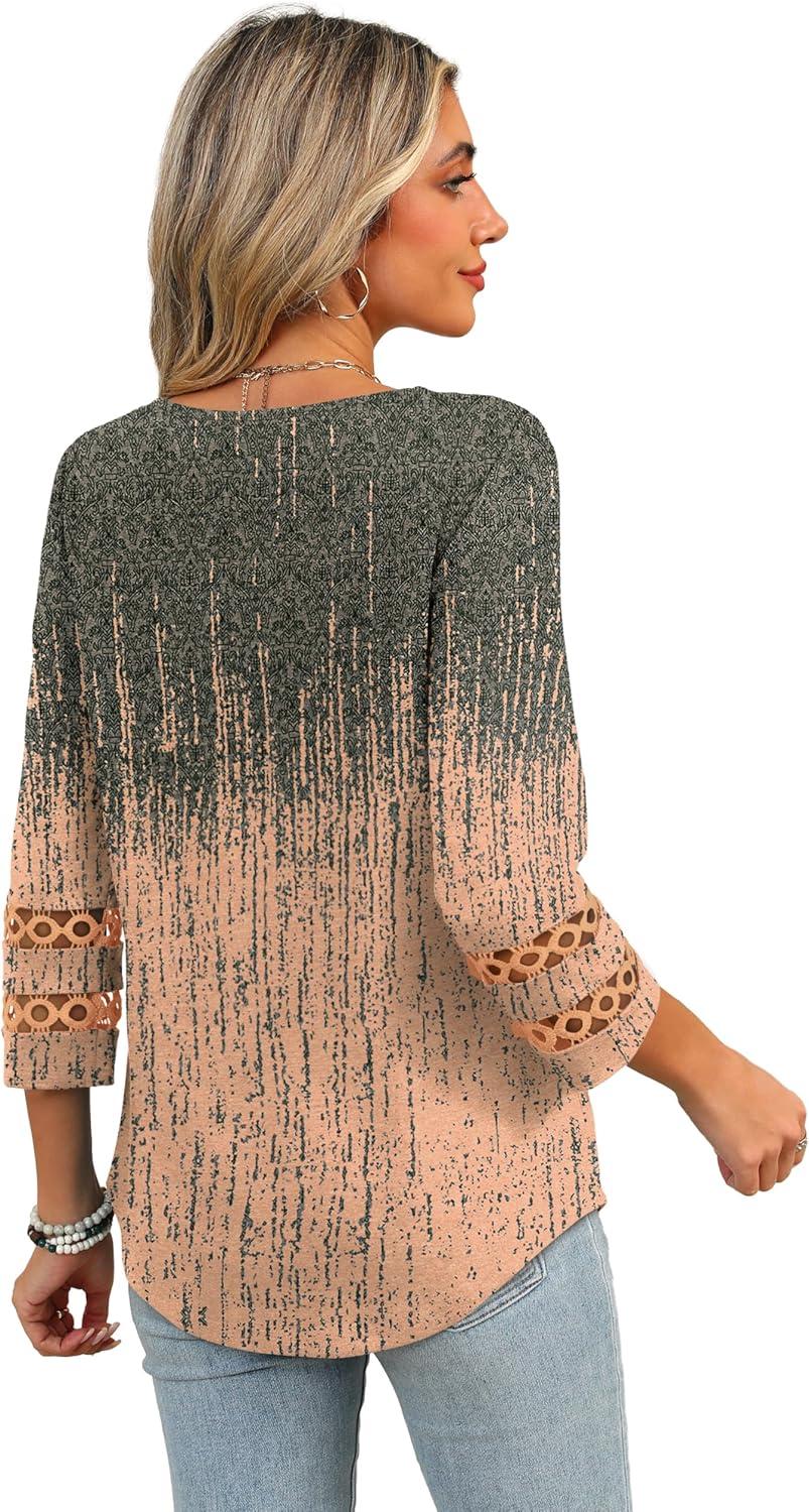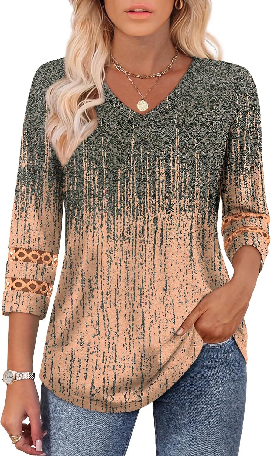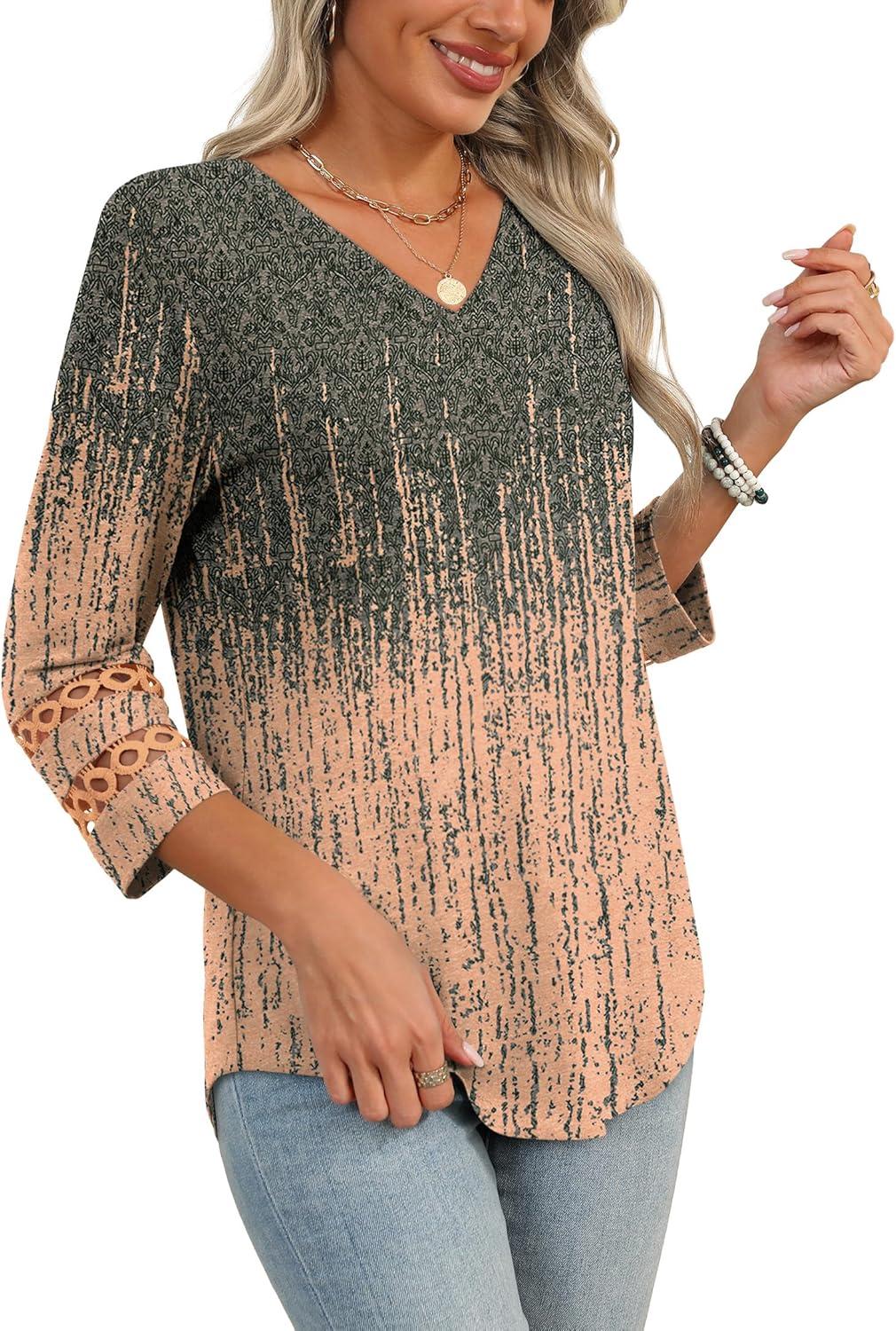 XIEERDUO 3/4 Length Sleeve Womens Tops Dressy Casual Blouses for Women 2025 Trendy V Neck T Shirts Summer Clothes(Z Grey Coral)
