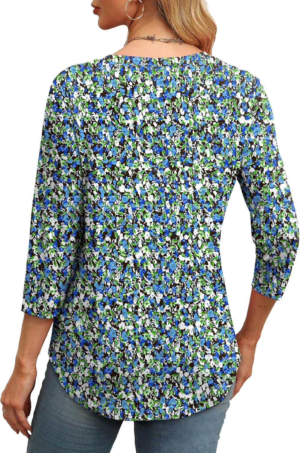 Discover the latest XIEERDUO 3/4 Length Sleeve Womens Tops Round Neck Casual Tunic Tops Basic Pleated Shirts Loose Fit 2025(Patterned-floral Blue) from and take advantage of our limited-time introductory offer.