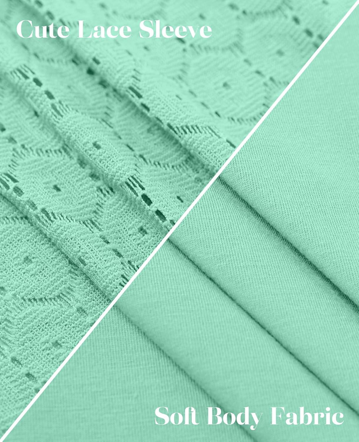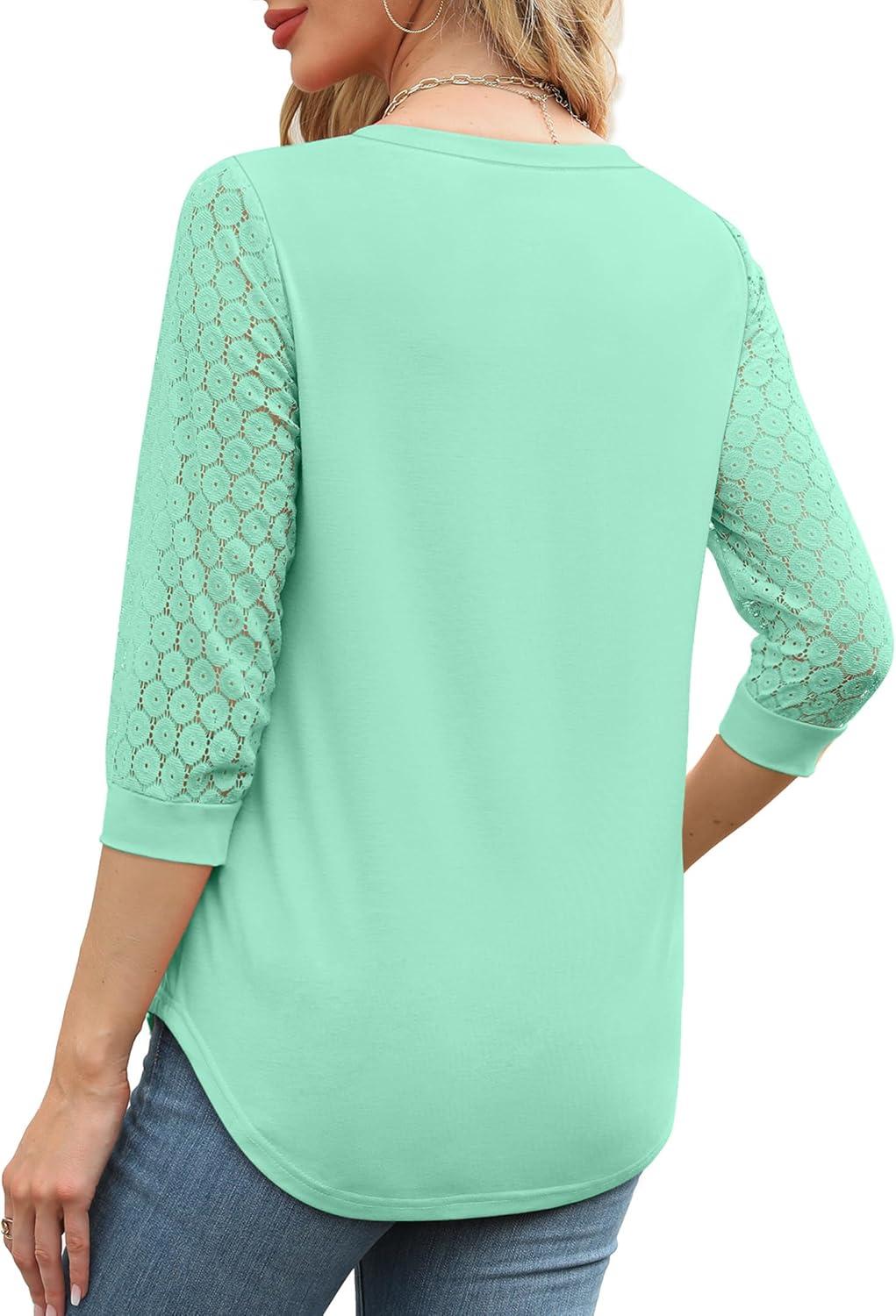 XIEERDUO 3/4 Length Sleeve Womens Tops V-Neck Lace Tunic Tops Business Casual Blouses 2025(Aqua)