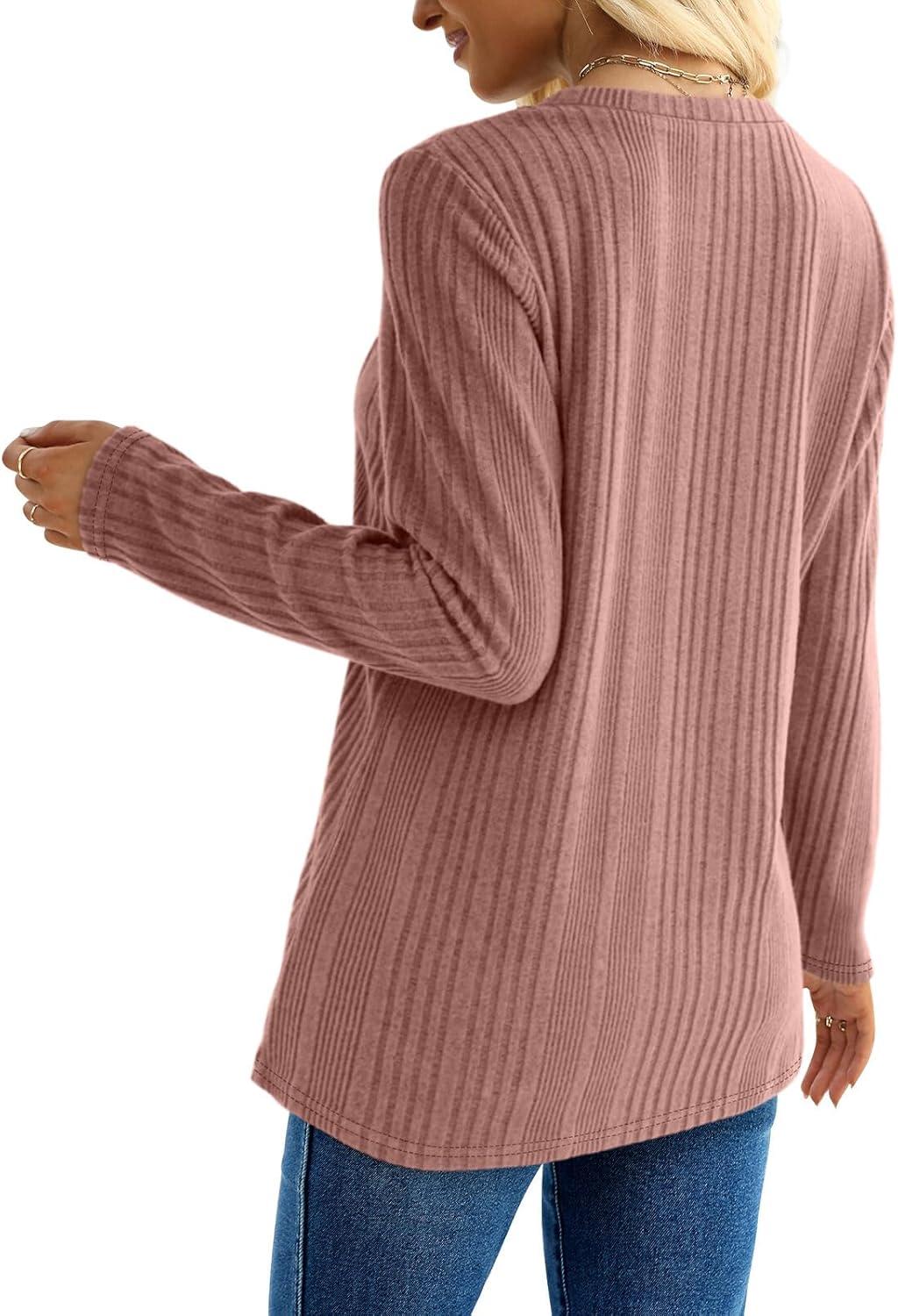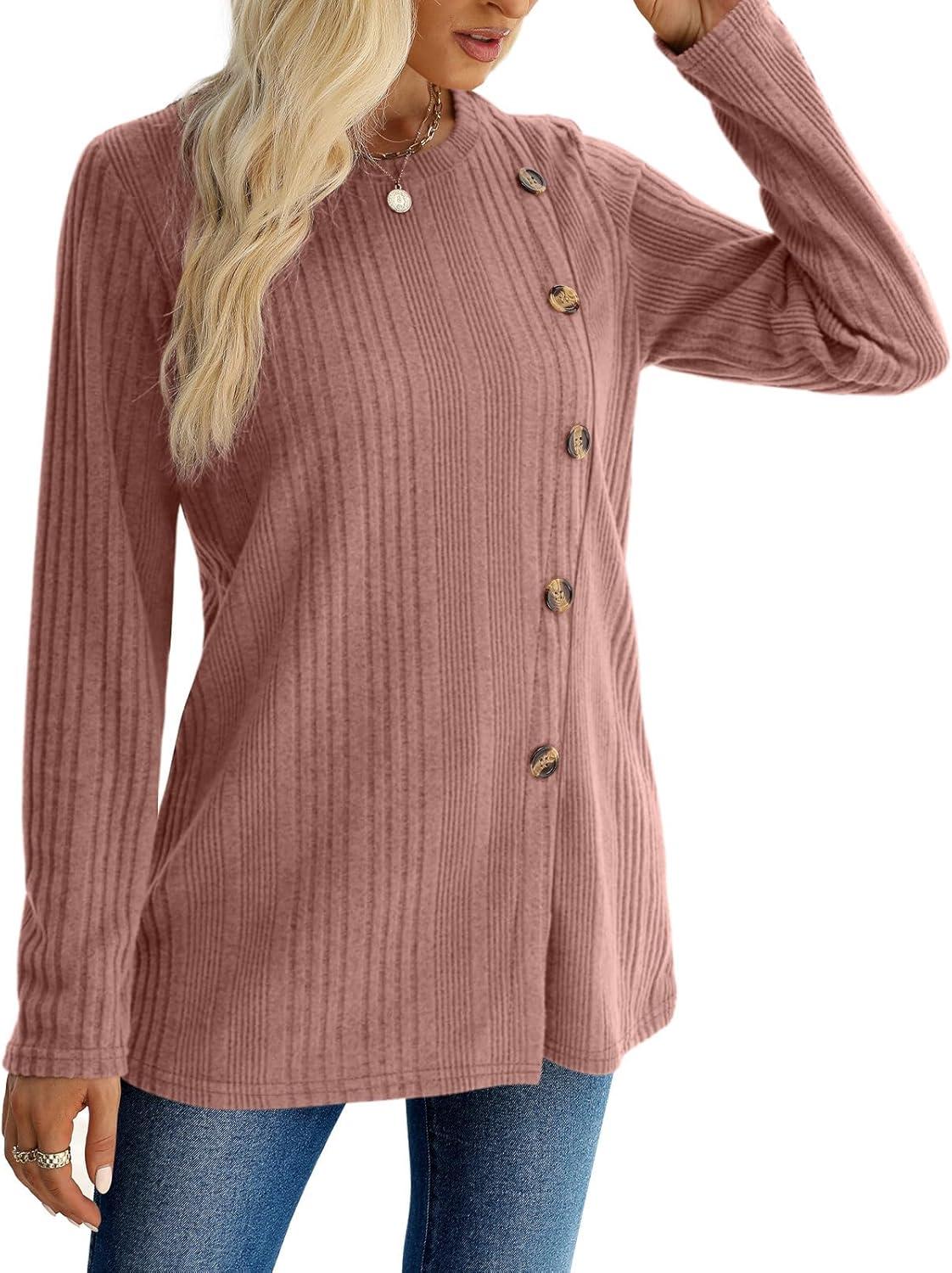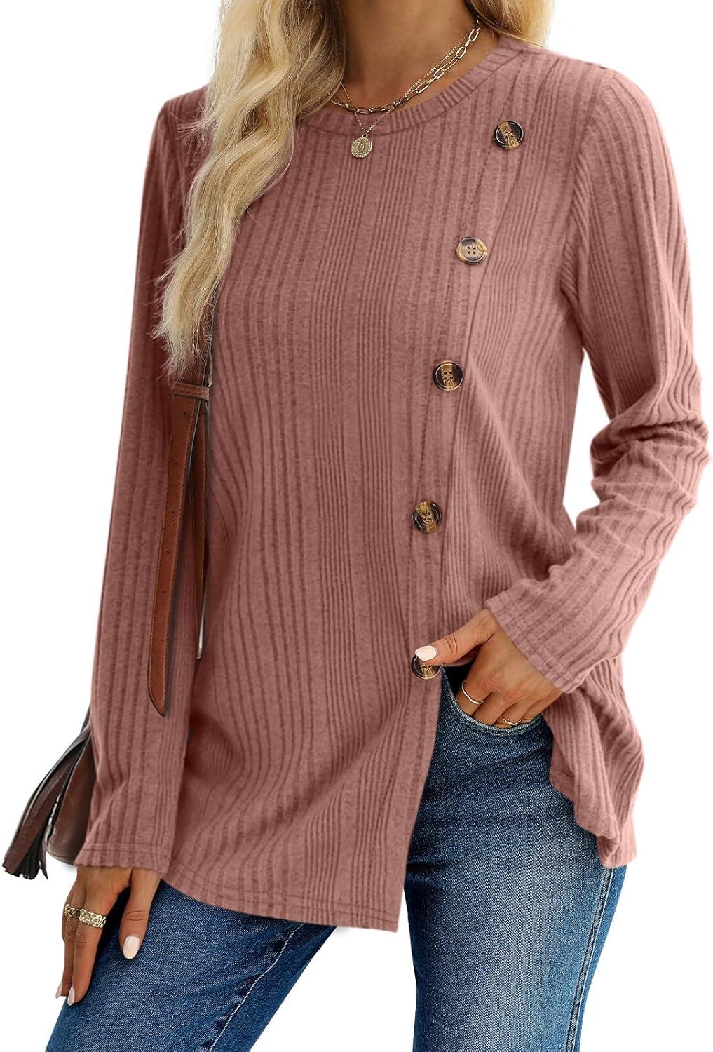 XIEERDUO Long Sleeve Tops for Women Tunics Buttons Front Slit(E2- Pink)