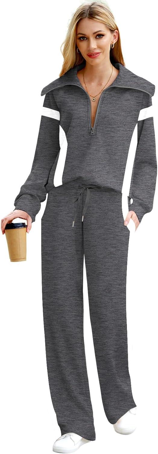 Lounge Sets For Women 2025 Half Zip Sweatshirt And Wide Leg Sweatpant 2 Piece Outfits Sweatsuit Tracksuit