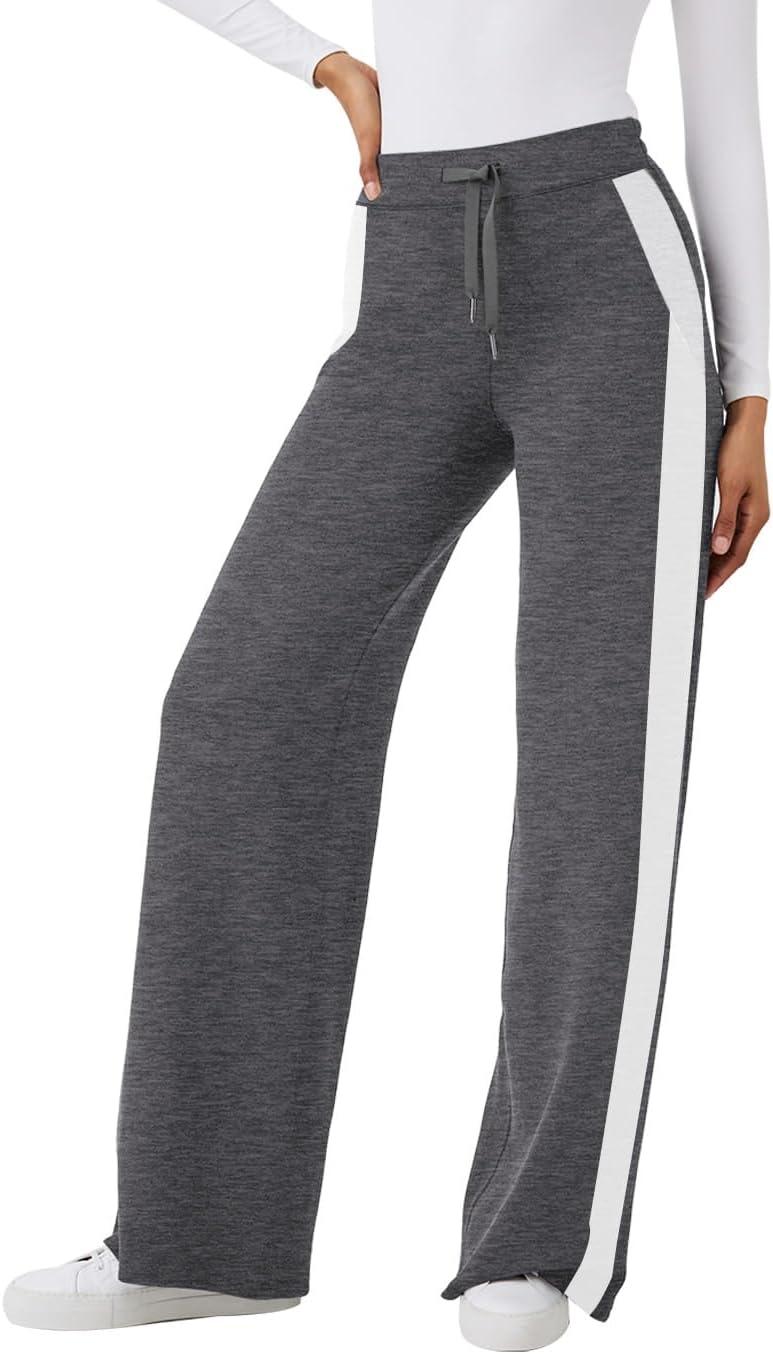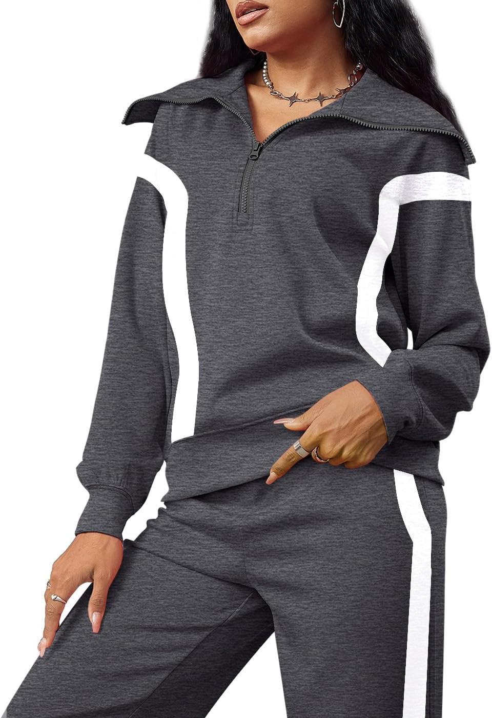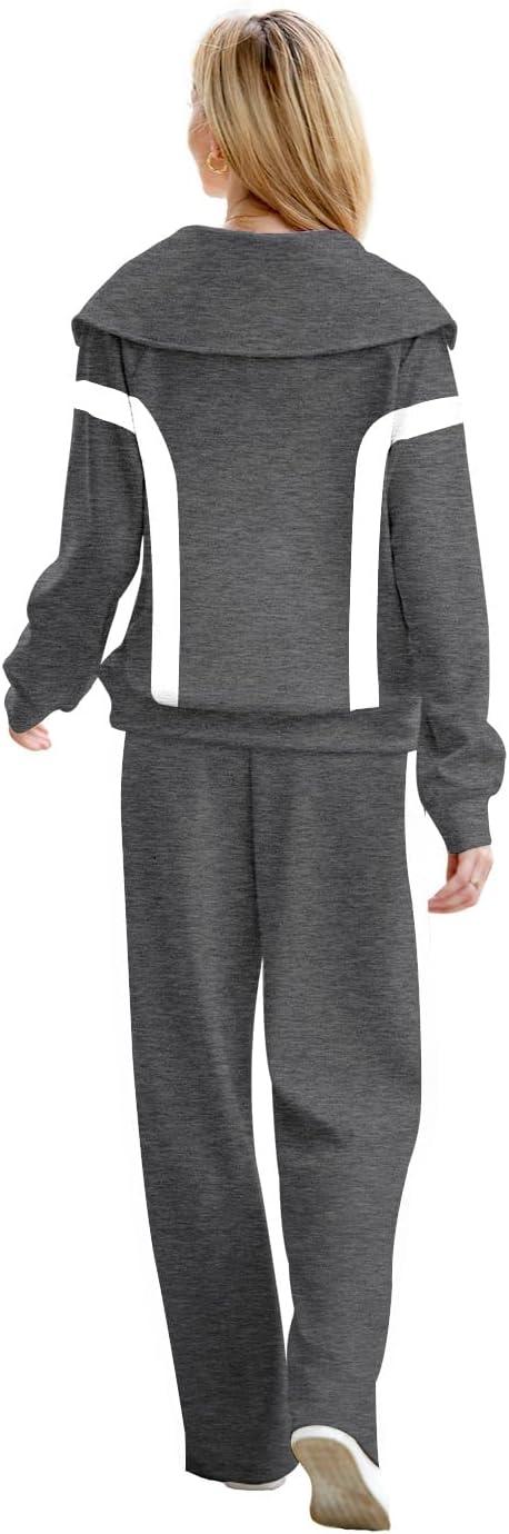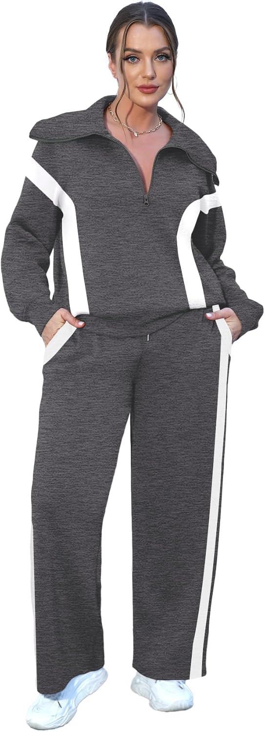 XIEERDUO Lounge Sets For Women 2025 Half Zip Sweatshirt And Wide Leg Sweatpant 2 Piece Outfits Sweatsuit Tracksuit(Color Block Dimgray)