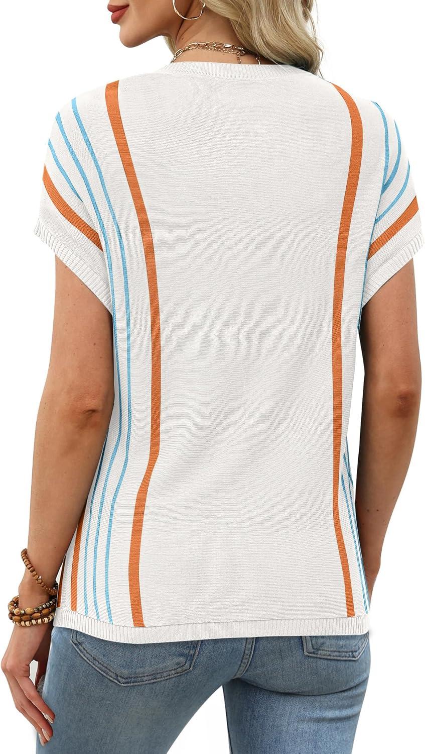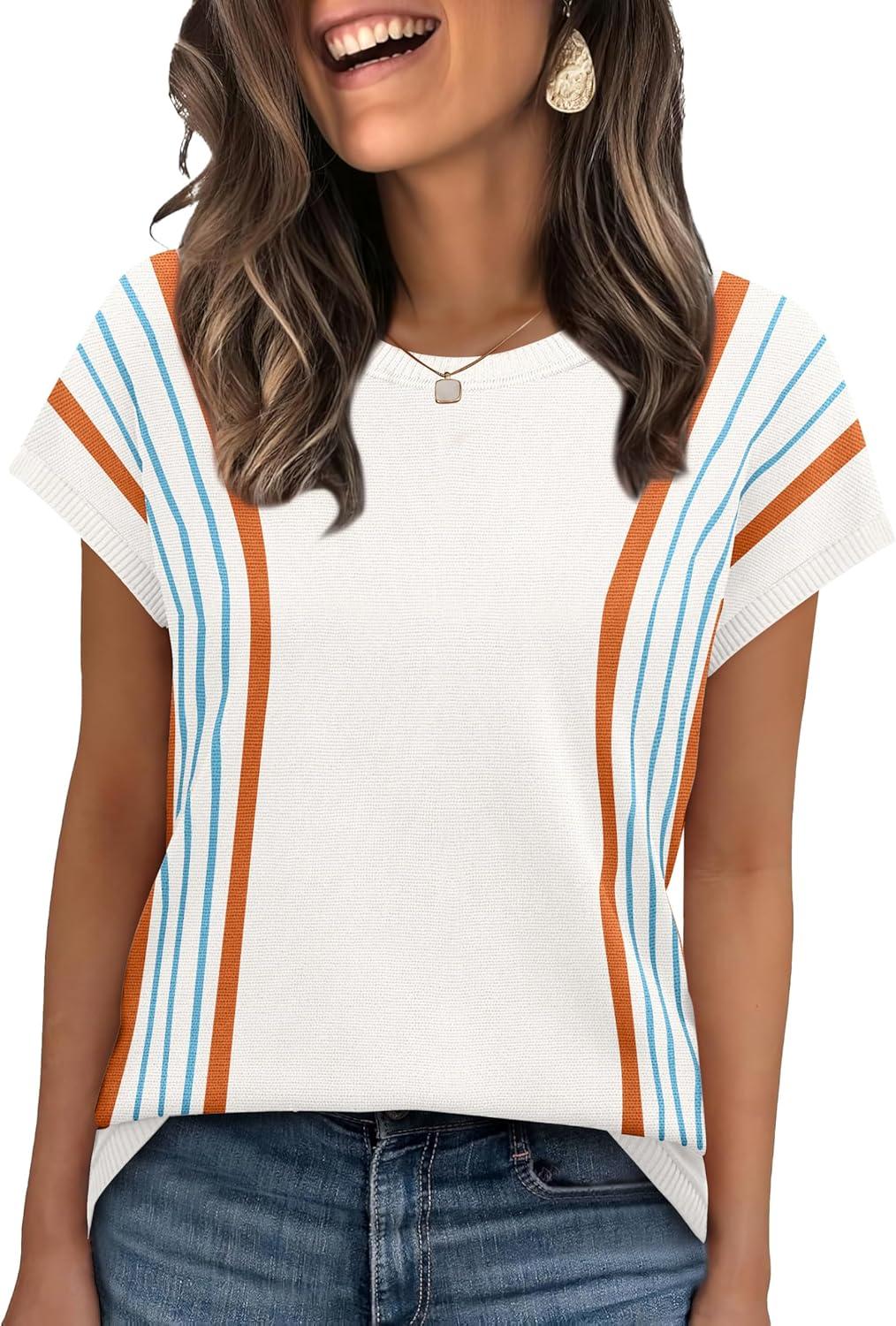 XIEERDUO Short Sleeve Sweater for Women Lightweight Sweaters Boho Tops Summer Clothes Beach Vacation Outfits 2026(Boho a White)