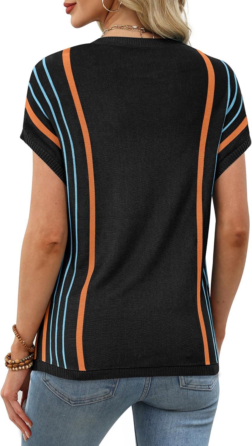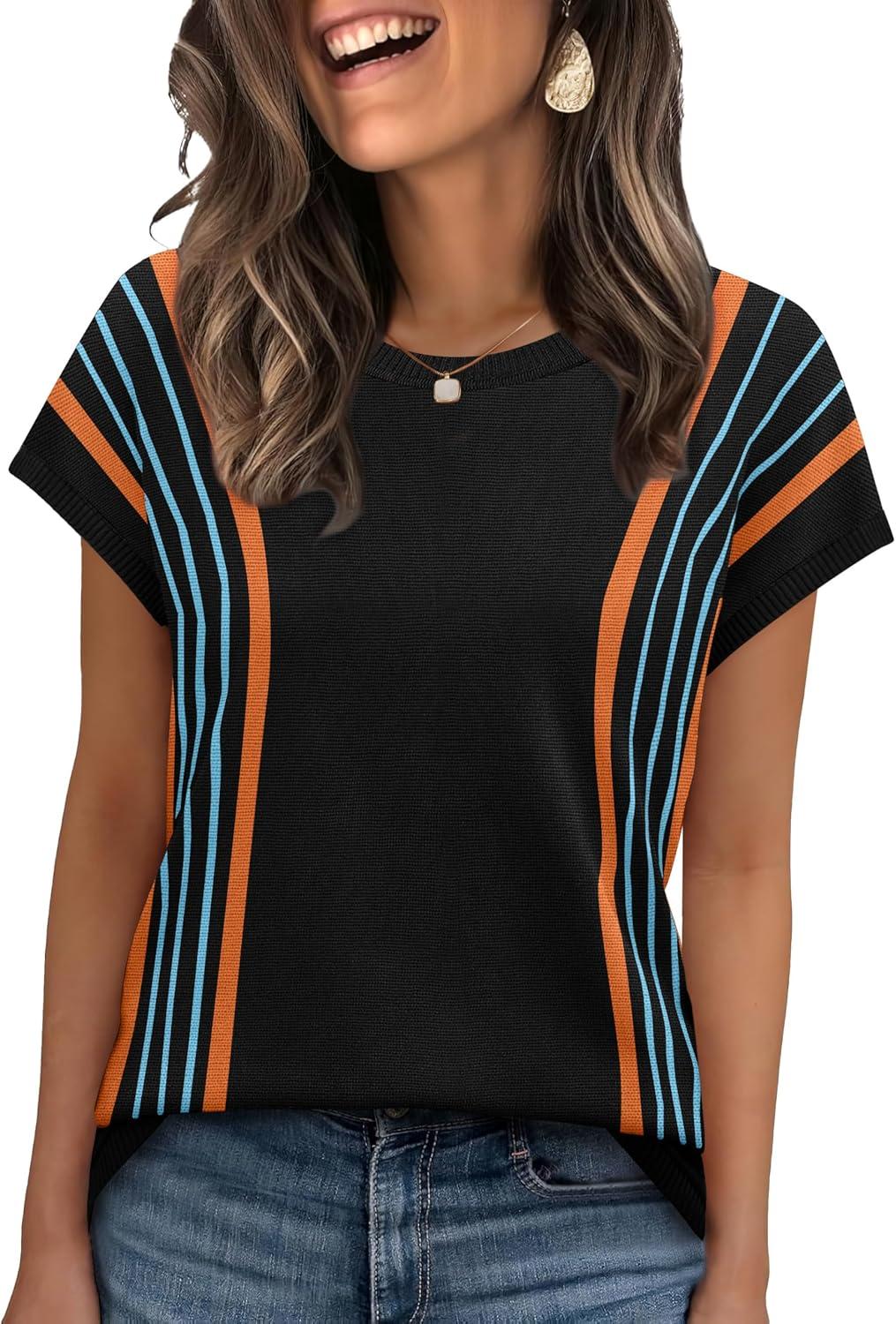 XIEERDUO Short Sleeve Sweater for Women Lightweight Sweaters Boho Tops Summer Clothes Beach Vacation Outfits 2026(Boho Black)