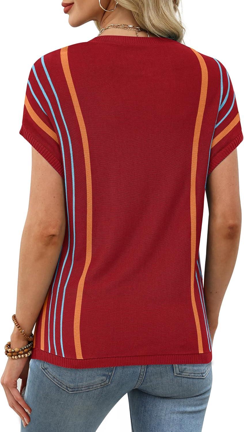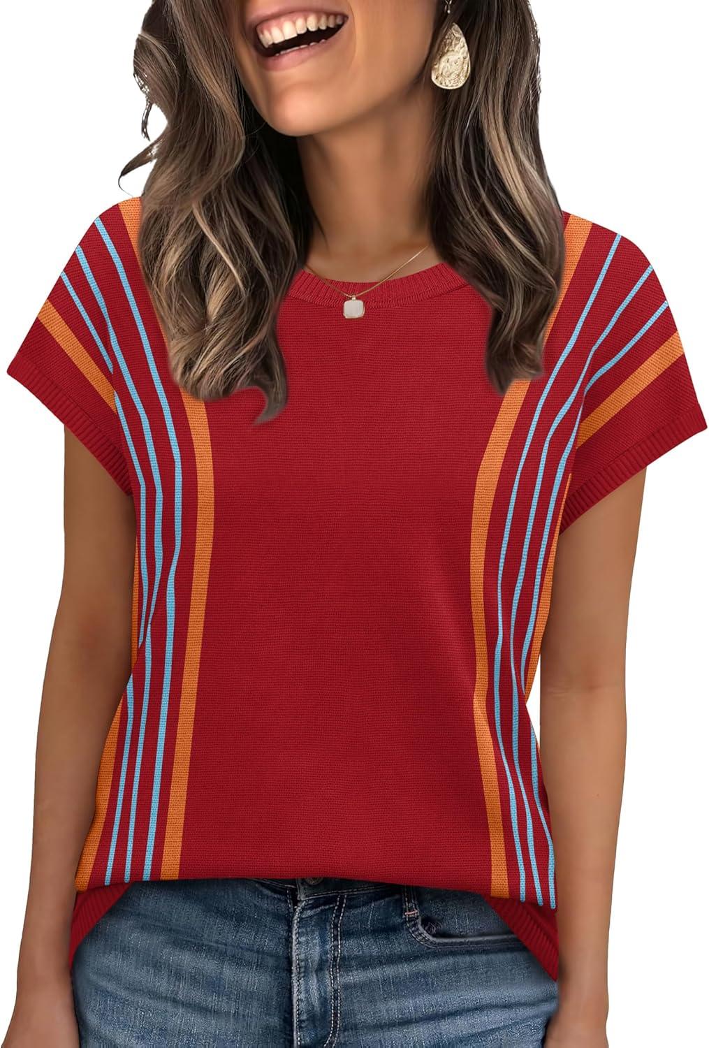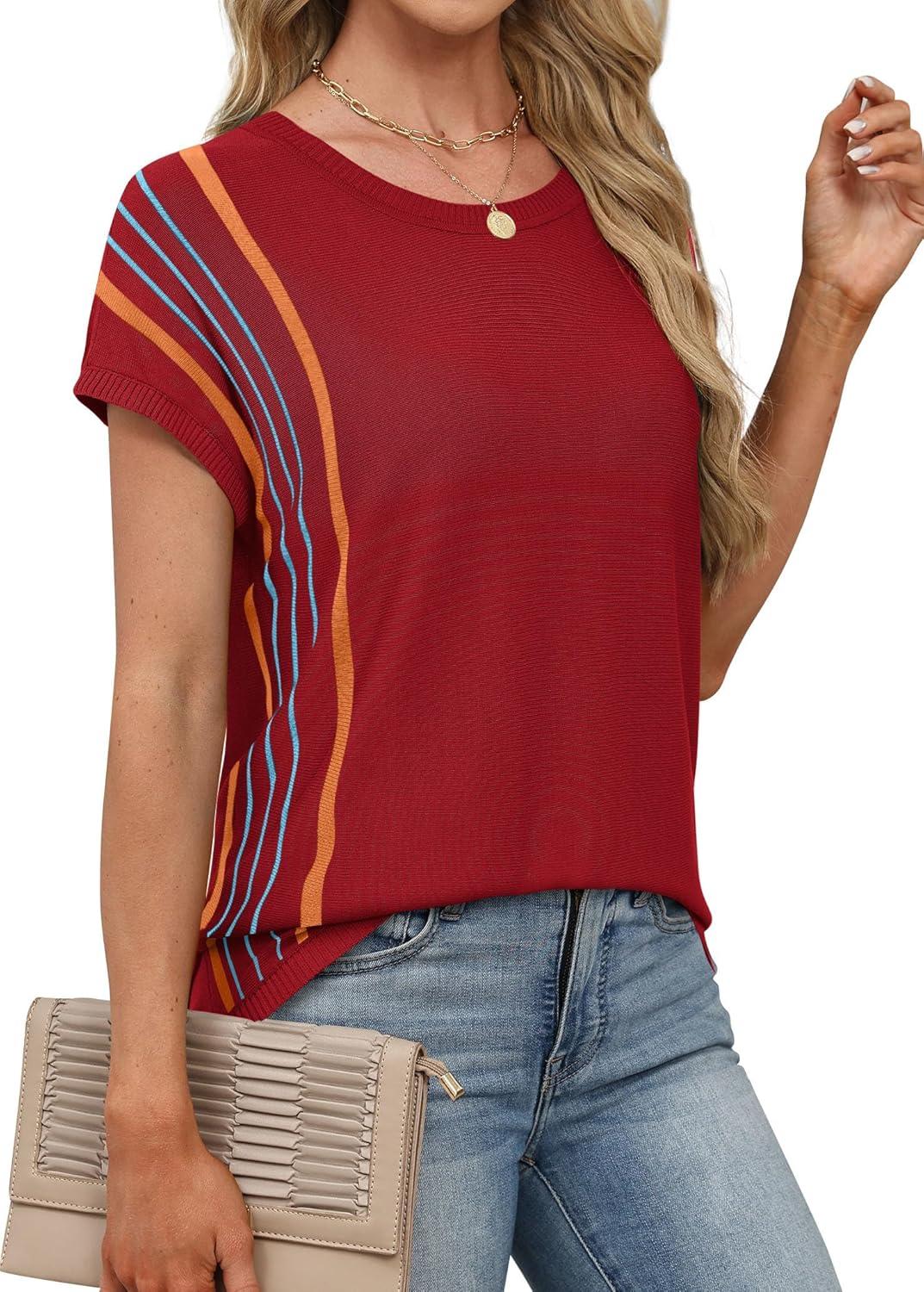 XIEERDUO Short Sleeve Sweater for Women Lightweight Sweaters Boho Tops Summer Clothes Beach Vacation Outfits 2026(Boho Red)