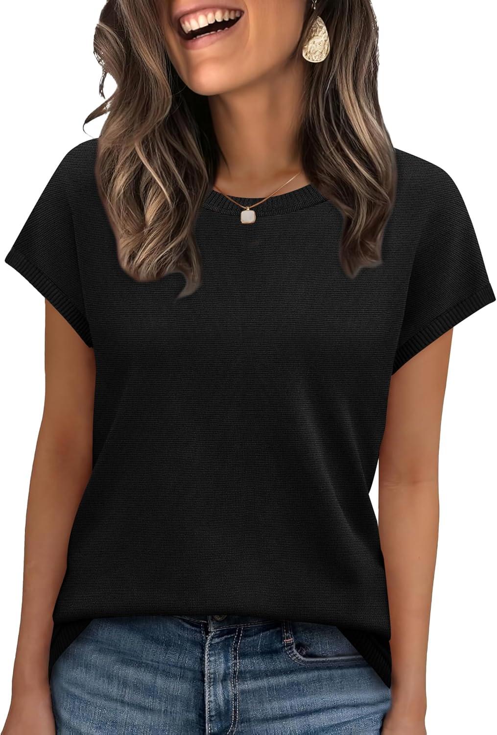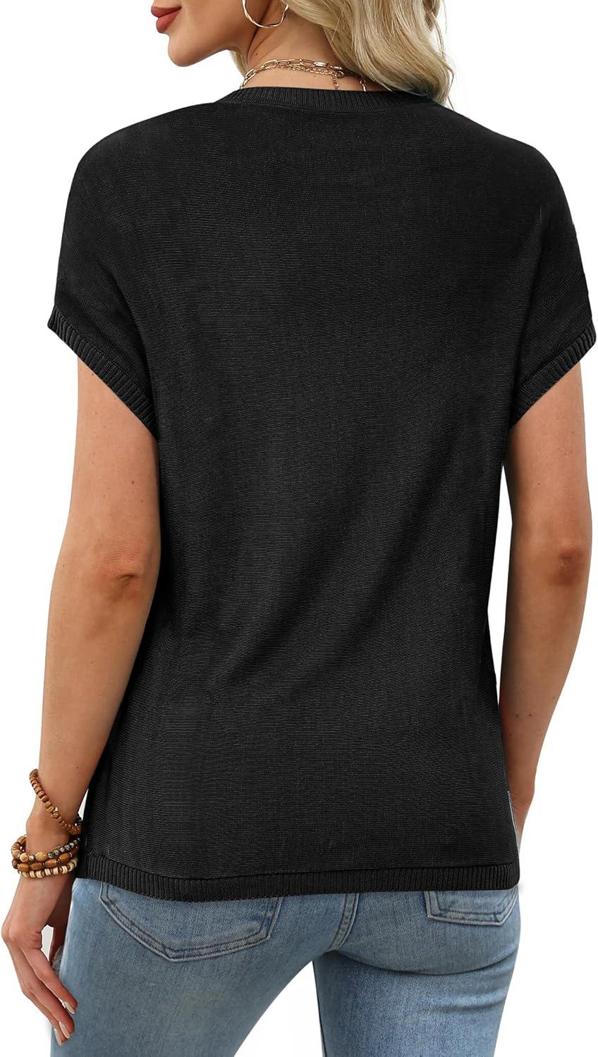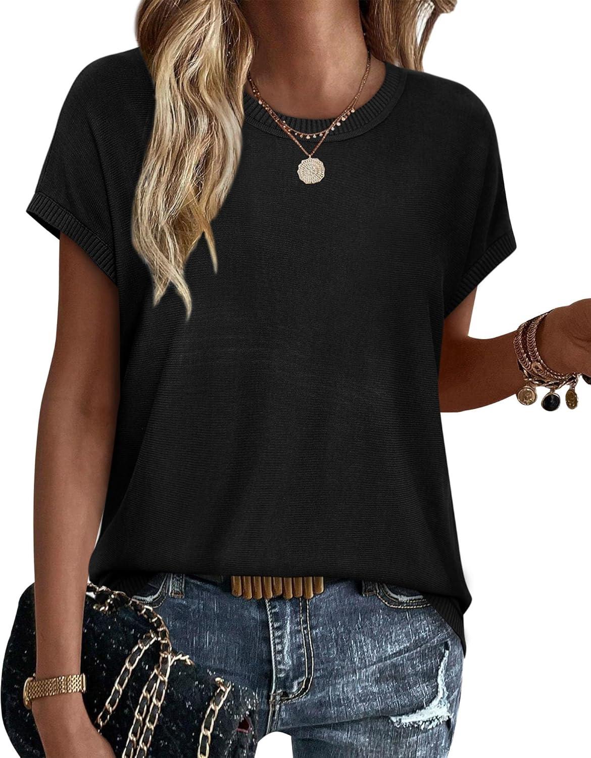 XIEERDUO Short Sleeve Sweater for Women Lightweight Sweaters Boho Tops Summer Clothes Beach Vacation Outfits 2026(Solid a Black)