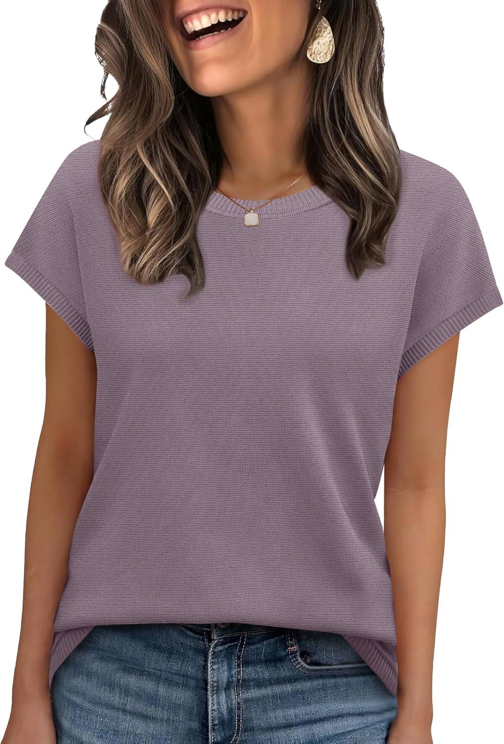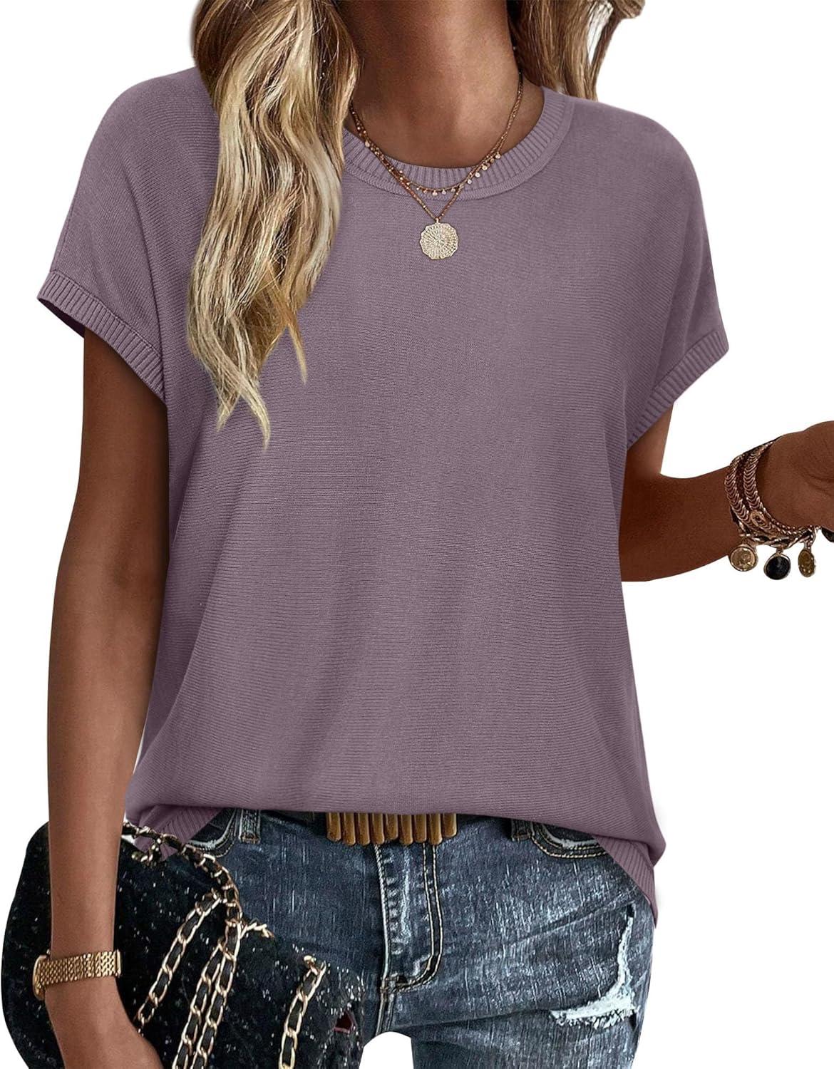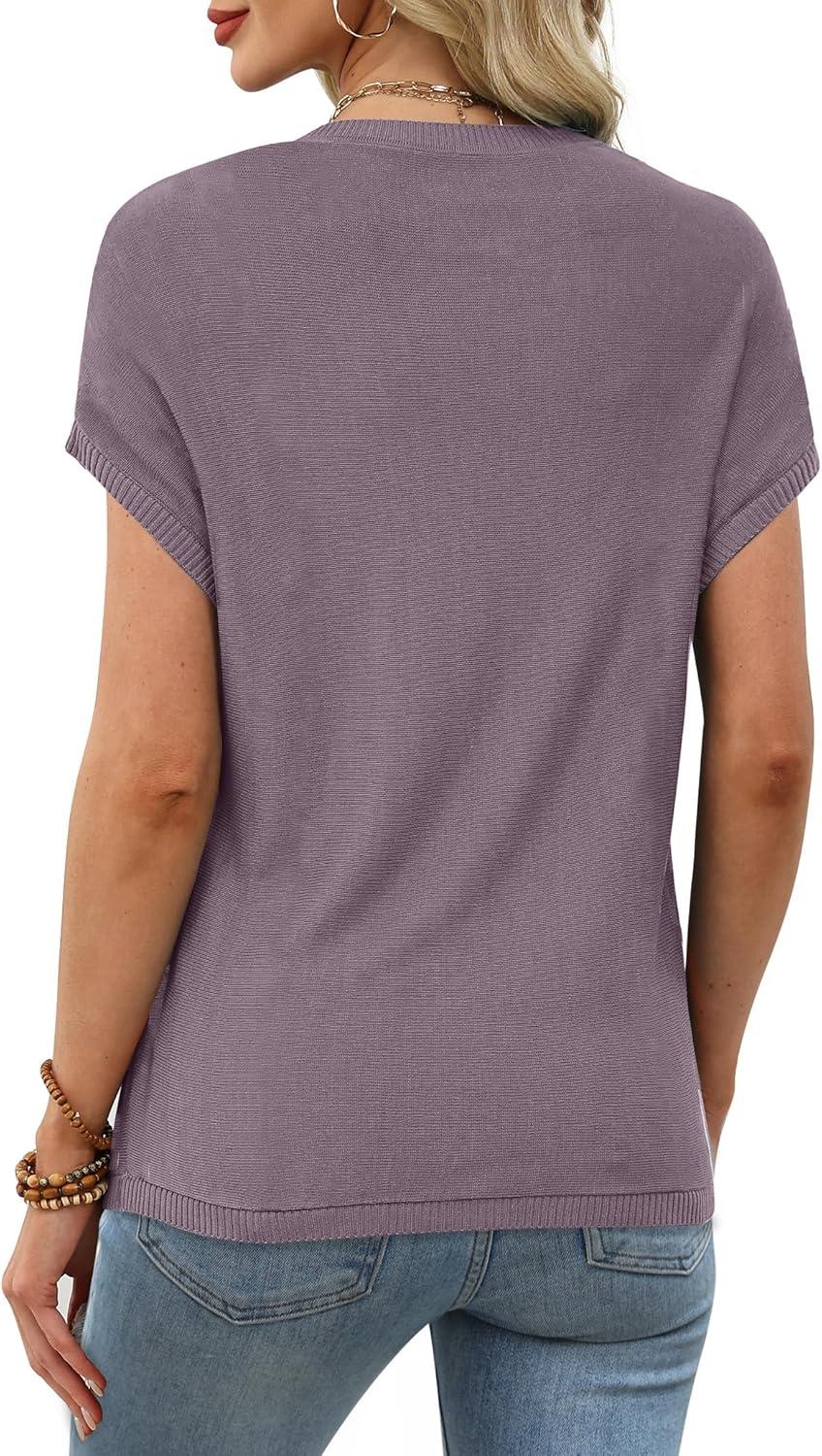 XIEERDUO Short Sleeve Sweater for Women Lightweight Sweaters Boho Tops Summer Clothes Beach Vacation Outfits 2026(Solid Purple)