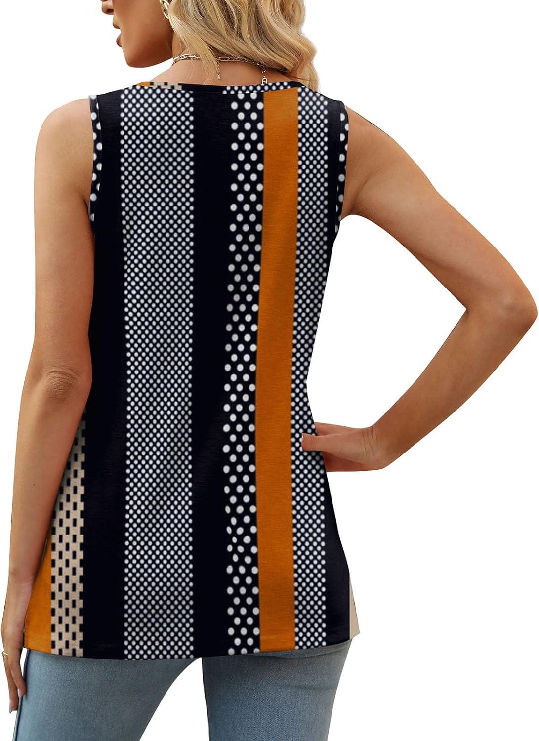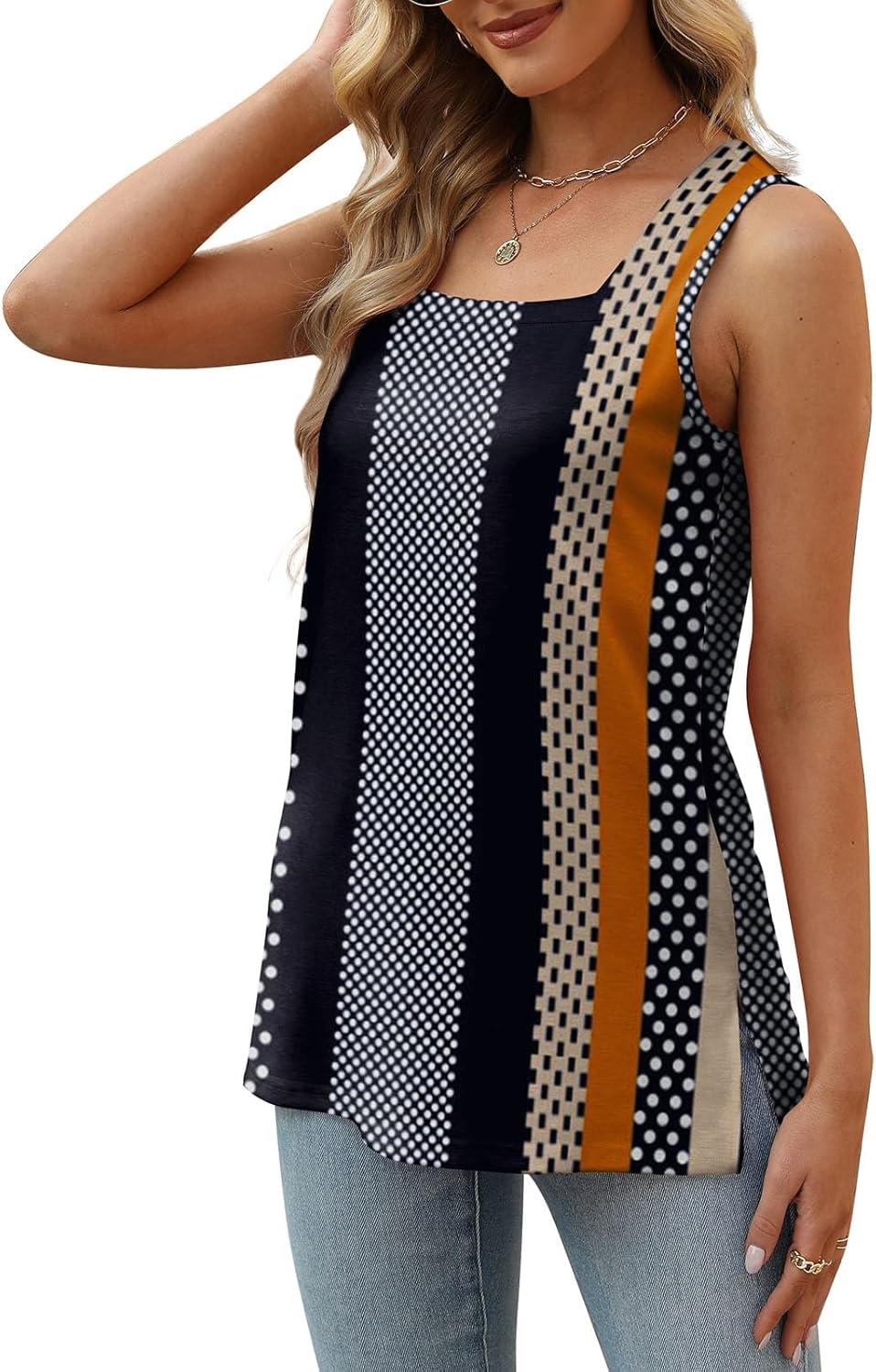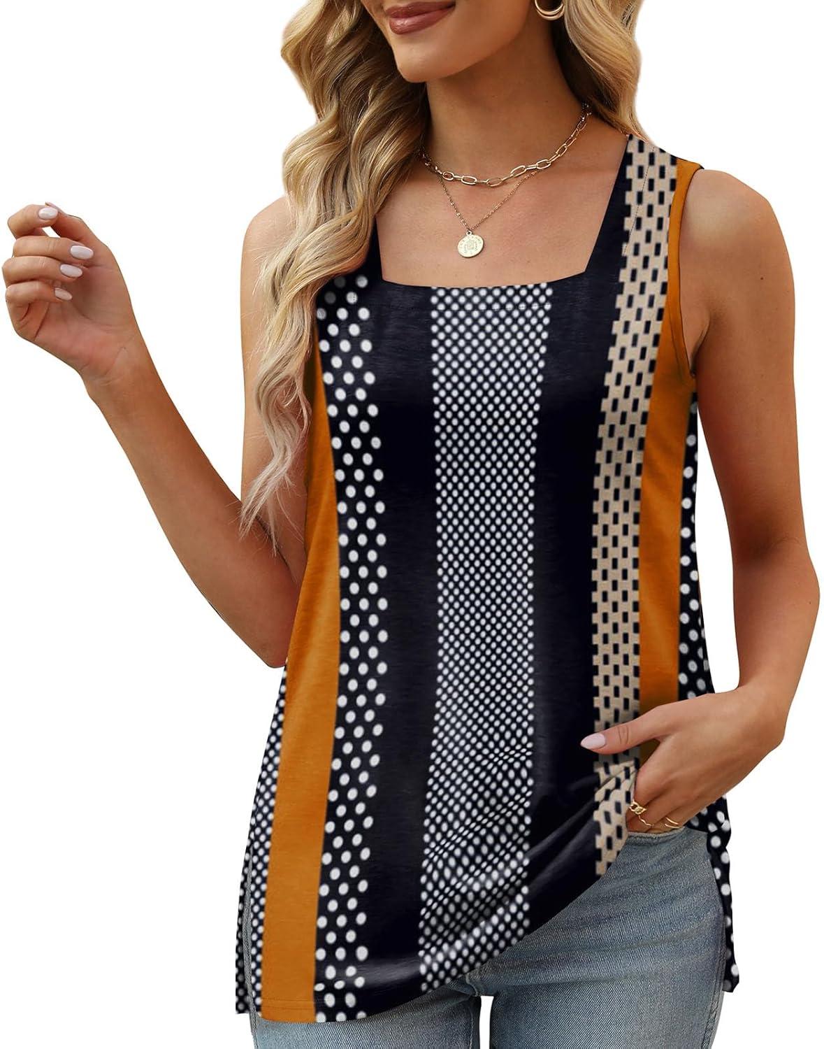 XIEERDUO Summer Tank Tops for Women Square Neck Loose Fit Casual Fashion Flowy Sleeveless(01-black Orange Multi)