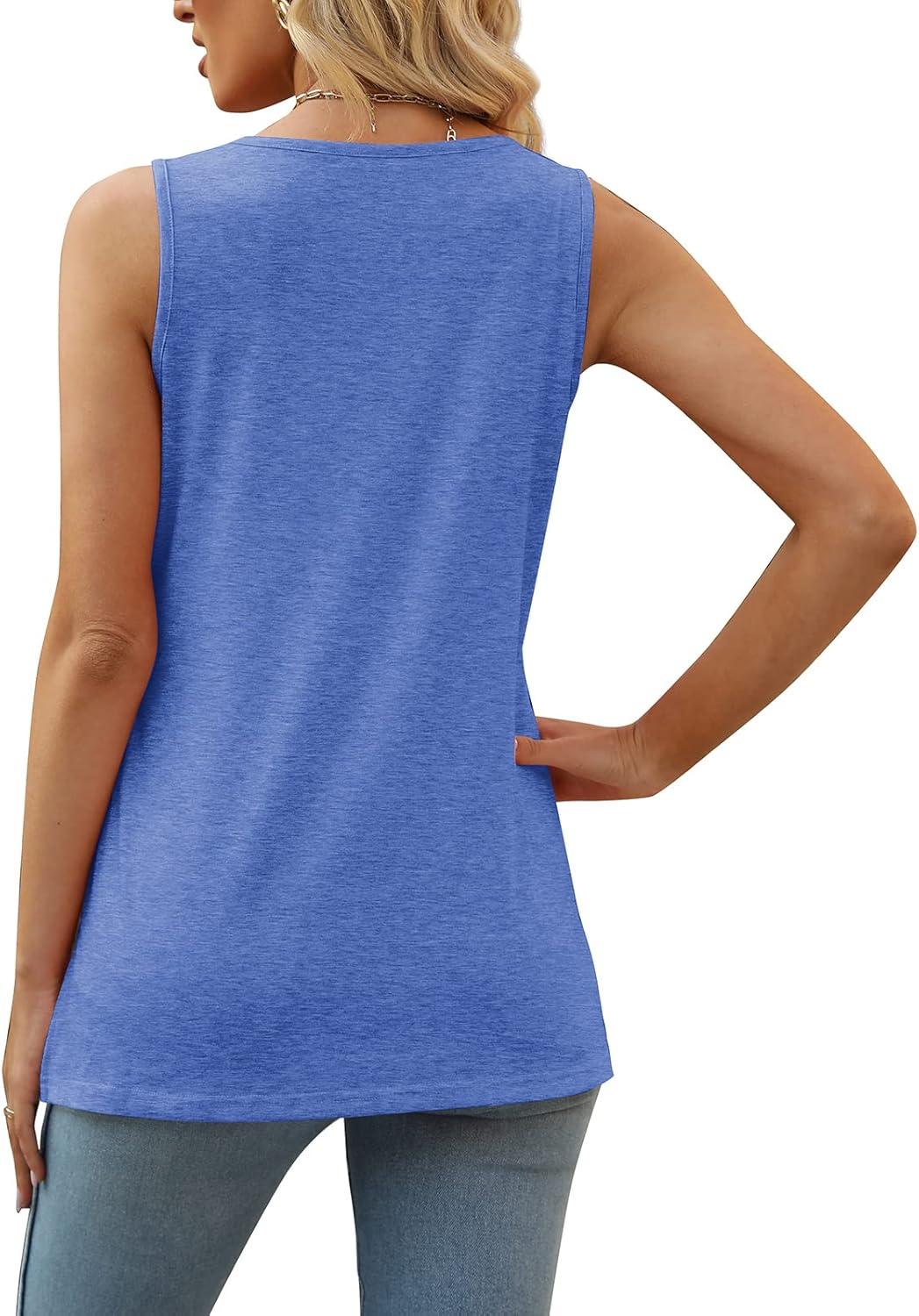 XIEERDUO Summer Tank Tops for Women Square Neck Loose Fit Casual Fashion Flowy Sleeveless(01a-blue)
