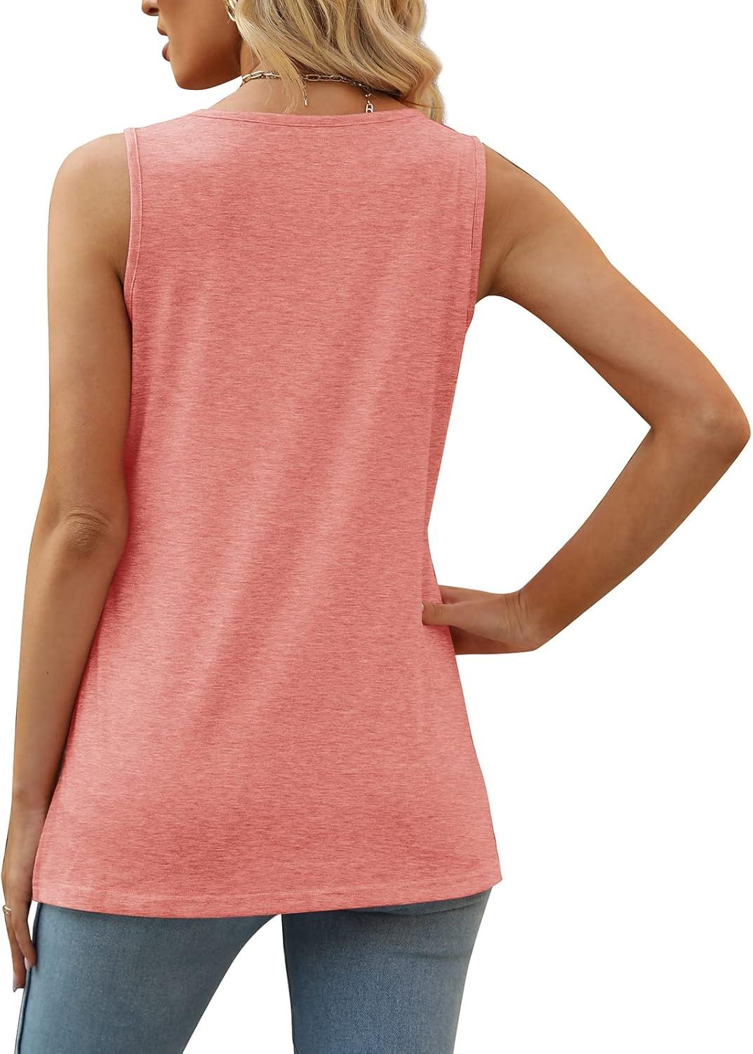 XIEERDUO Summer Tank Tops for Women Square Neck Loose Fit Casual Fashion Flowy Sleeveless(01a-pink)