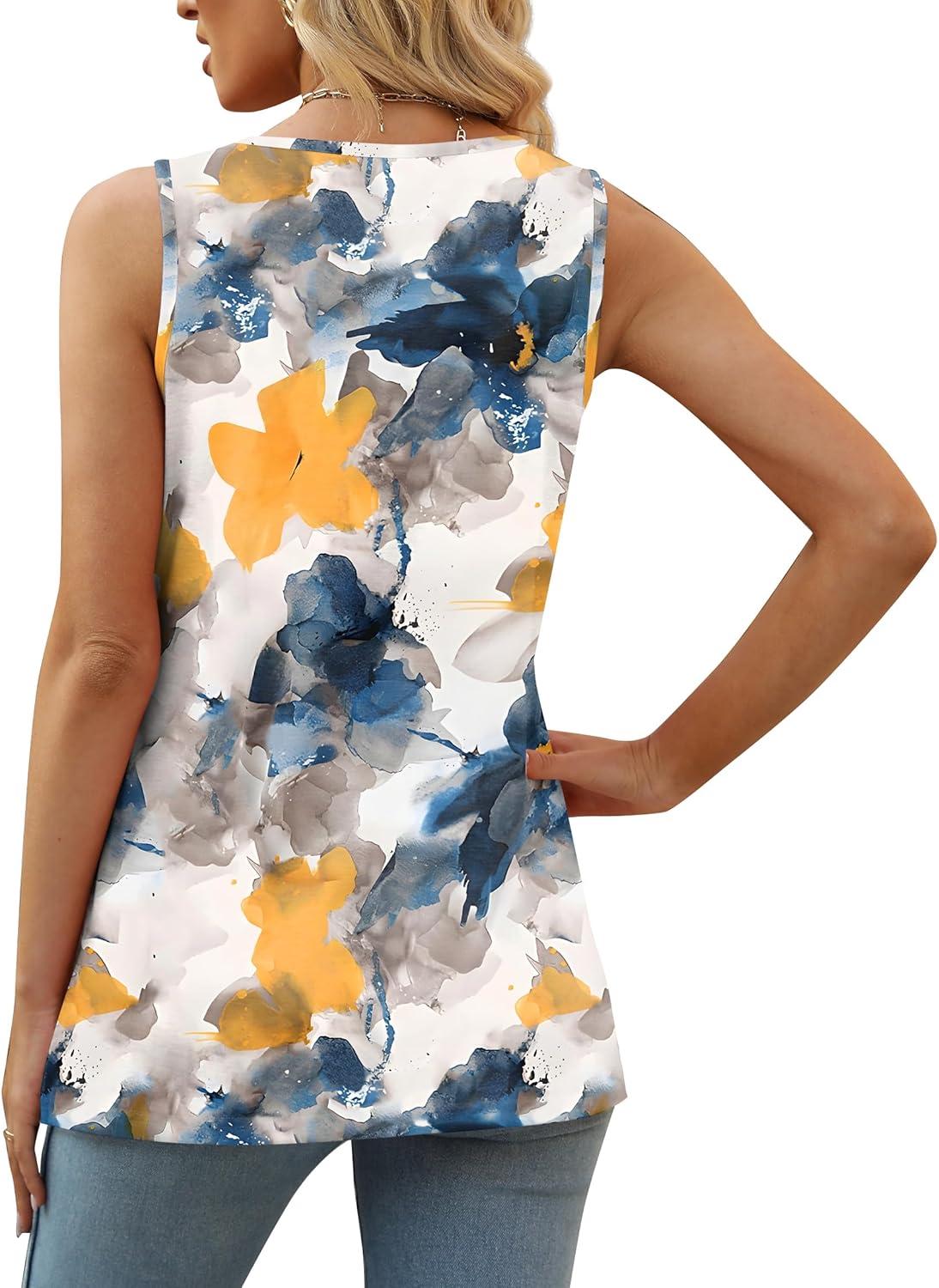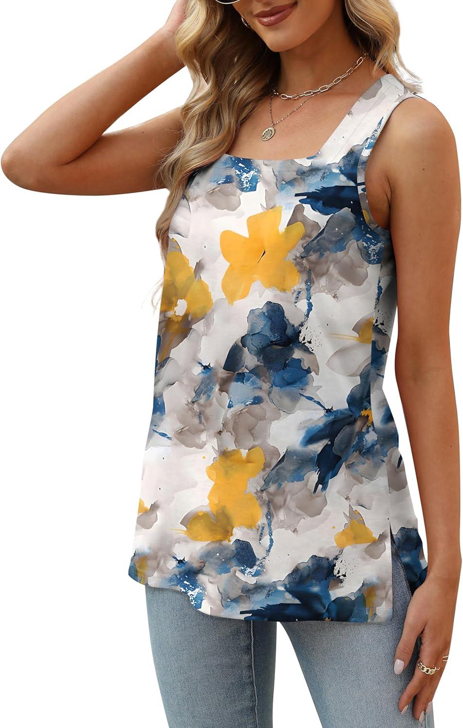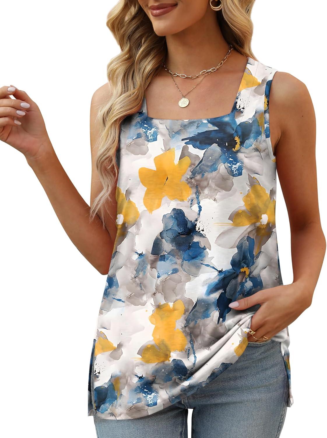 XIEERDUO Summer Tank Tops for Women Square Neck Loose Fit Casual Fashion Flowy Sleeveless(01b-tie Dye Flower)