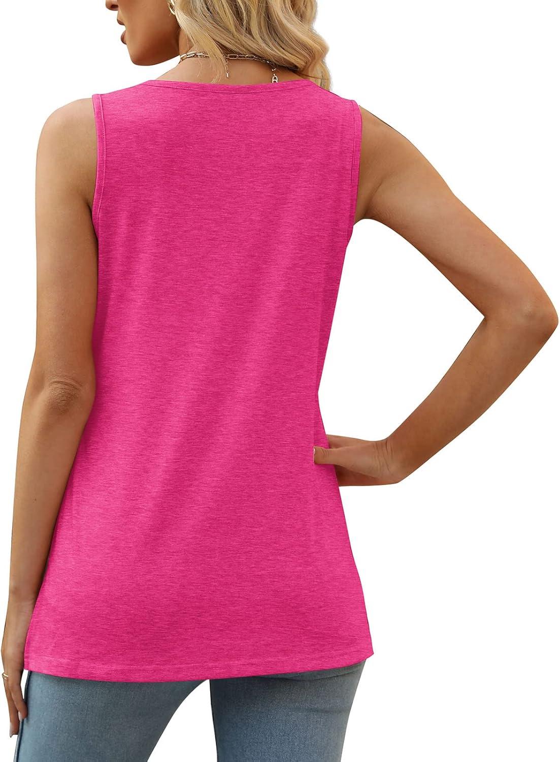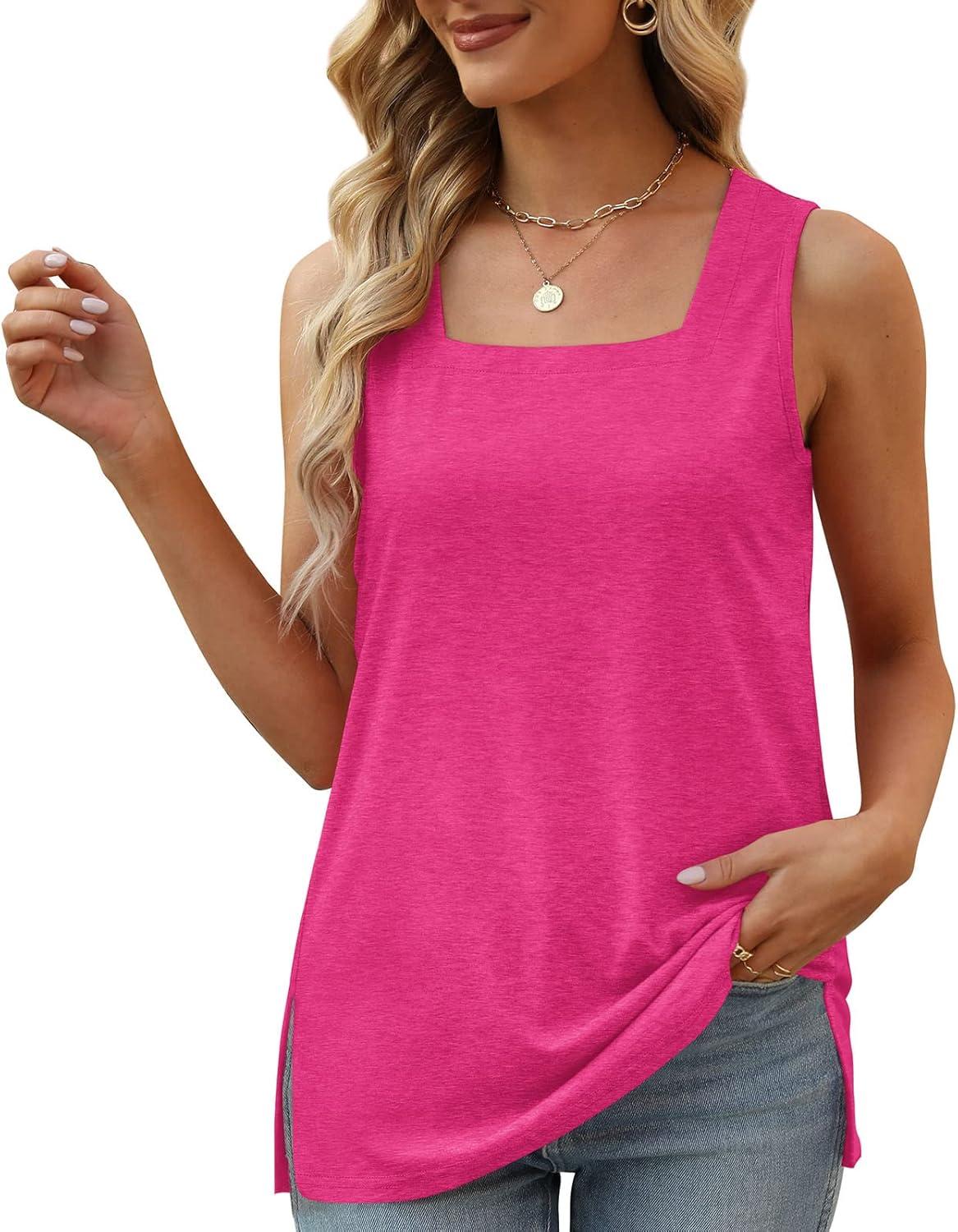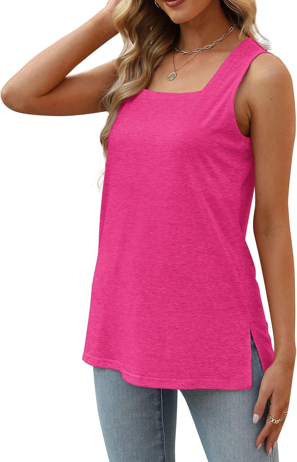 XIEERDUO Summer Tank Tops for Women Square Neck Loose Fit Casual Fashion Flowy Sleeveless(02-deep Pink)