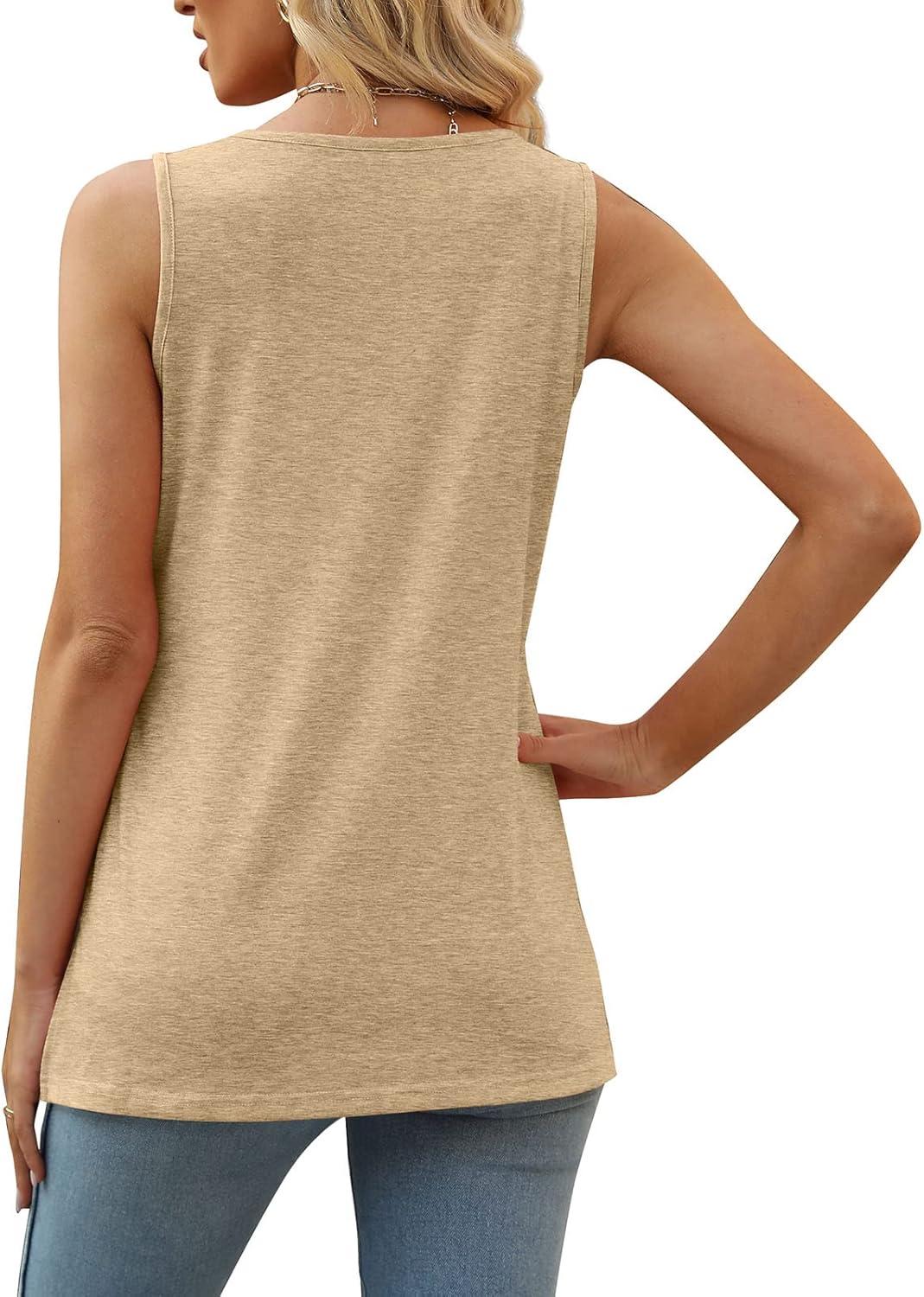 XIEERDUO Summer Tank Tops for Women Square Neck Loose Fit Casual Fashion Flowy Sleeveless(03-khaki)
