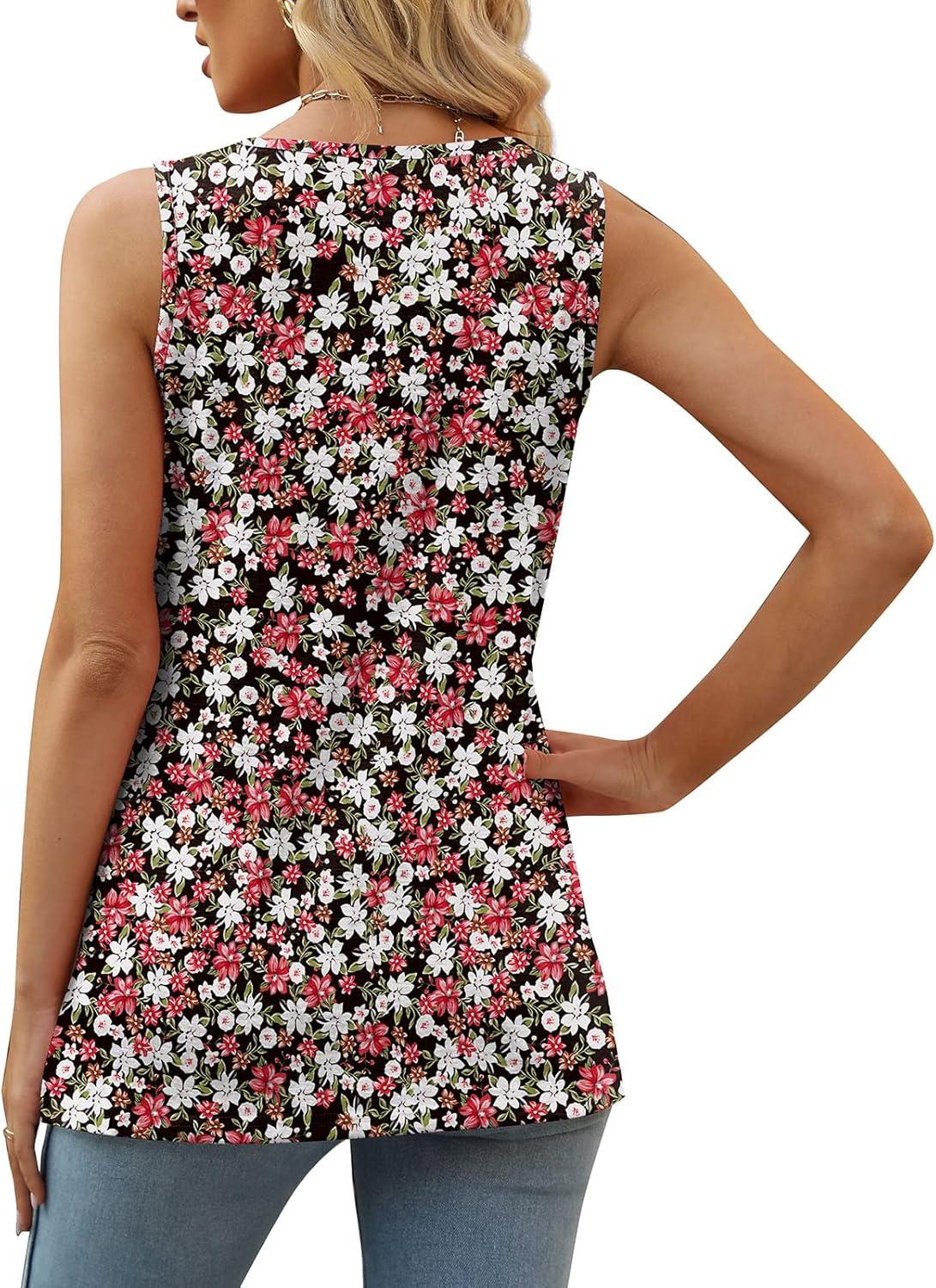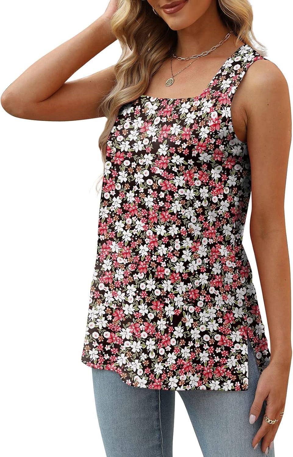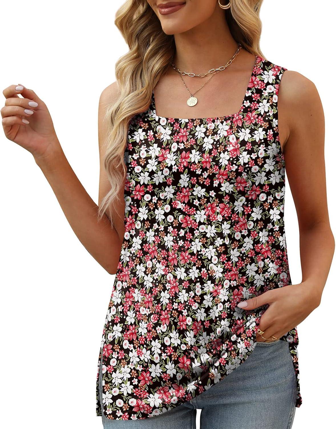 XIEERDUO Summer Tank Tops for Women Square Neck Loose Fit Casual Fashion Flowy Sleeveless(03-red White Flower)