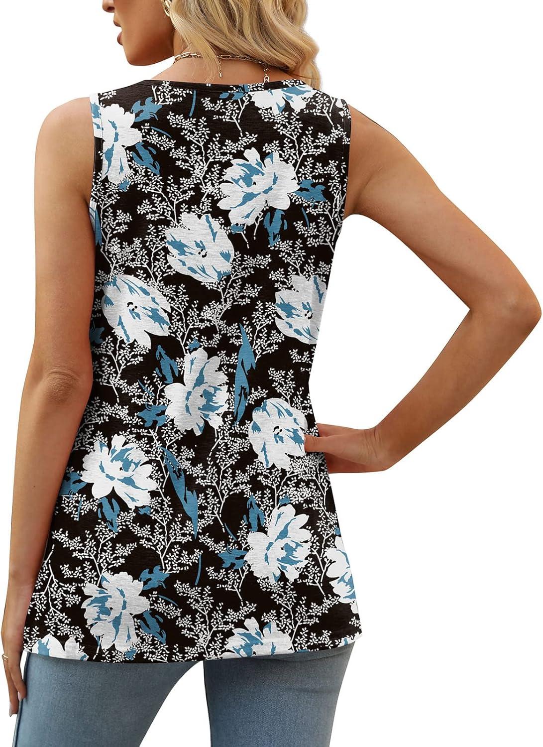 XIEERDUO Summer Tank Tops for Women Square Neck Loose Fit Casual Fashion Flowy Sleeveless(05-black Flower)