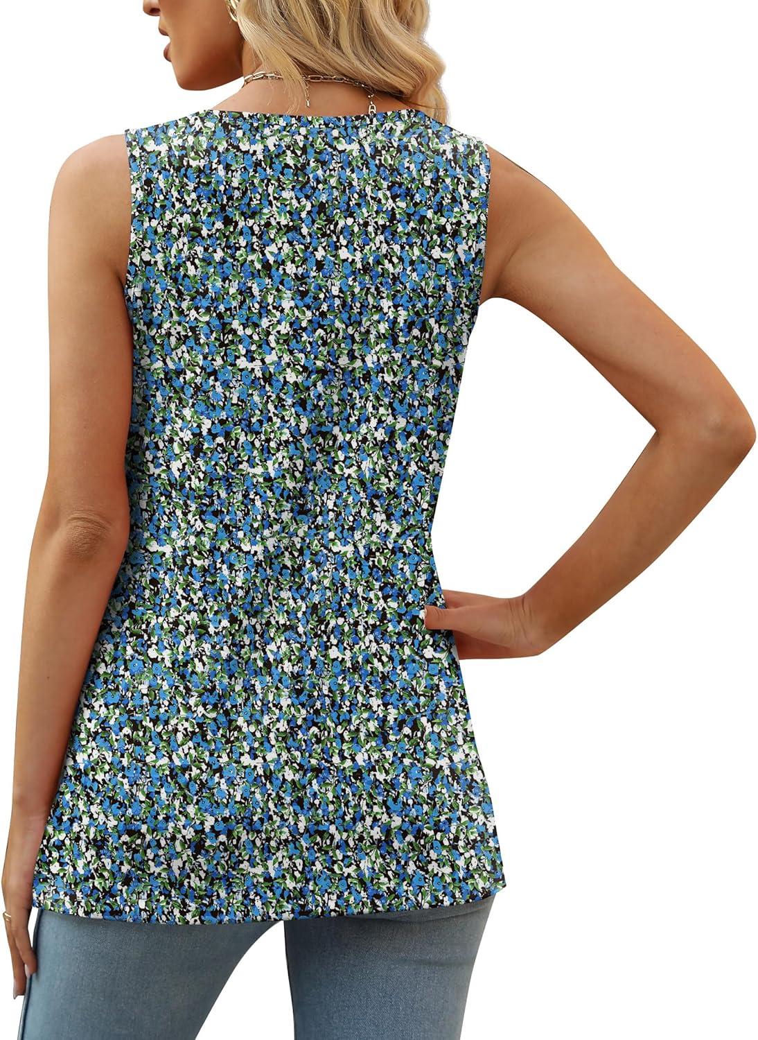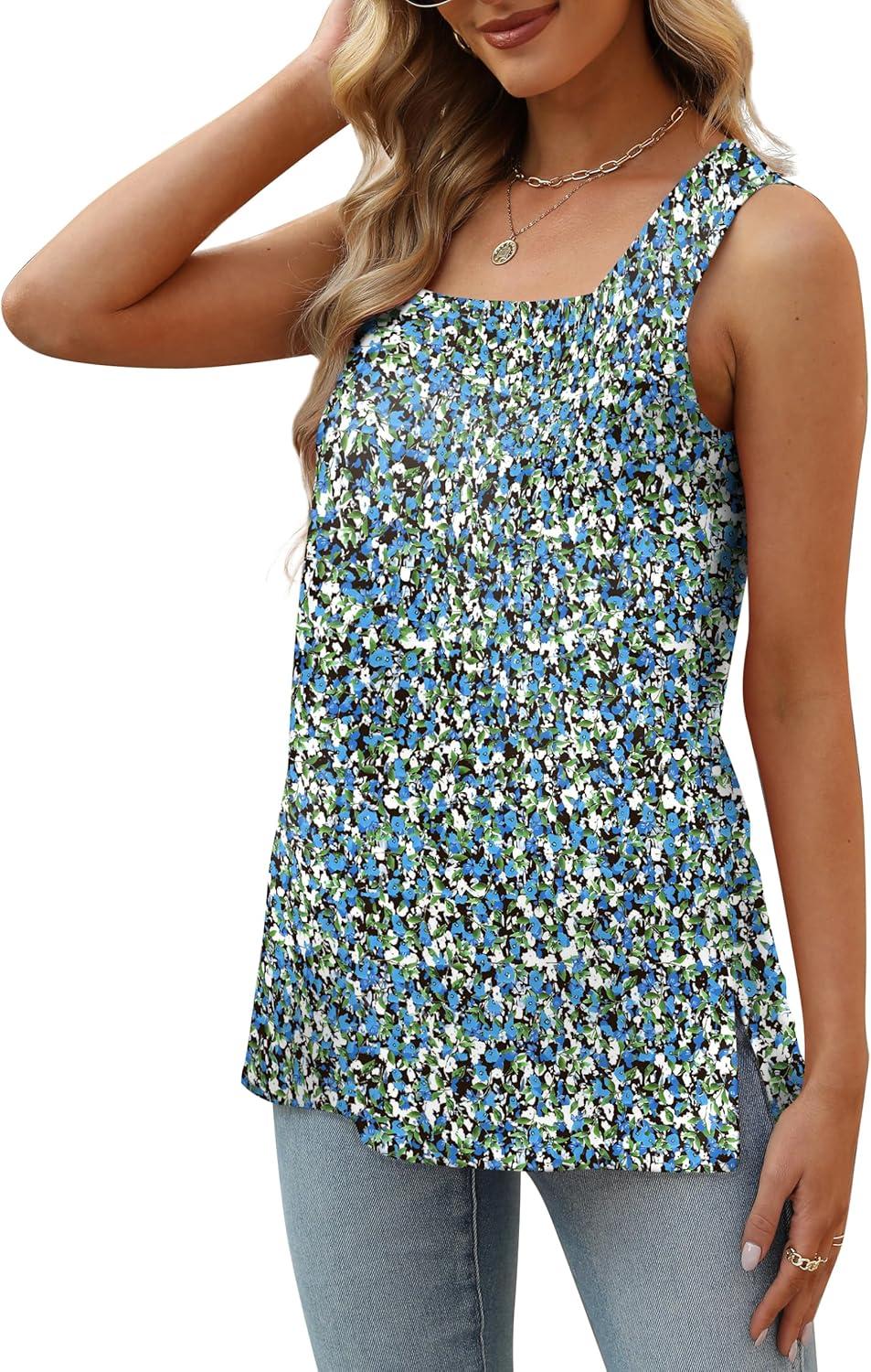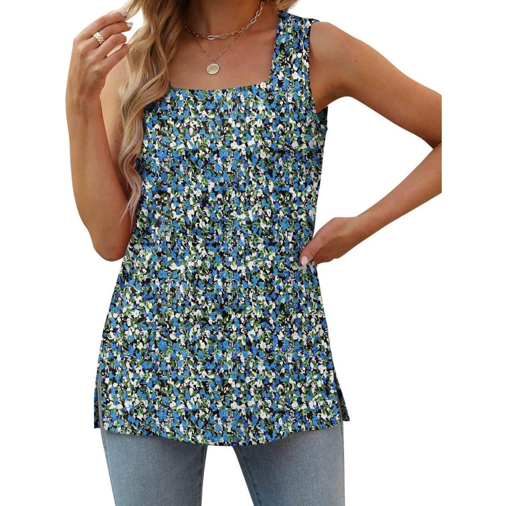 XIEERDUO Summer Tank Tops for Women Square Neck Loose Fit Casual Fashion Flowy Sleeveless(Floral Blue)
