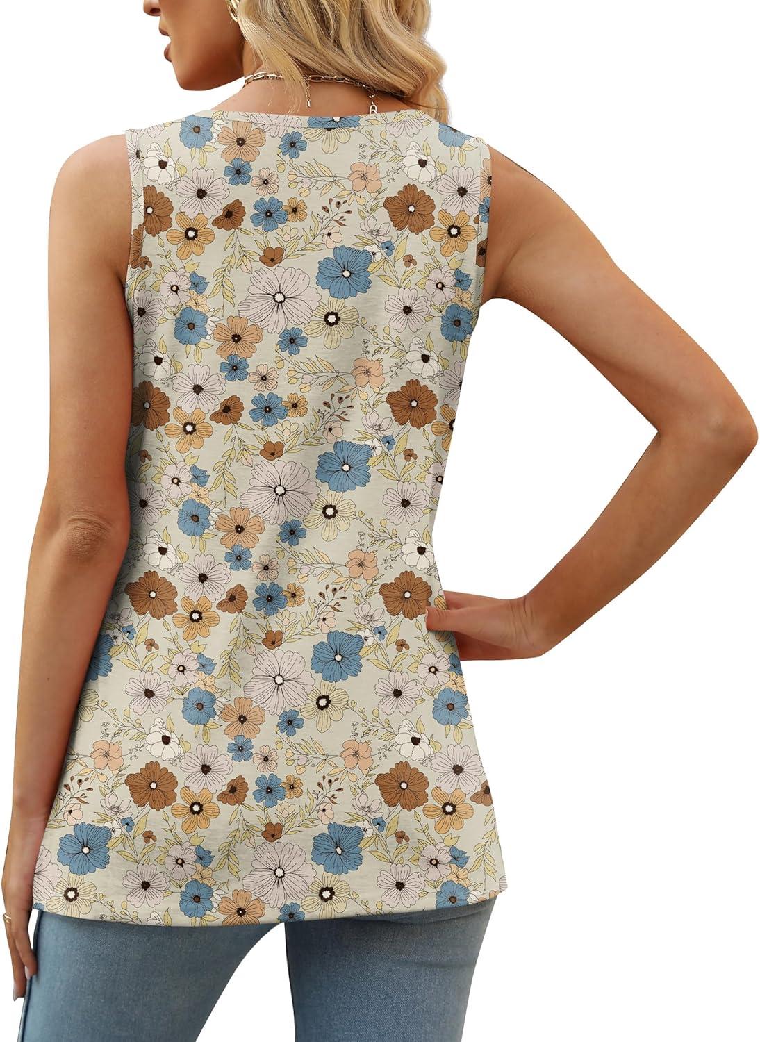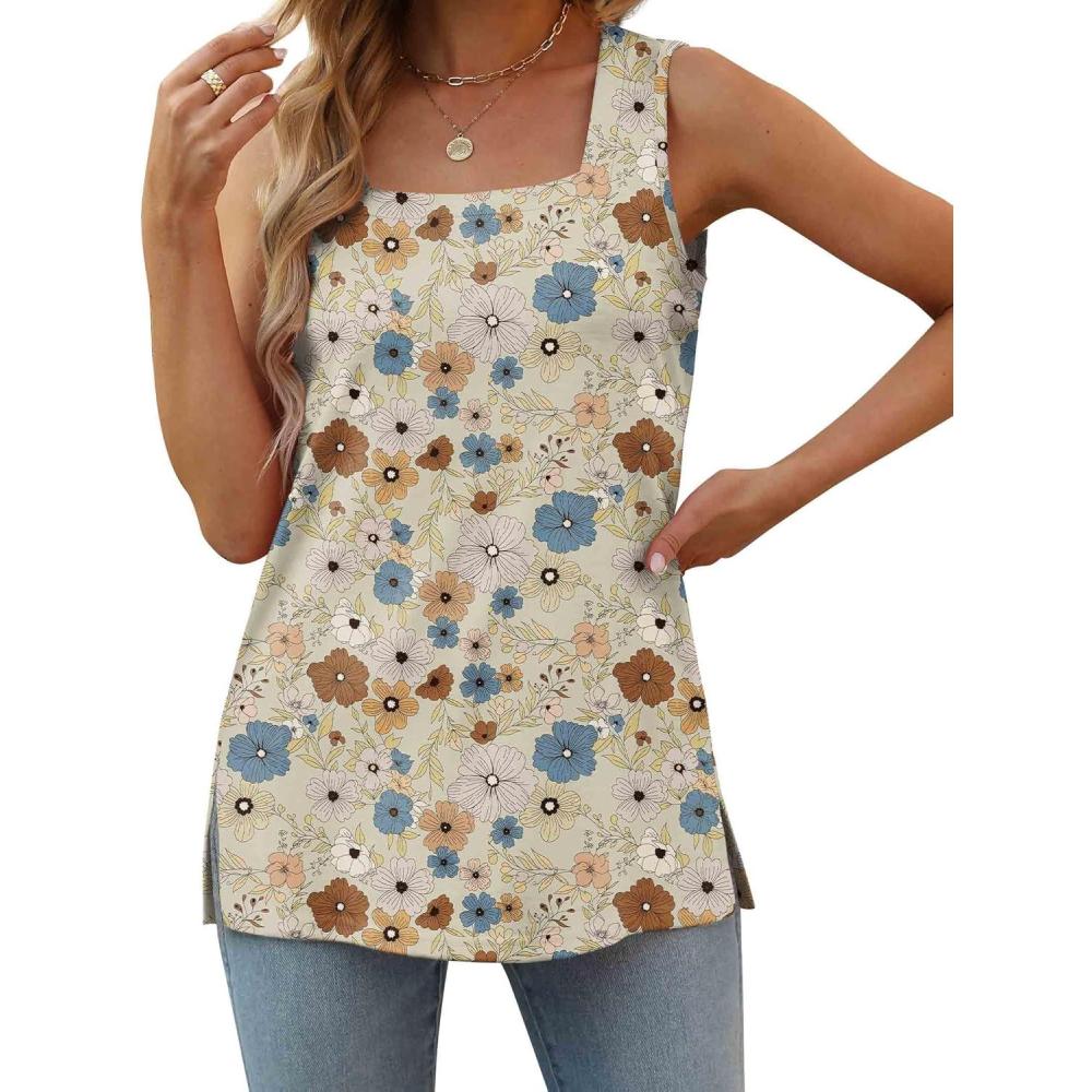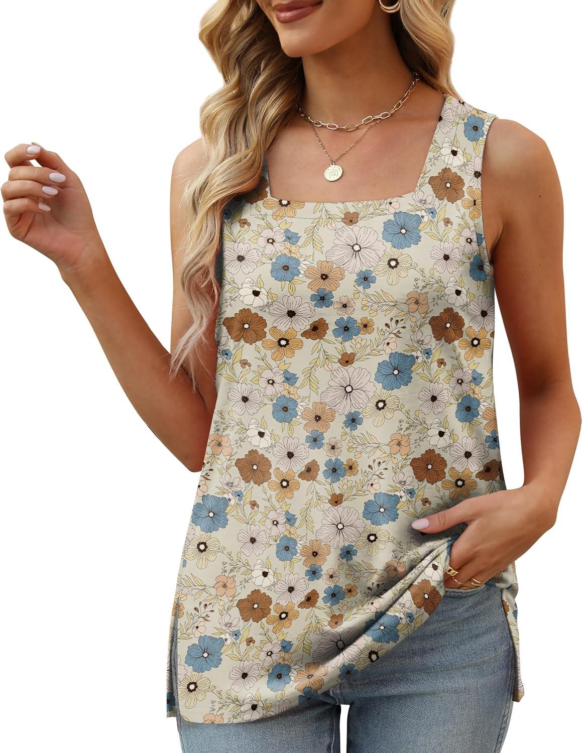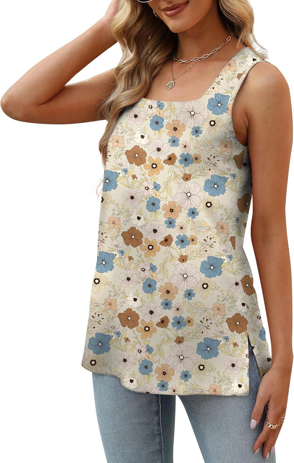 XIEERDUO Summer Tank Tops for Women Square Neck Loose Fit Casual Fashion Flowy Sleeveless(Floral)