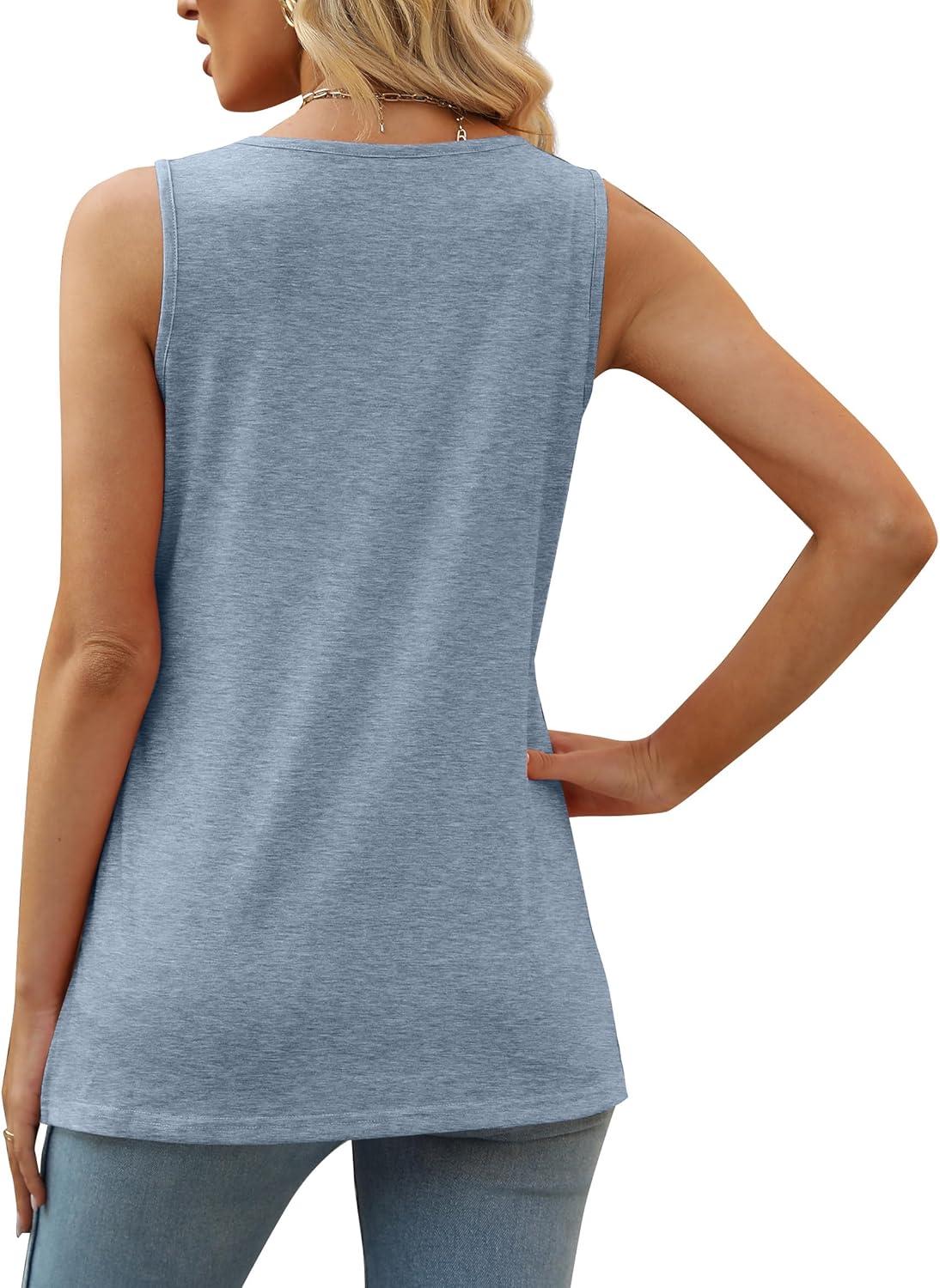 XIEERDUO Summer Tank Tops for Women Square Neck Loose Fit Casual Fashion Flowy Sleeveless(Grey Blue)