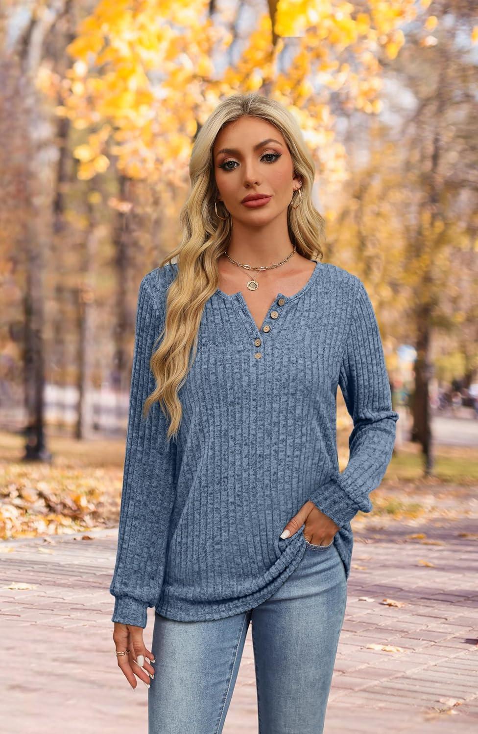 XIEERDUO Sweater for Women Winter Clothing Long Sleeve Shirts Fall Fashion Must Haves Comfiest Airport Outfits Trendy(Blue)