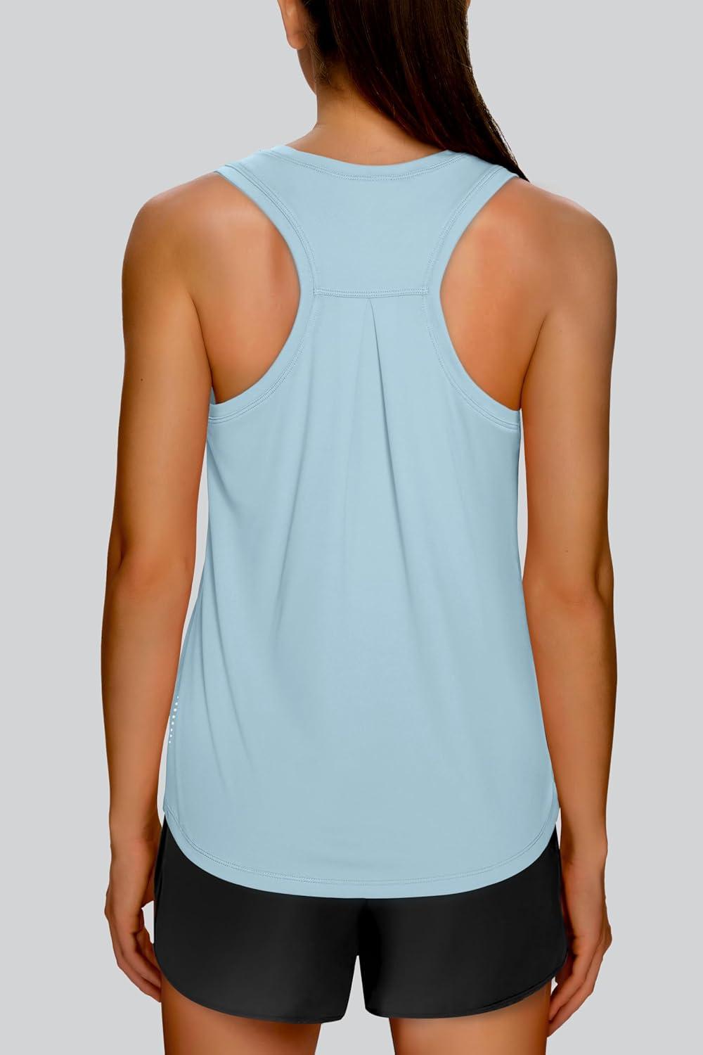 XIEERDUO Tank Top for Women Racerback Sleeveless Workout Tops Loose Fit Yoga Running Gym Shirts for Women(Blue)