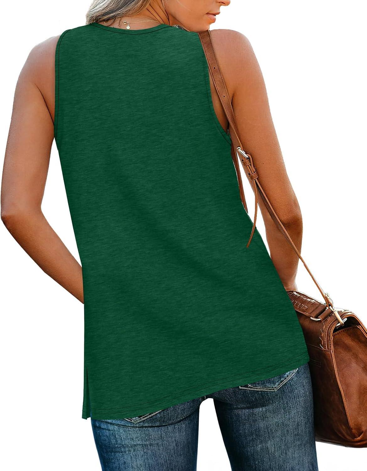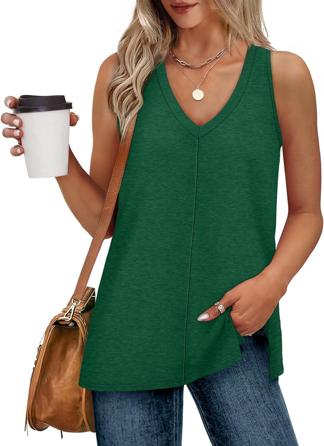 XIEERDUO Tank Tops for Women V Neck Summer Outfits Side Slit Sleeveless Shirts Loose Fit 2025 Fashion(08 Dark Green)