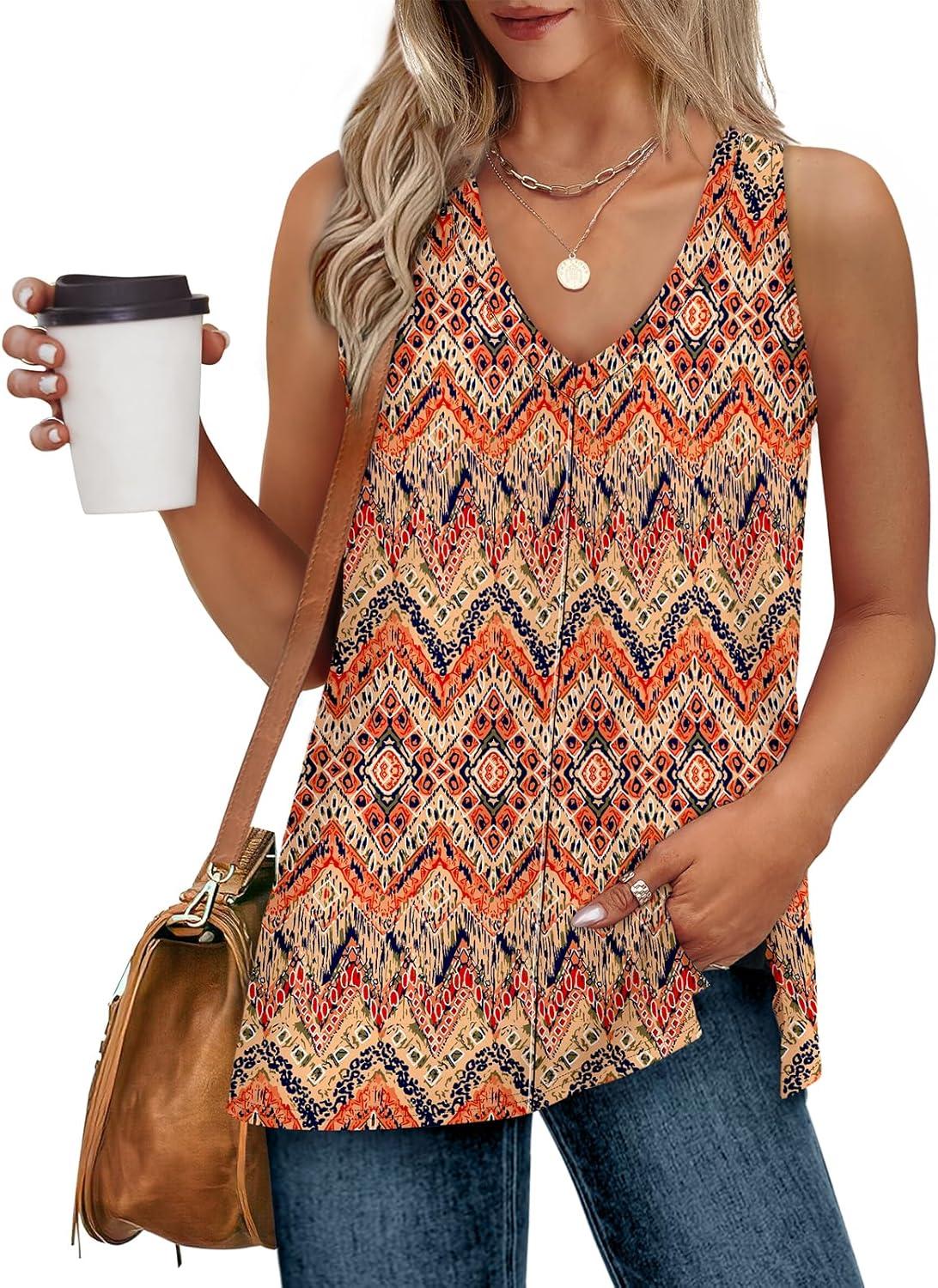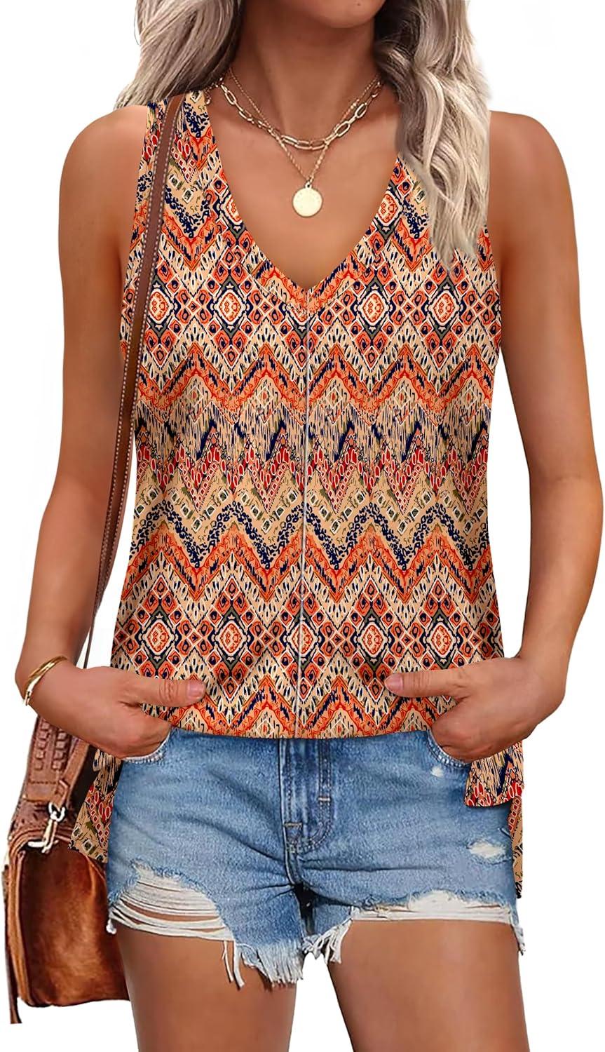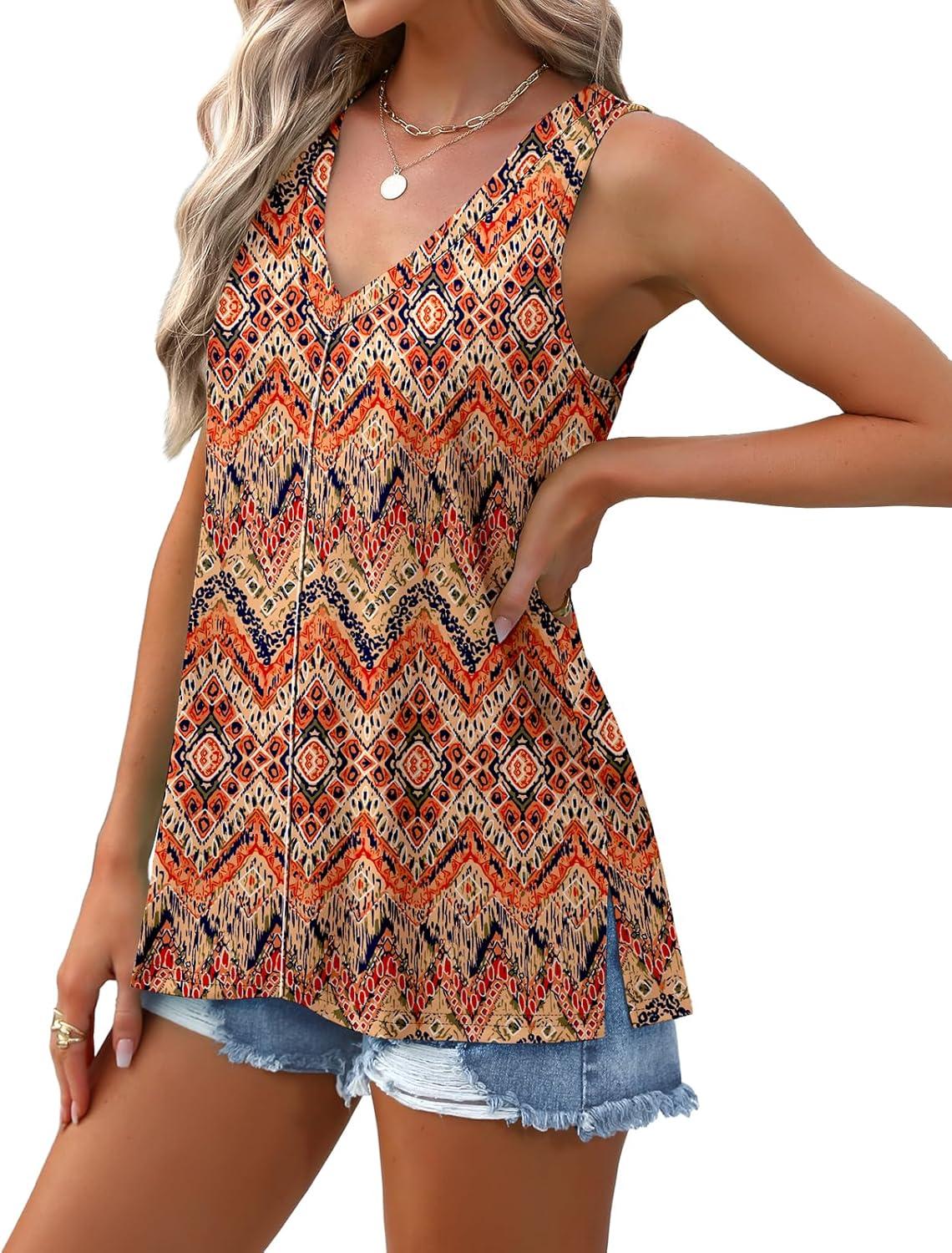 XIEERDUO Tank Tops for Women V Neck Summer Outfits Side Slit Sleeveless Shirts Loose Fit 2025 Fashion(09 Floral 01)