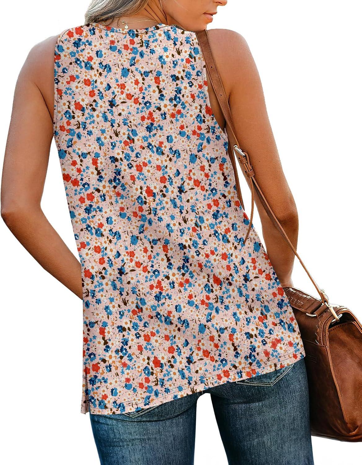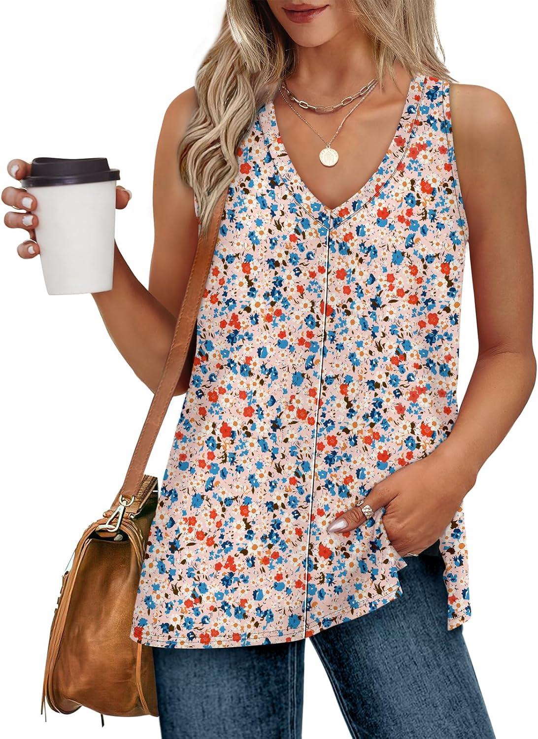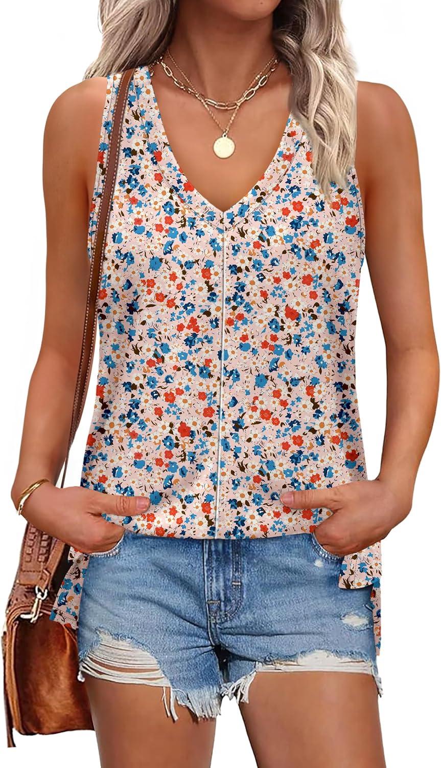 XIEERDUO Tank Tops for Women V Neck Summer Outfits Side Slit Sleeveless Shirts Loose Fit 2025 Fashion(12 Floral 04)