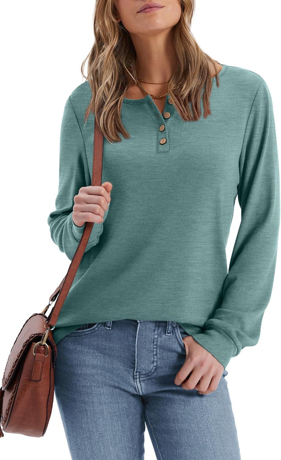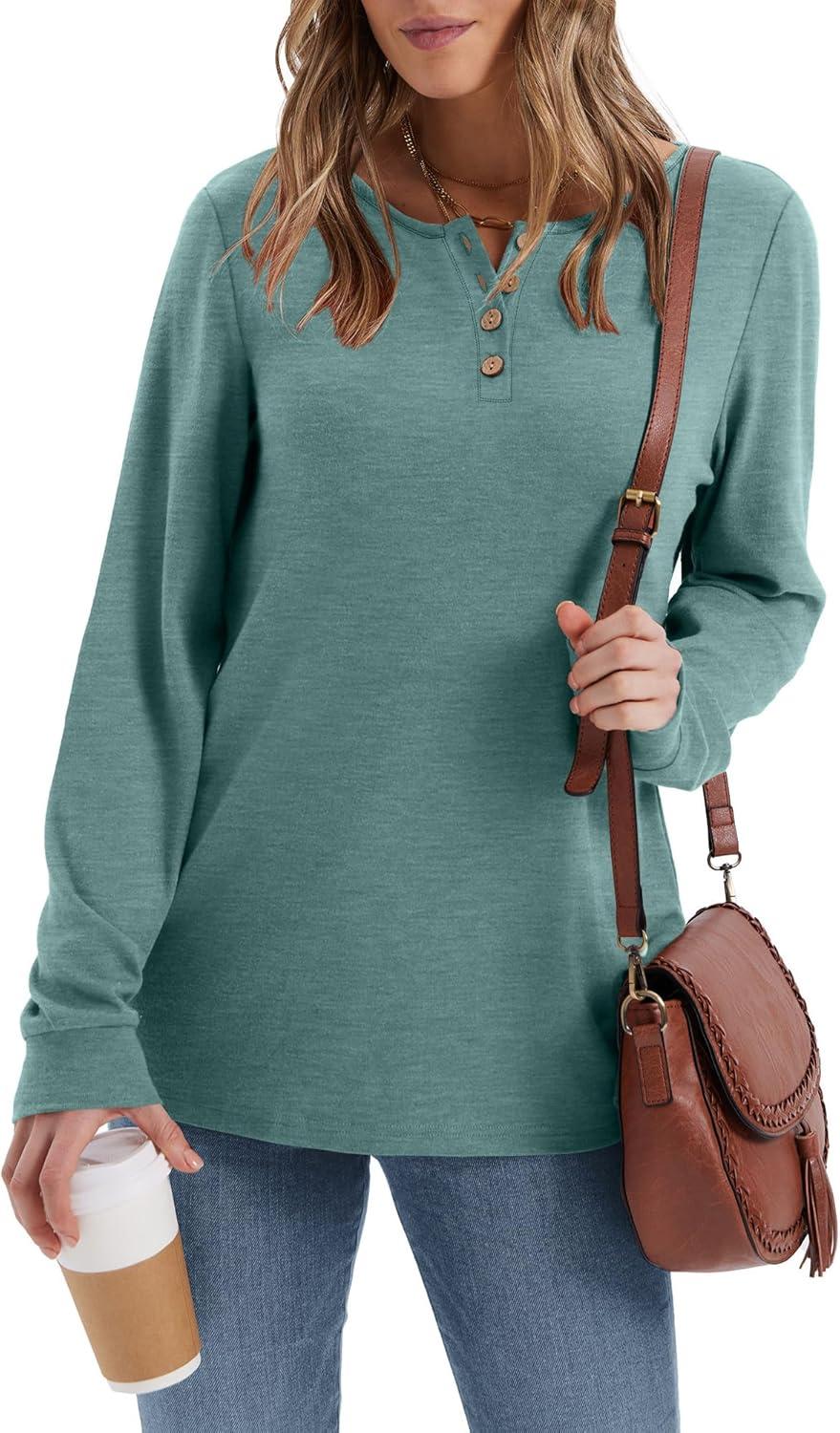 XIEERDUO Thermal Long Sleeve Shirts for Women Henley Fall Womens Tops Dressy Casual Winter Clothes S-3Xl(Greyblue)