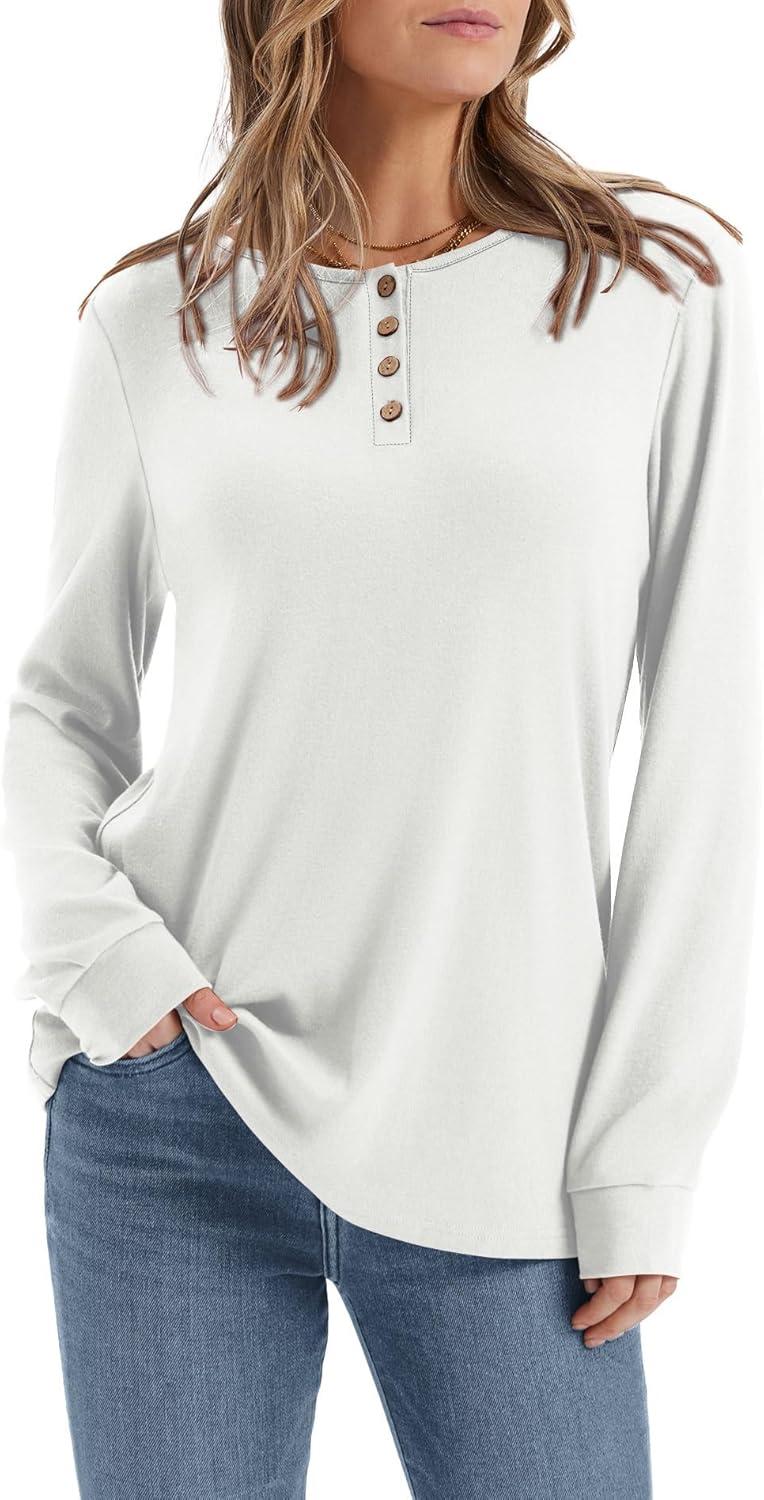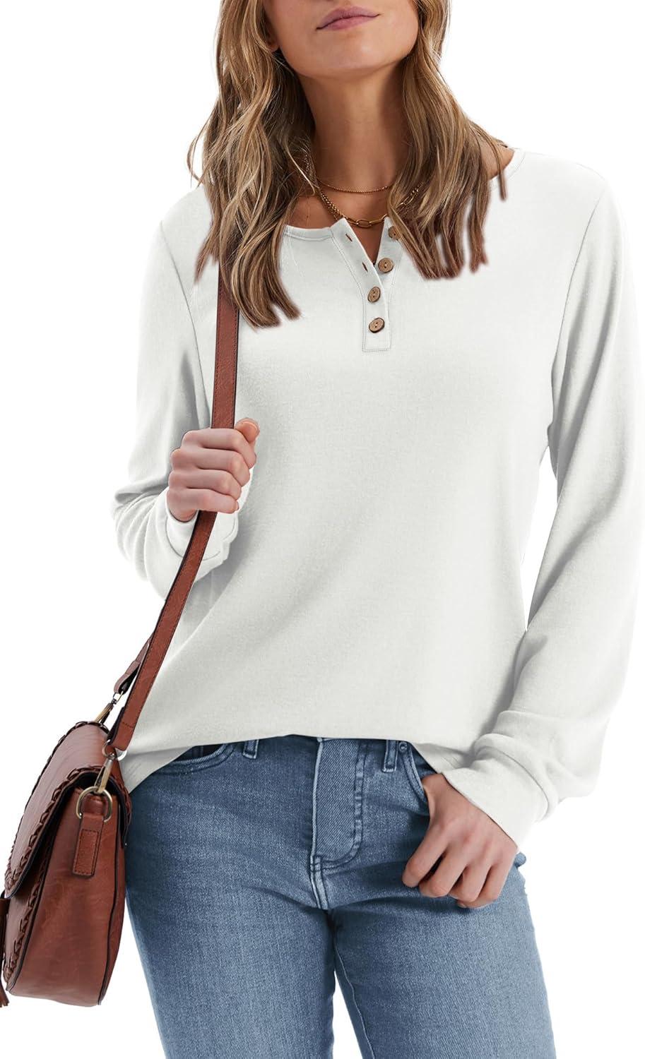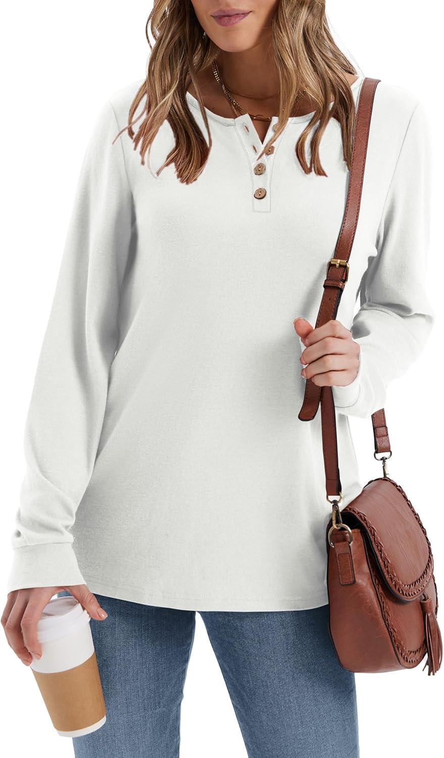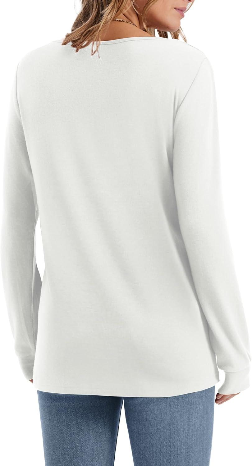 XIEERDUO Thermal Long Sleeve Shirts for Women Henley Fall Womens Tops Dressy Casual Winter Clothes S-3Xl(White)