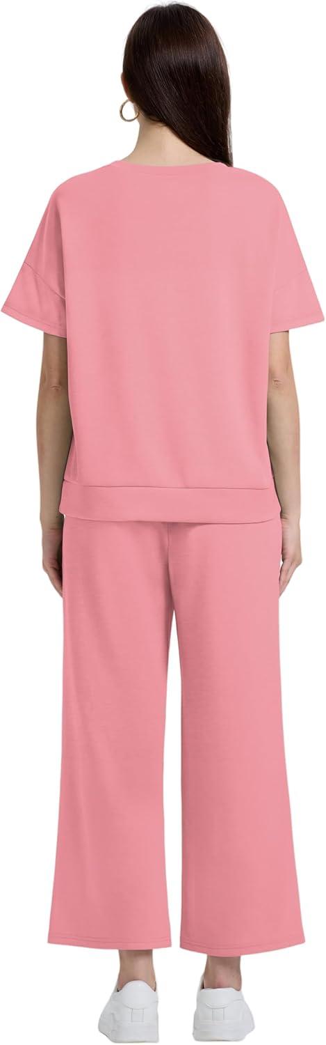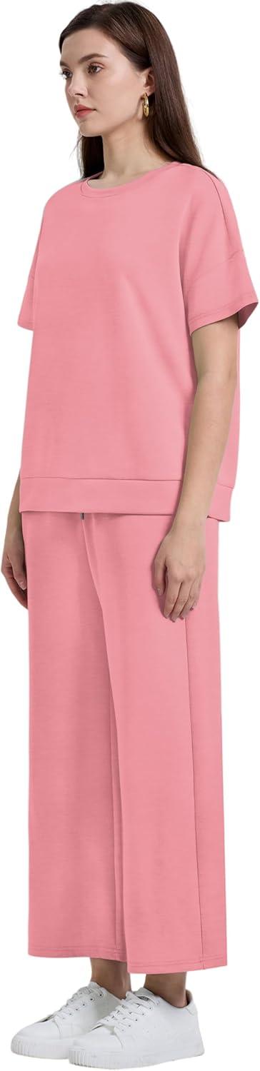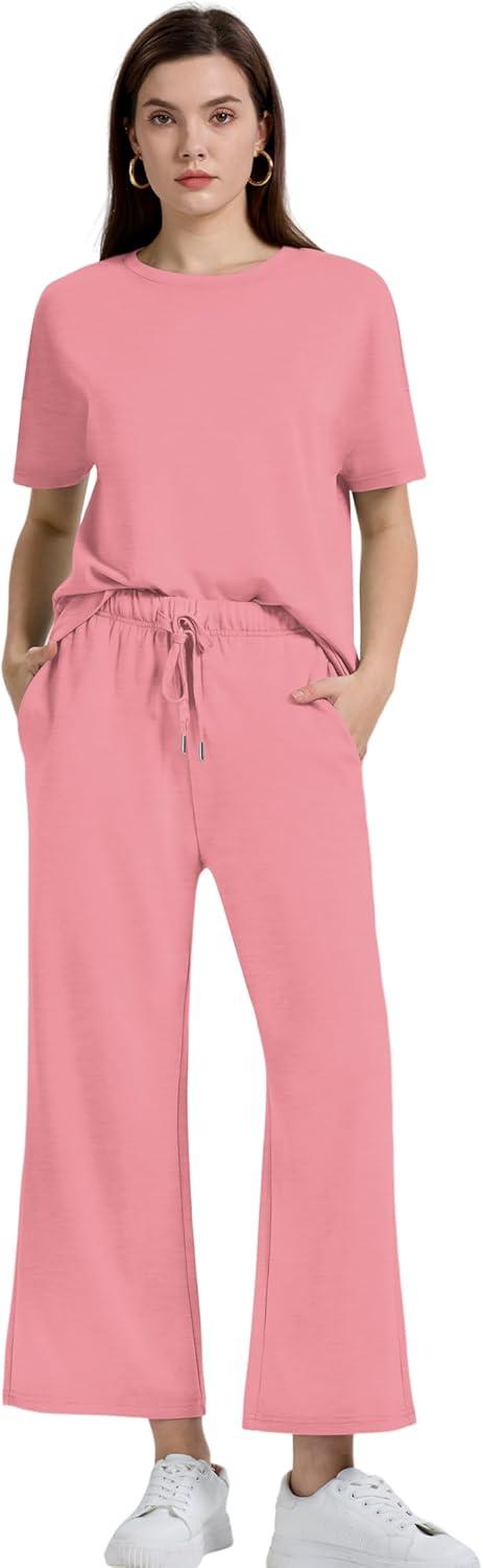 XIEERDUO Women’s 2 Piece Outfits For Women Loose Pajamas Pullover Tops And Wide Leg Pants Lounge Sets Tracksuit Sweatsuit(06-lightcoral)
