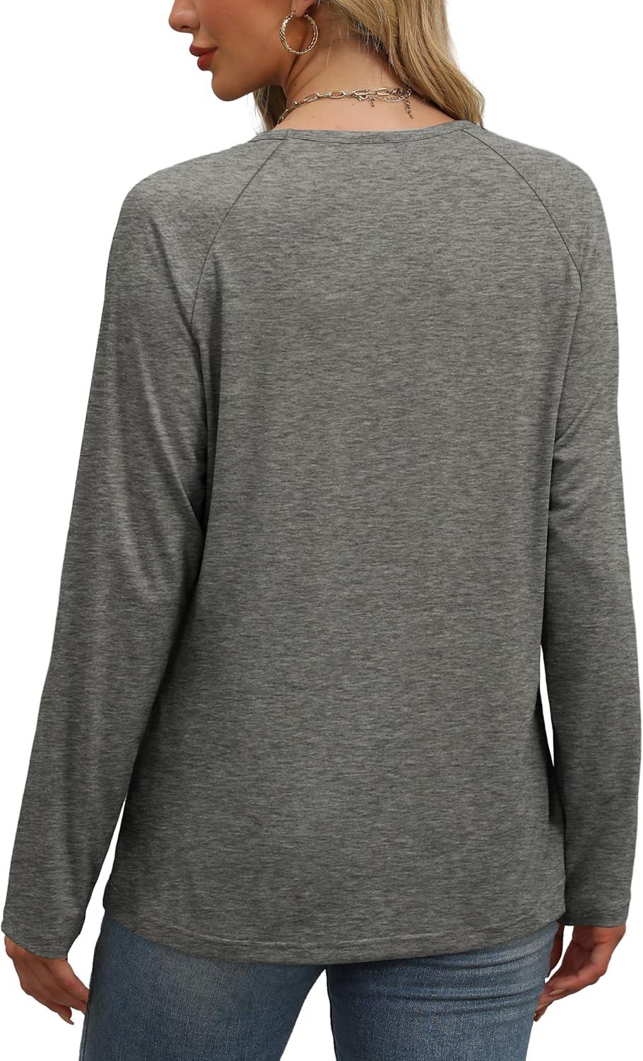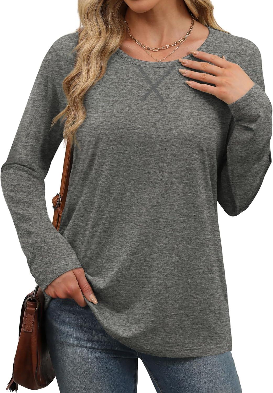 XIEERDUO Womens Long Sleeve Shirts Casual Fall Fashion Crewneck Tops Loose Fit Lightweight(Gray)