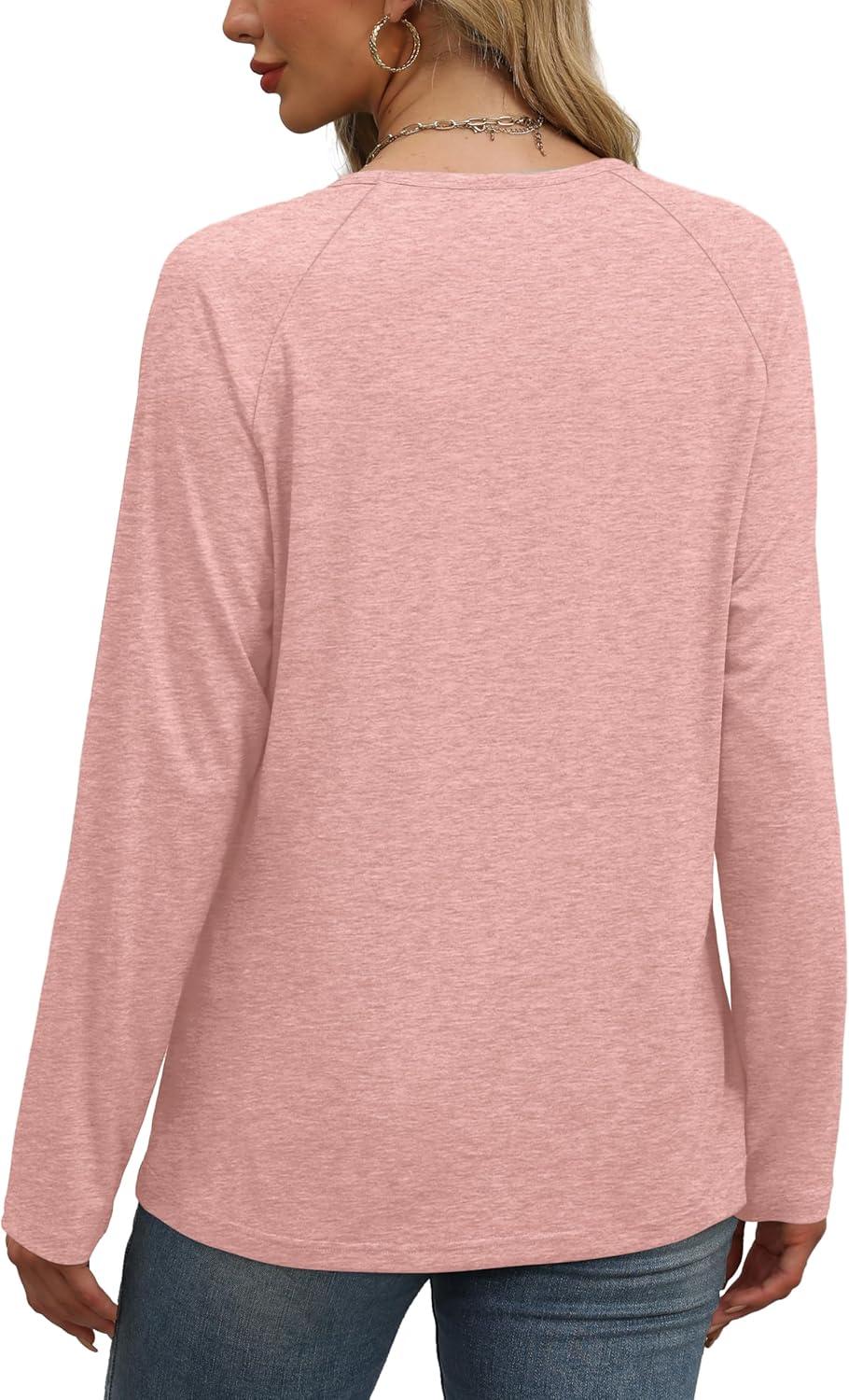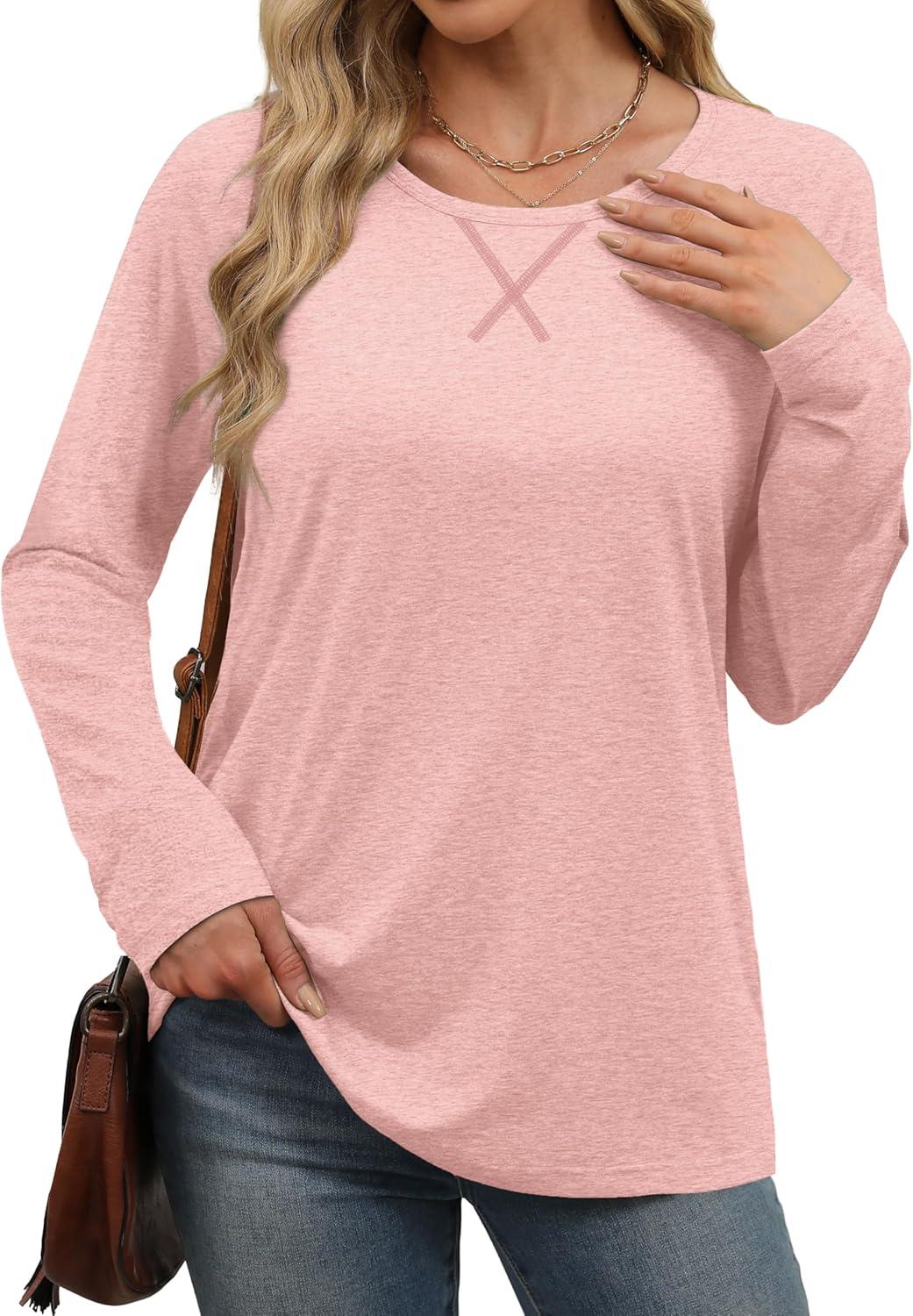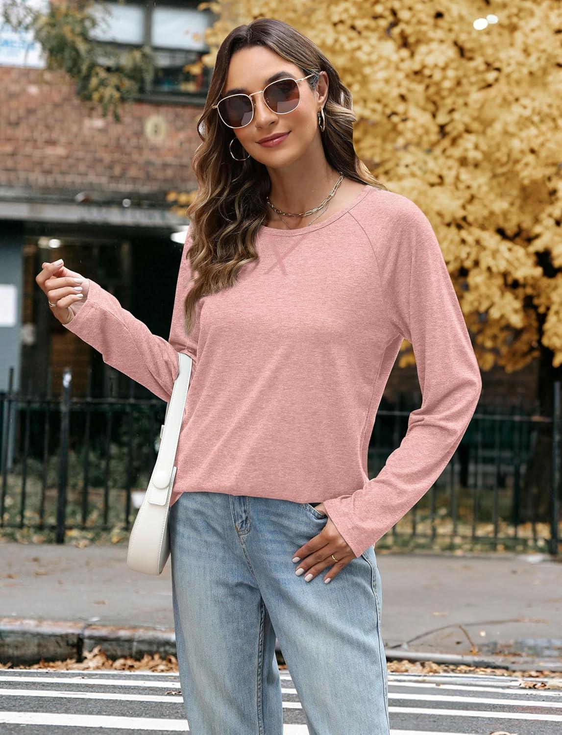 XIEERDUO Womens Long Sleeve Shirts Casual Fall Fashion Crewneck Tops Loose Fit Lightweight(Pink)
