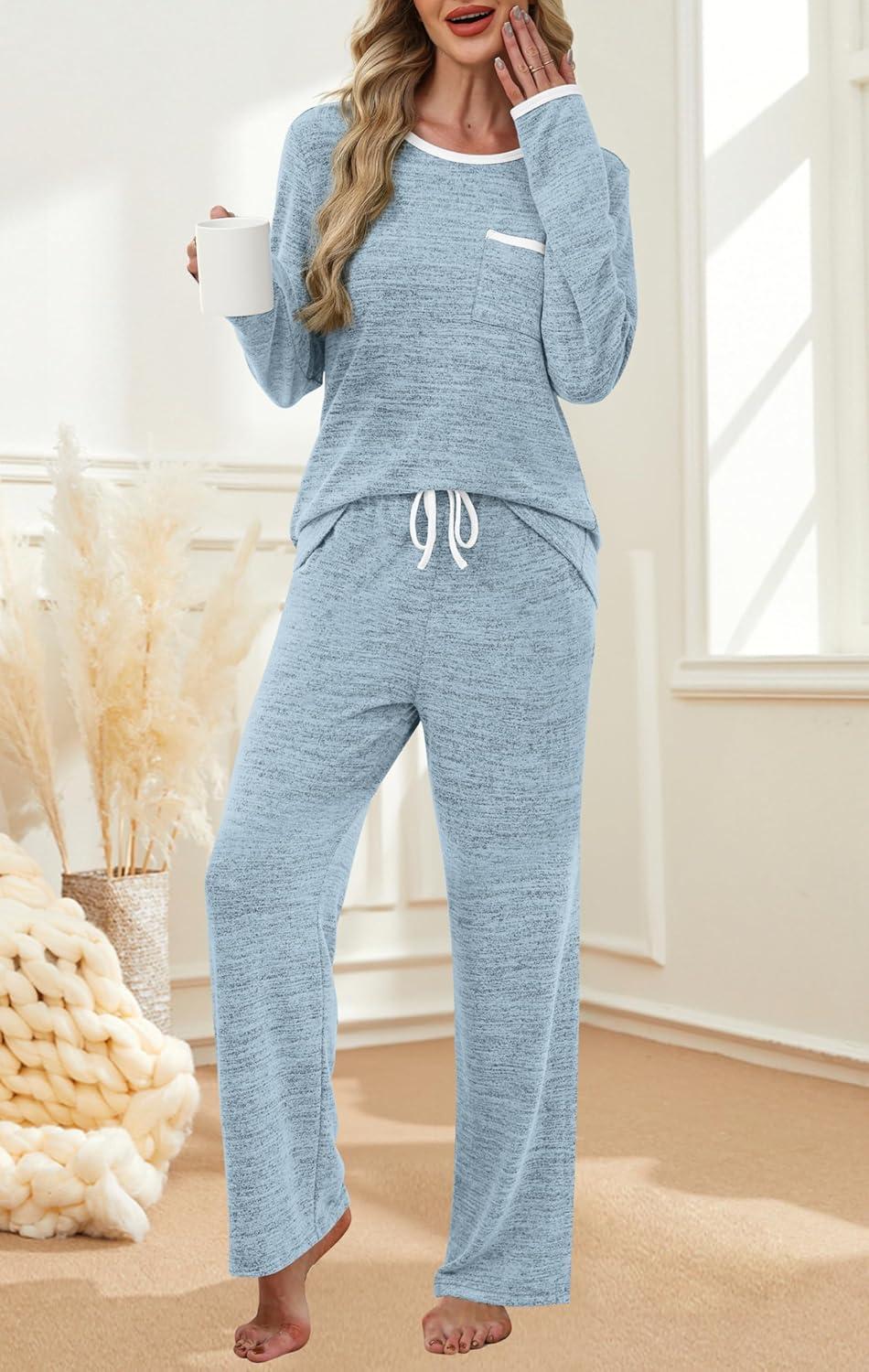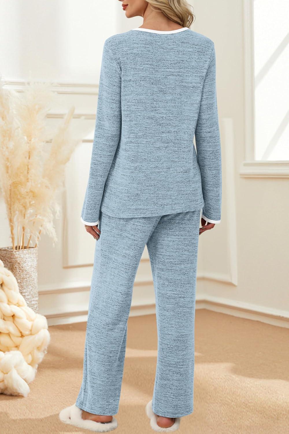 XIEERDUO Womens Pajama Sets Long Sleeve Sleepwear Soft Pjs Lounge Chest Pocket Two Piece Sets For Women(Blue)