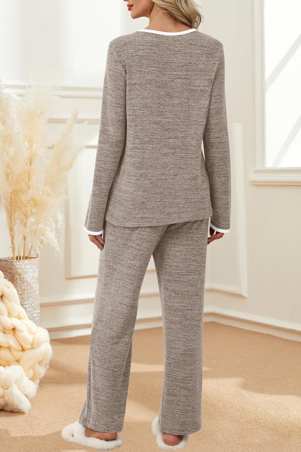 XIEERDUO Womens Pajama Sets Long Sleeve Sleepwear Soft Pjs Lounge Chest Pocket Two Piece Sets For Women(Coffee)