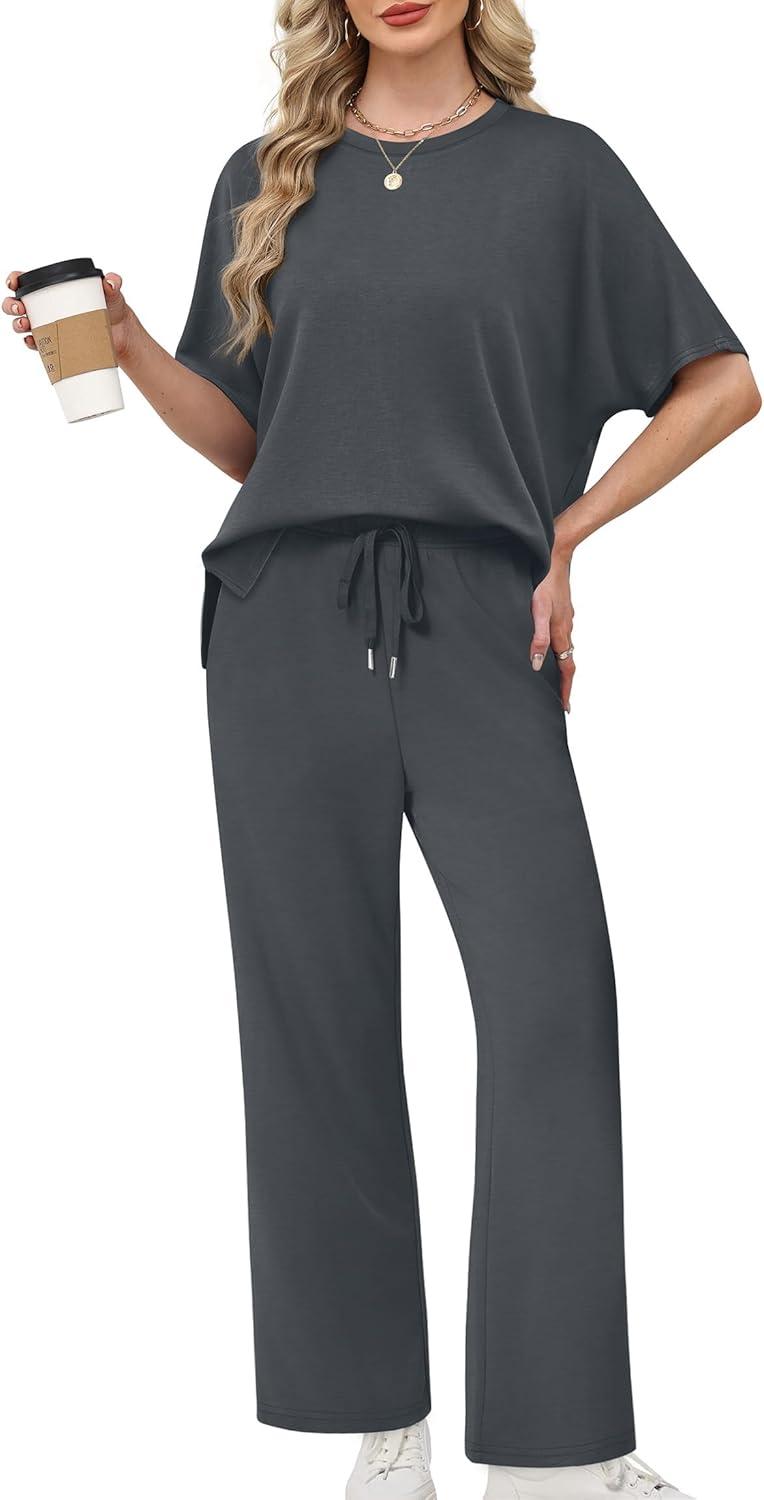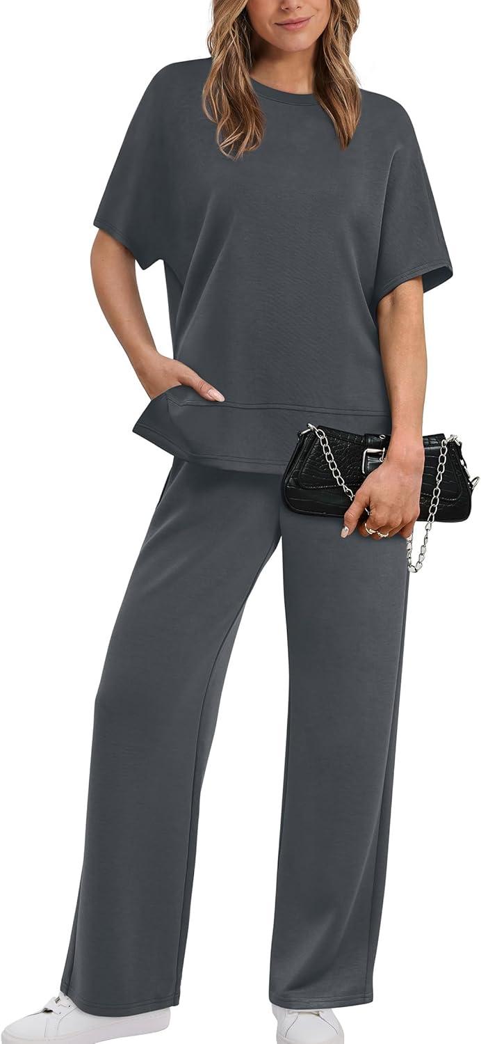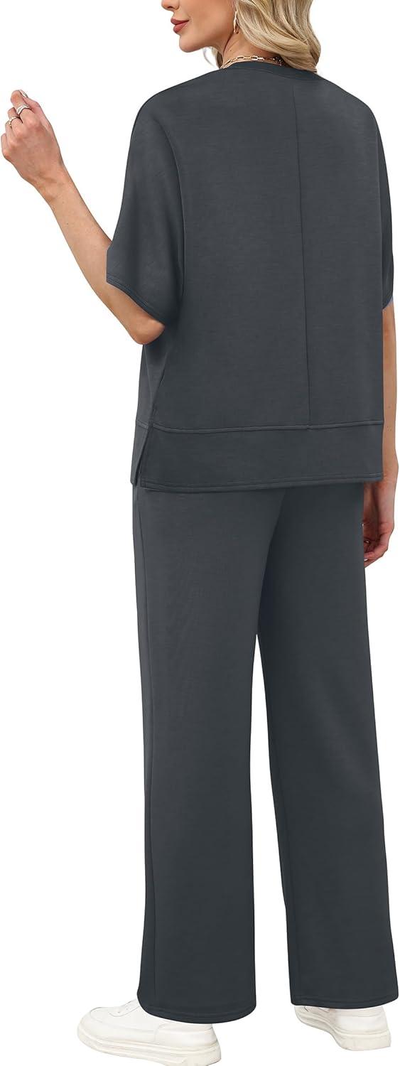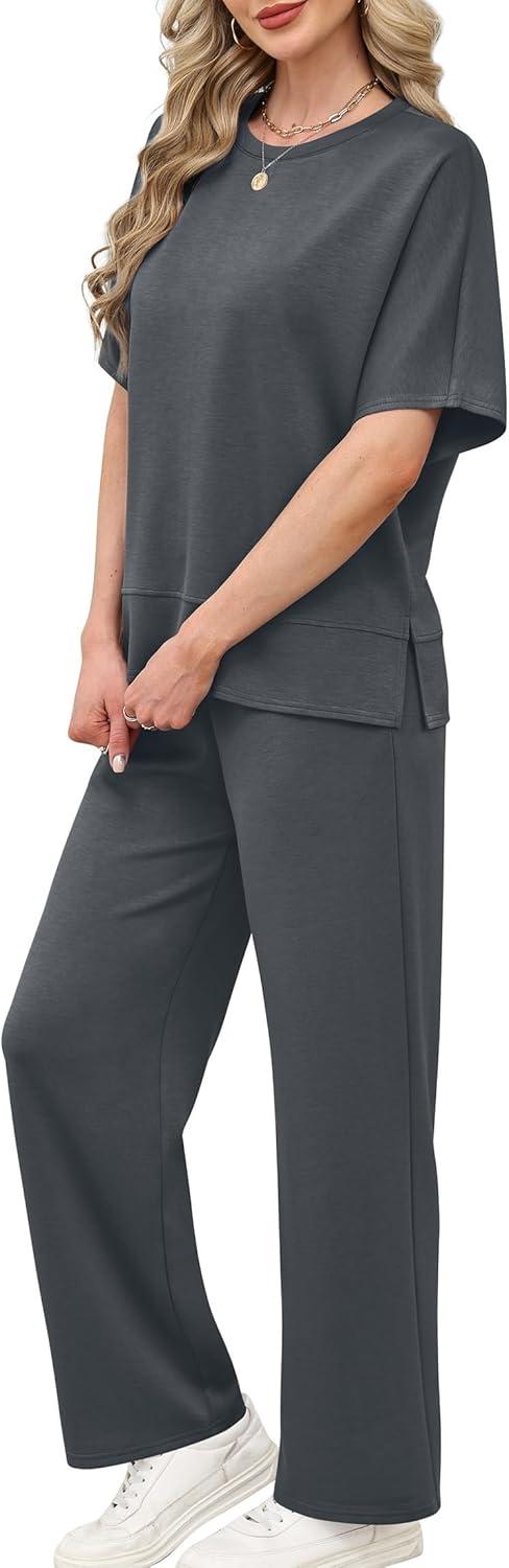 XIEERDUO Women’s Side Slit Lounge Sets 2 Piece Travel Outfits Airport Tracksuit Oversized Wide Leg Loungewear S-3XL(Dark Grey)