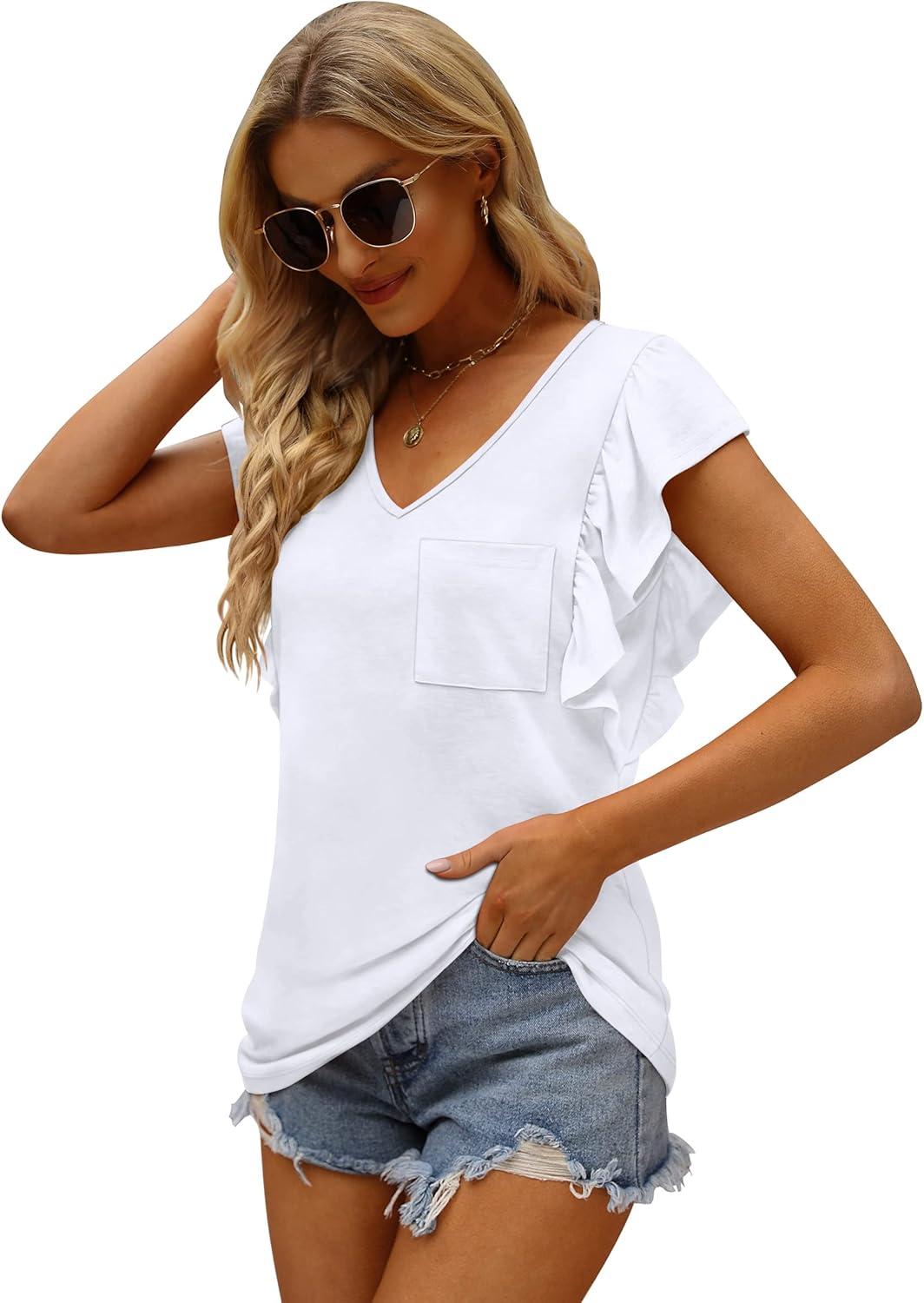 XIEERDUO Women’s Summer Tank Tops Casual Sleeveless Tops Loose Fit Ruffle Shirts(102-white)