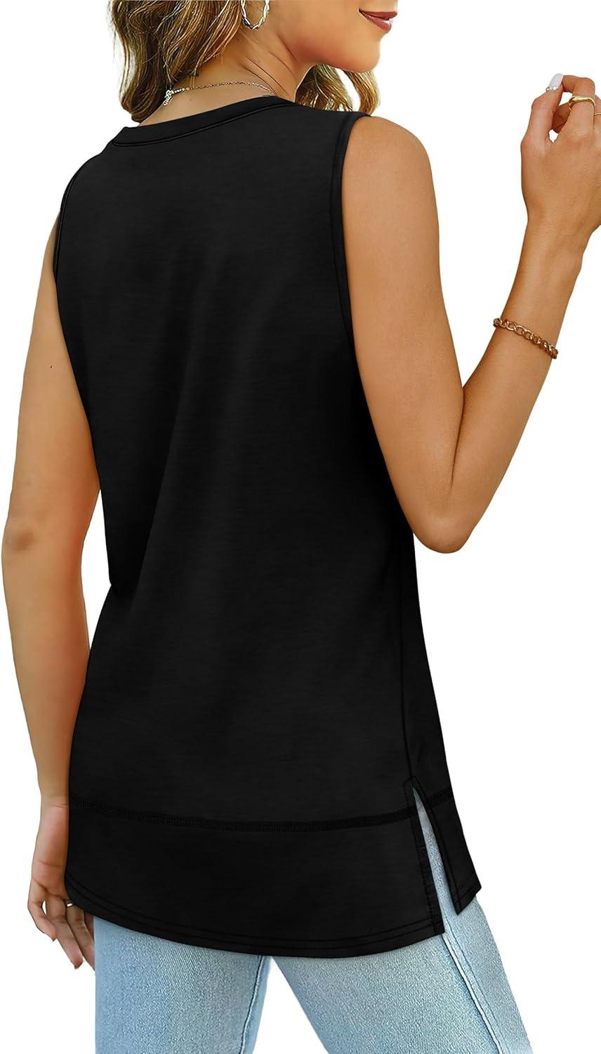 XIEERDUO Womens Summer Tank Tops Sleeveless Round Neck Casual Side Hem Tops Loose Fit(A Black)
