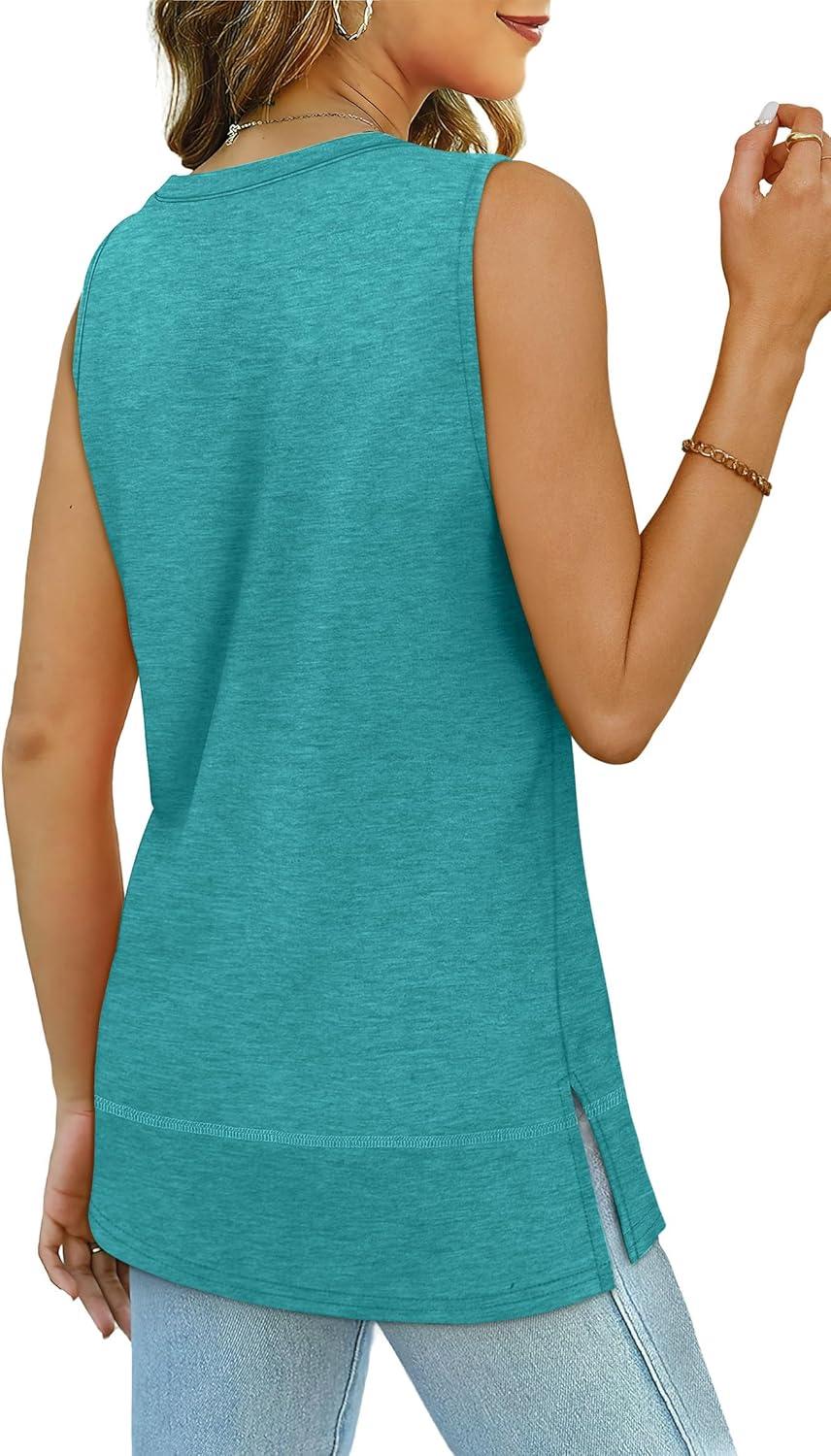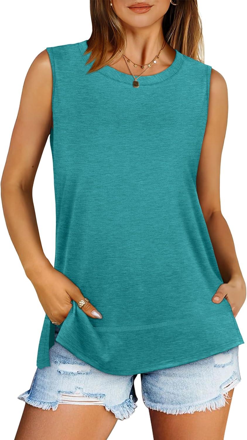 XIEERDUO Womens Summer Tank Tops Sleeveless Round Neck Casual Side Hem Tops Loose Fit(B Turquoise)