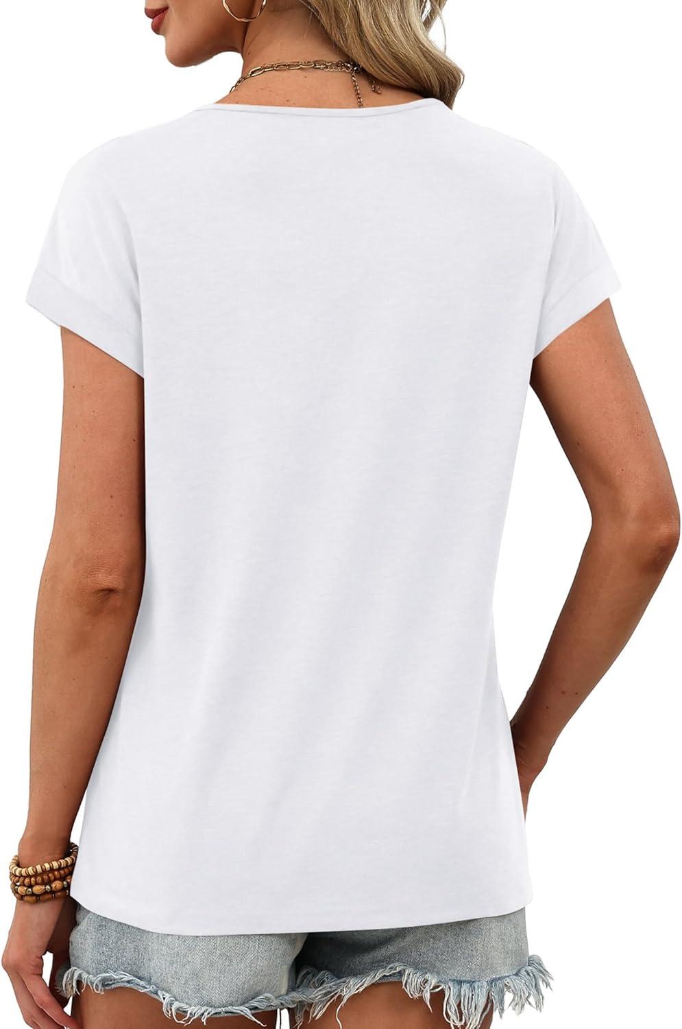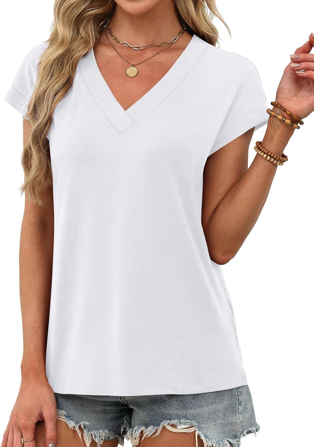 XIEERDUO Womens Summer Tops Short Sleeve Shrits 2026 Trendy V Neck Spring Outfits Beach Vacation Clothes(White)
