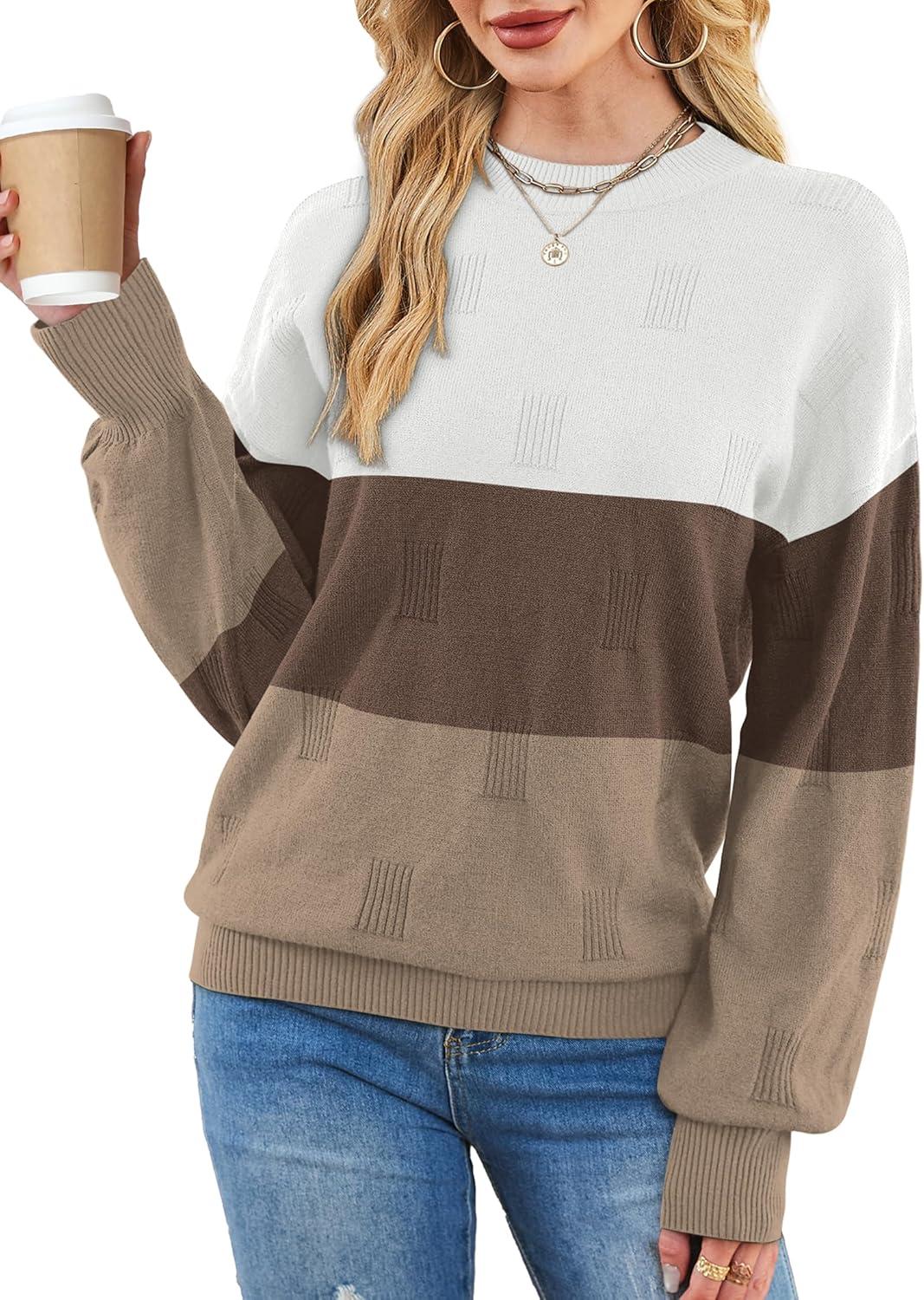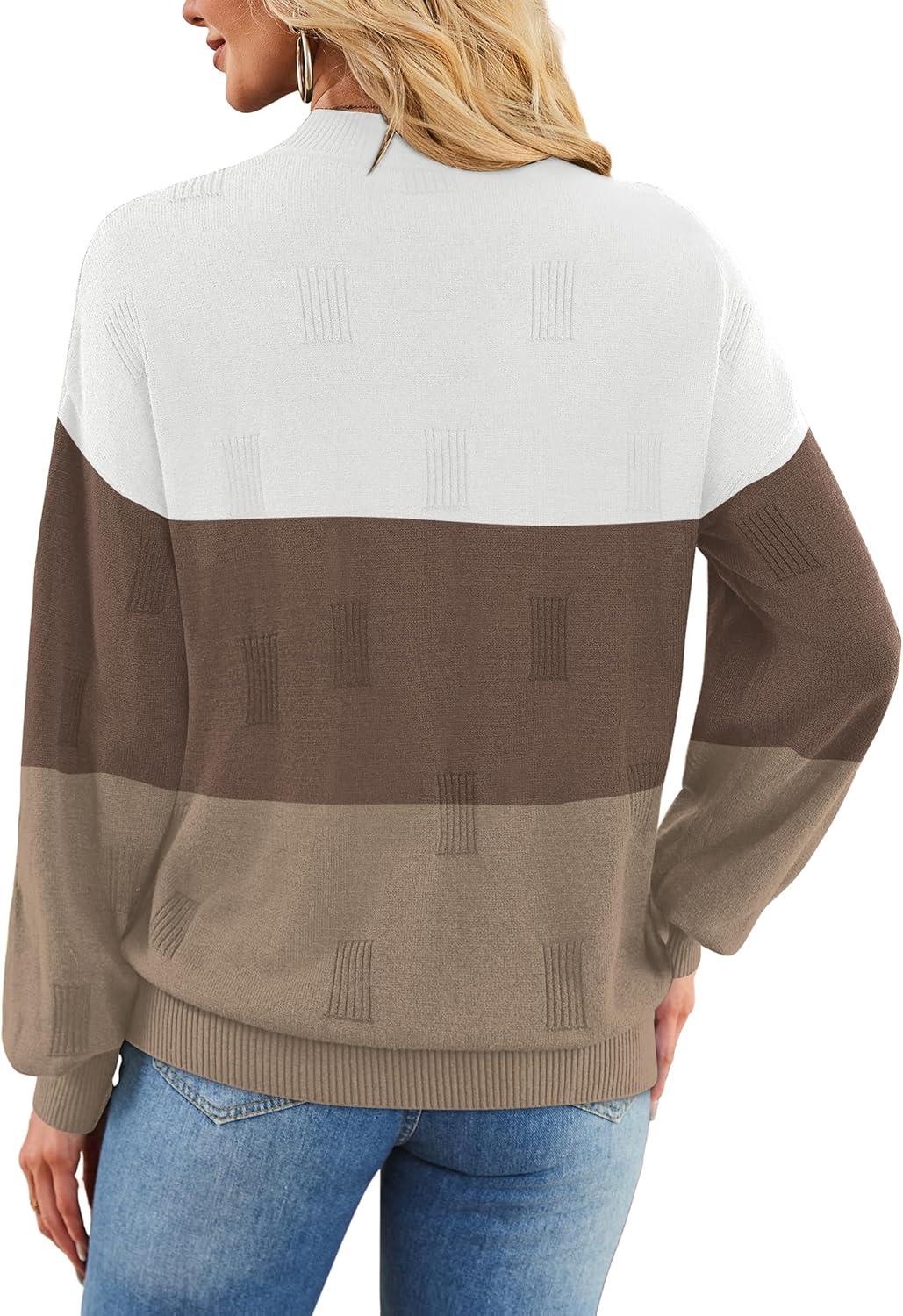 XIEERDUO Womens Sweaters Pullover Knit Sweater Turtleneck Long Sleeve Shirts Fall Fashion 2025(White Brown Khaki)