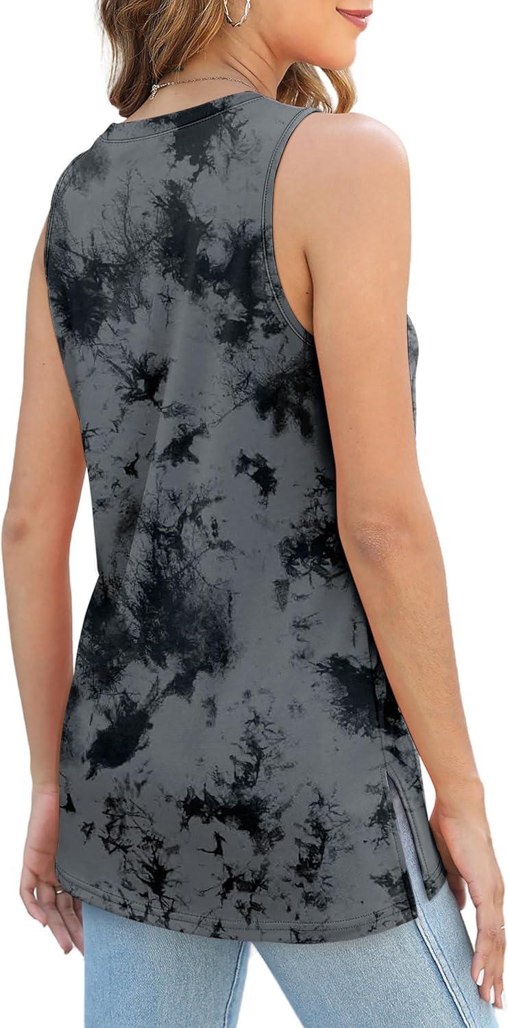 XIEERDUO Womens Tank Tops Crewneck Loose Fit Basic Casual Summer Side Split Sleeveless Shirts(Eb-grey Tie Dye)
