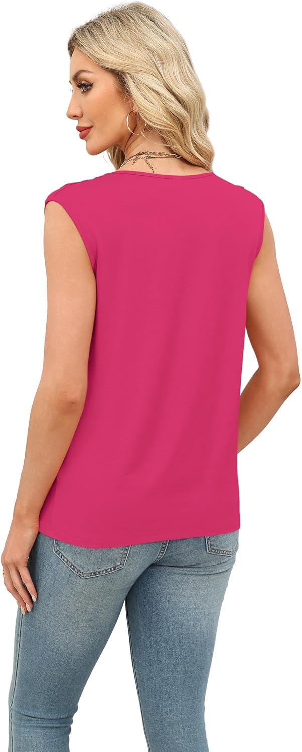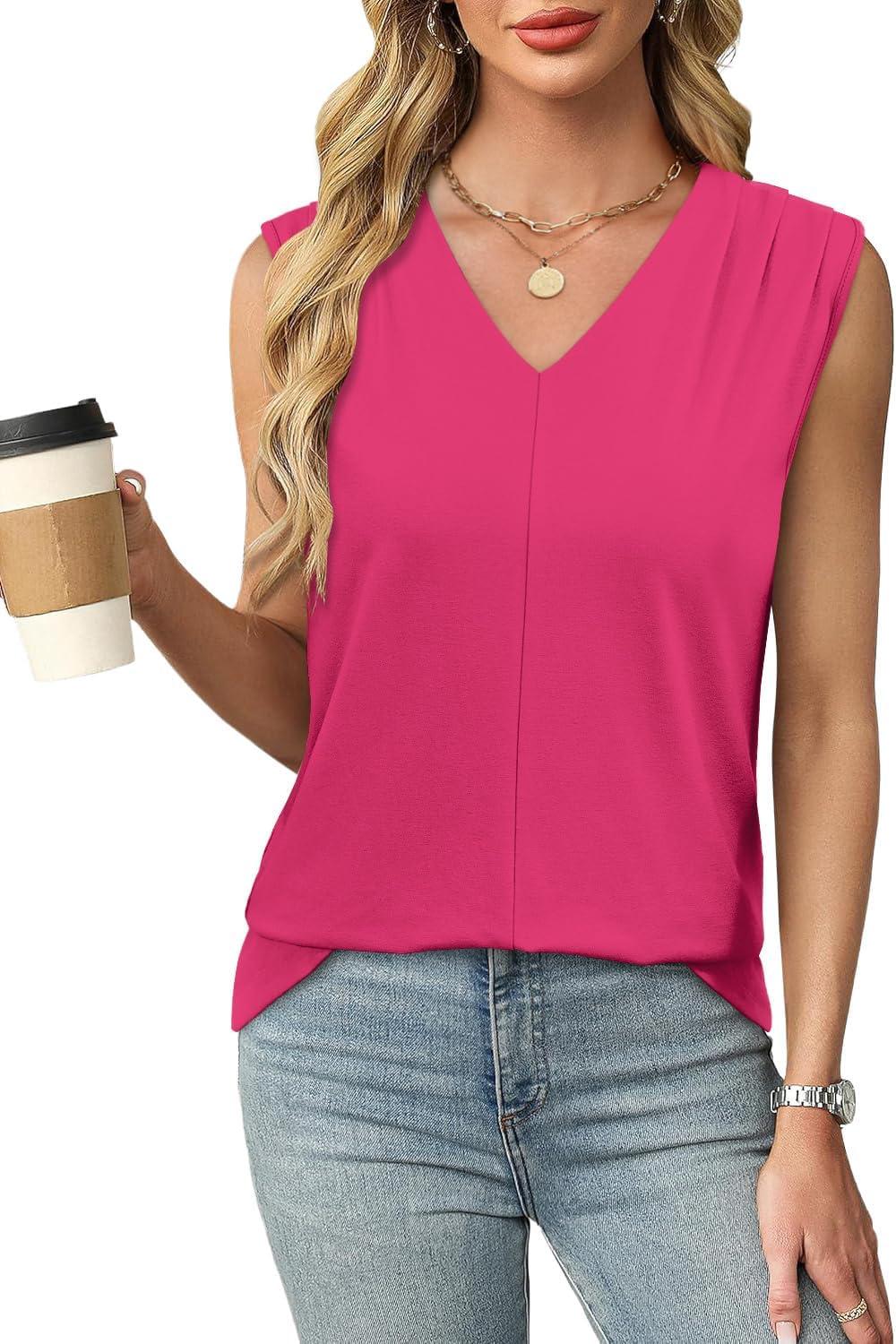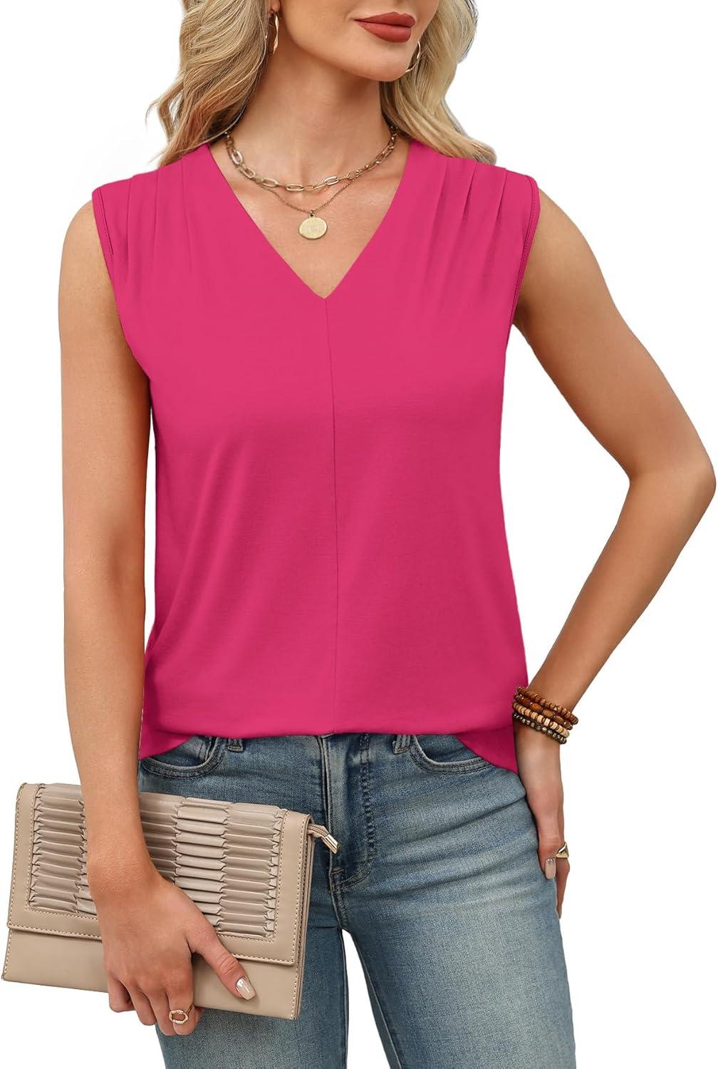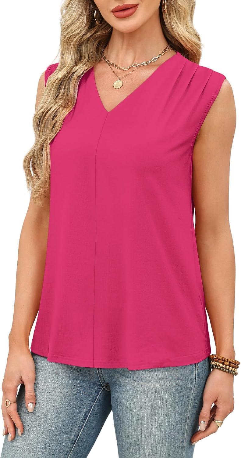 XIEERDUO Womens Tank Tops Loose Fit Casual Fashion Summer Soft Pleated V Neck Sleeveless Blouses(Red)