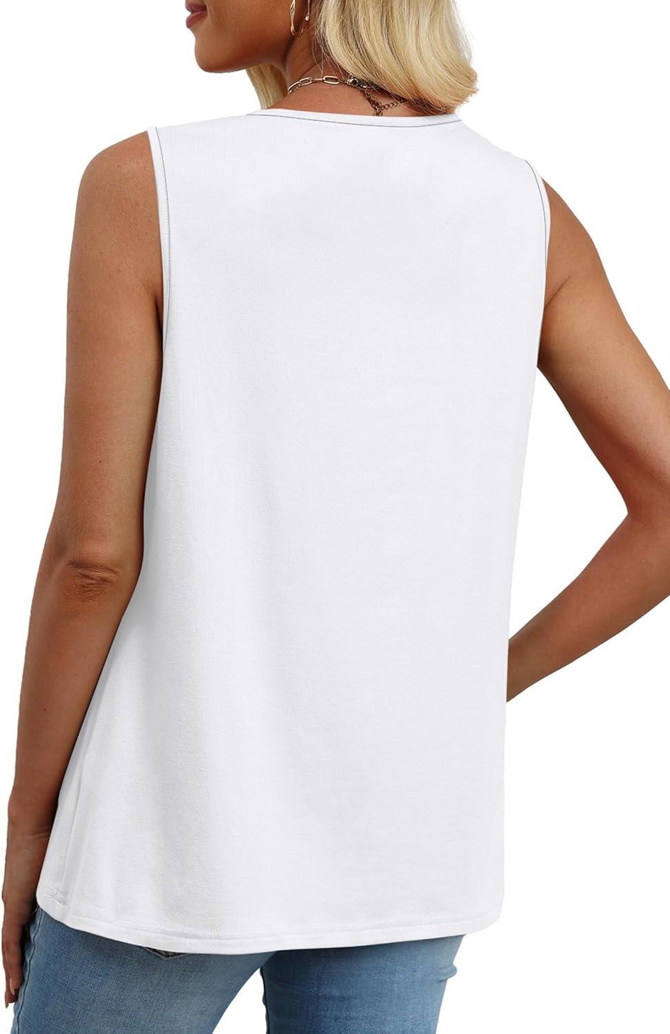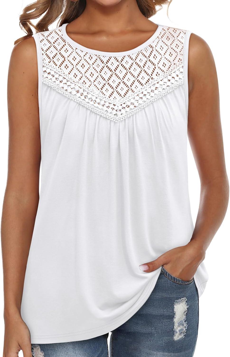 XIEERDUO Womens Tank Tops Sleeveless Lace Crochet Boho Tops Loose Fit Pleated Tunics Crewneck Summer Vacation Outfits Flowy(White)