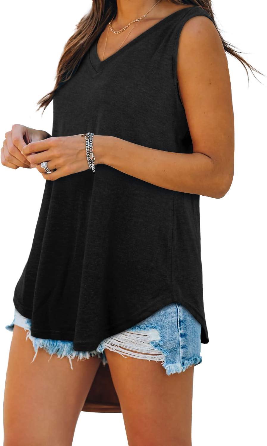 XIEERDUO Womens Tank Tops V Neck Basic Solid Color Casual Flowy Summer Sleeveless(00-black)