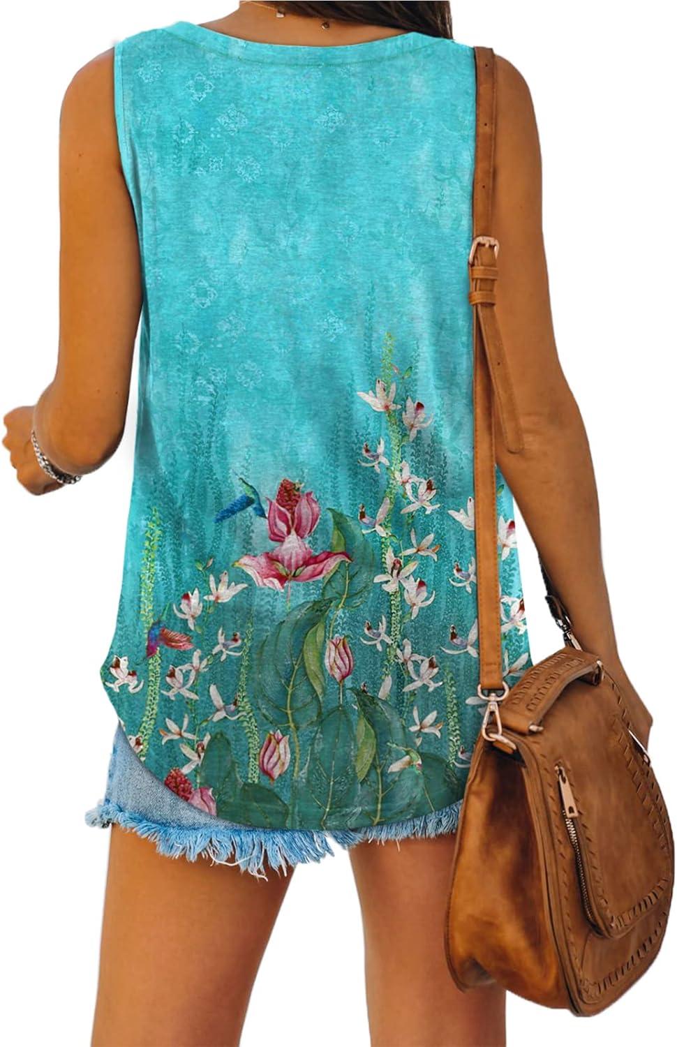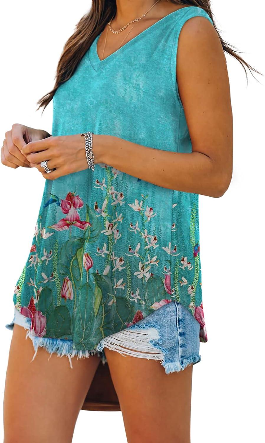 XIEERDUO Womens Tank Tops V Neck Basic Solid Color Casual Flowy Summer Sleeveless(01-blue Floral)