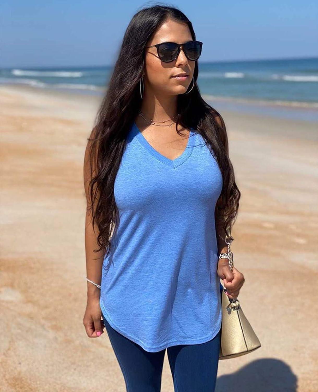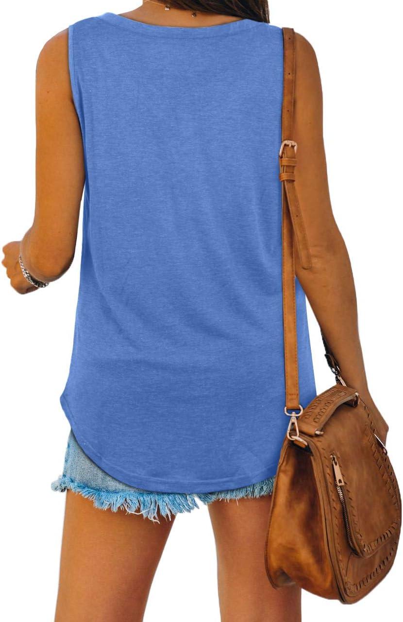 XIEERDUO Womens Tank Tops V Neck Basic Solid Color Casual Flowy Summer Sleeveless(01-blue)